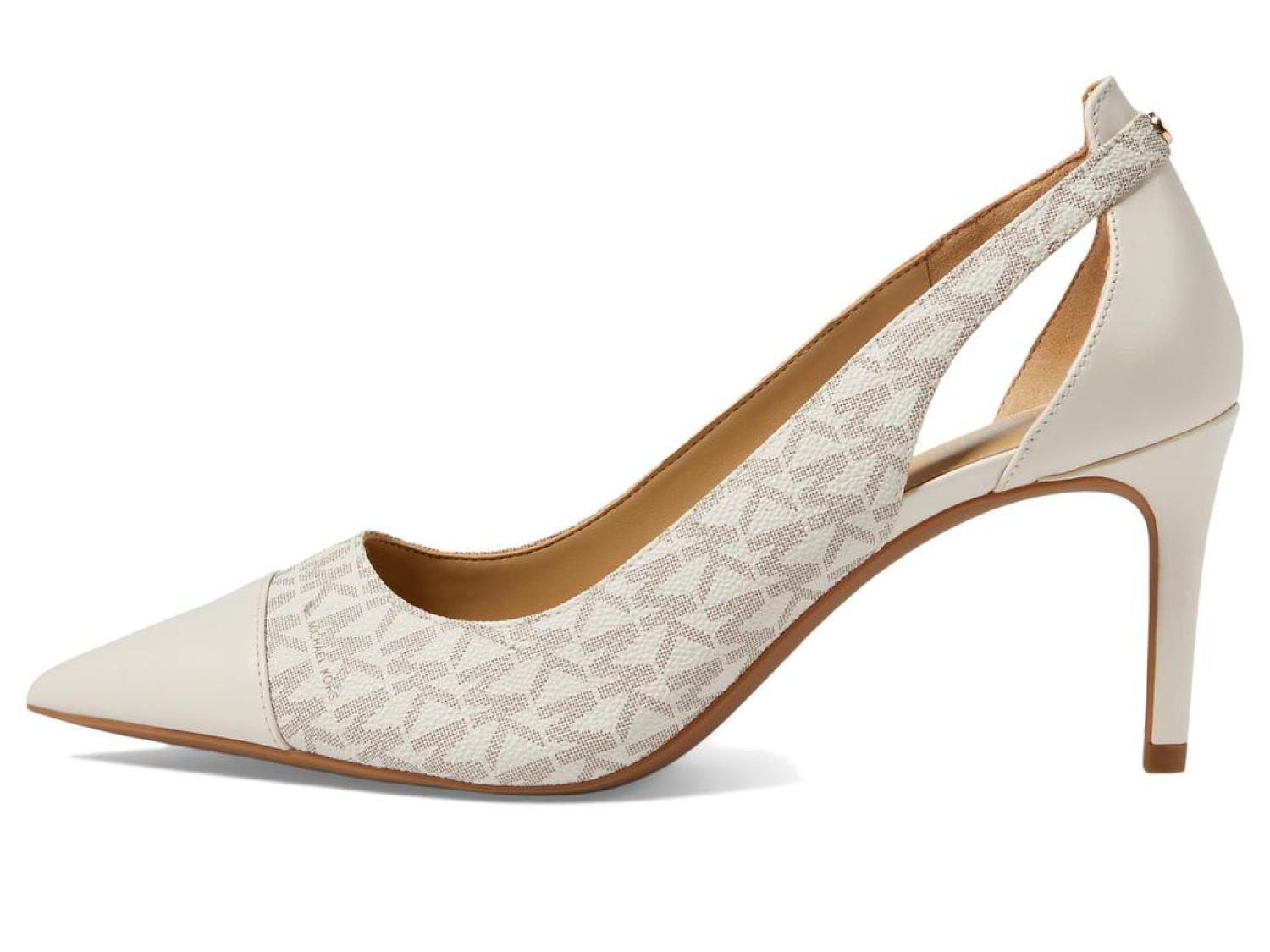 Walk the red carpet in utmost sophistication wearing the MICHAEL Michael Kors® Adeline Flex Pumps. Featuring stiletto heels, this slip-on footwear has leather and synthetic upper with signature logo embossed detail.