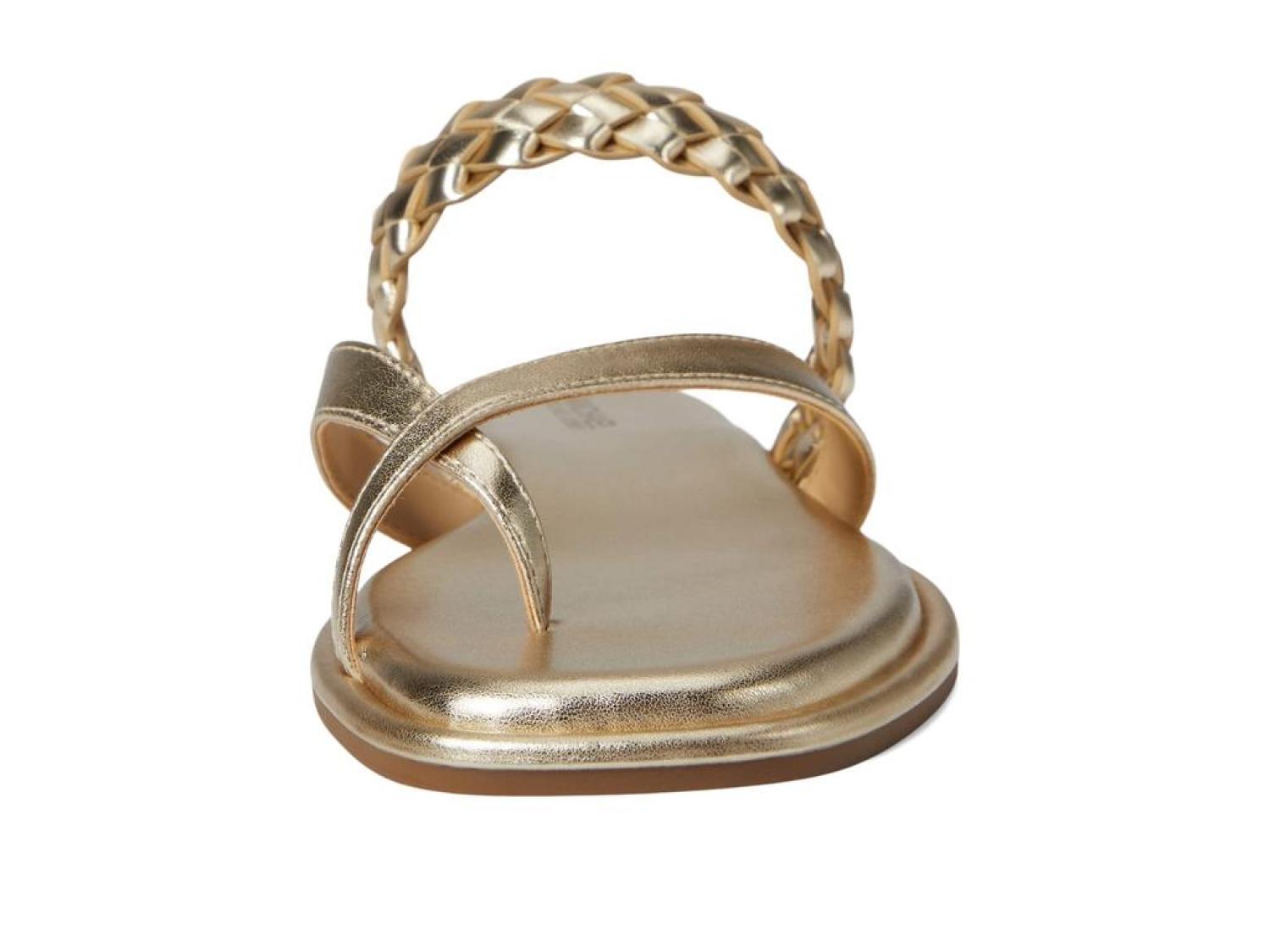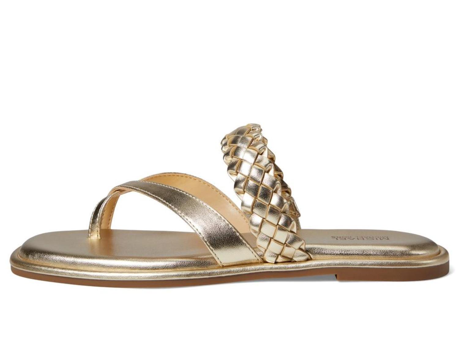Add a striking twist to your casual outings wearing the MICHAEL Michael Kors® Alba Thong Slide. Synthetic upper. Synthetic lining and insole. Braided strap on the instep. Slip-on closure. Open-toe silhouette. Synthetic outsole. Imported. Product measurements were taken using size 9, width M. Please note that measurements may vary by size. Weight of footwear is based on a single item, not a pair. Measurements: Weight: 8 oz-