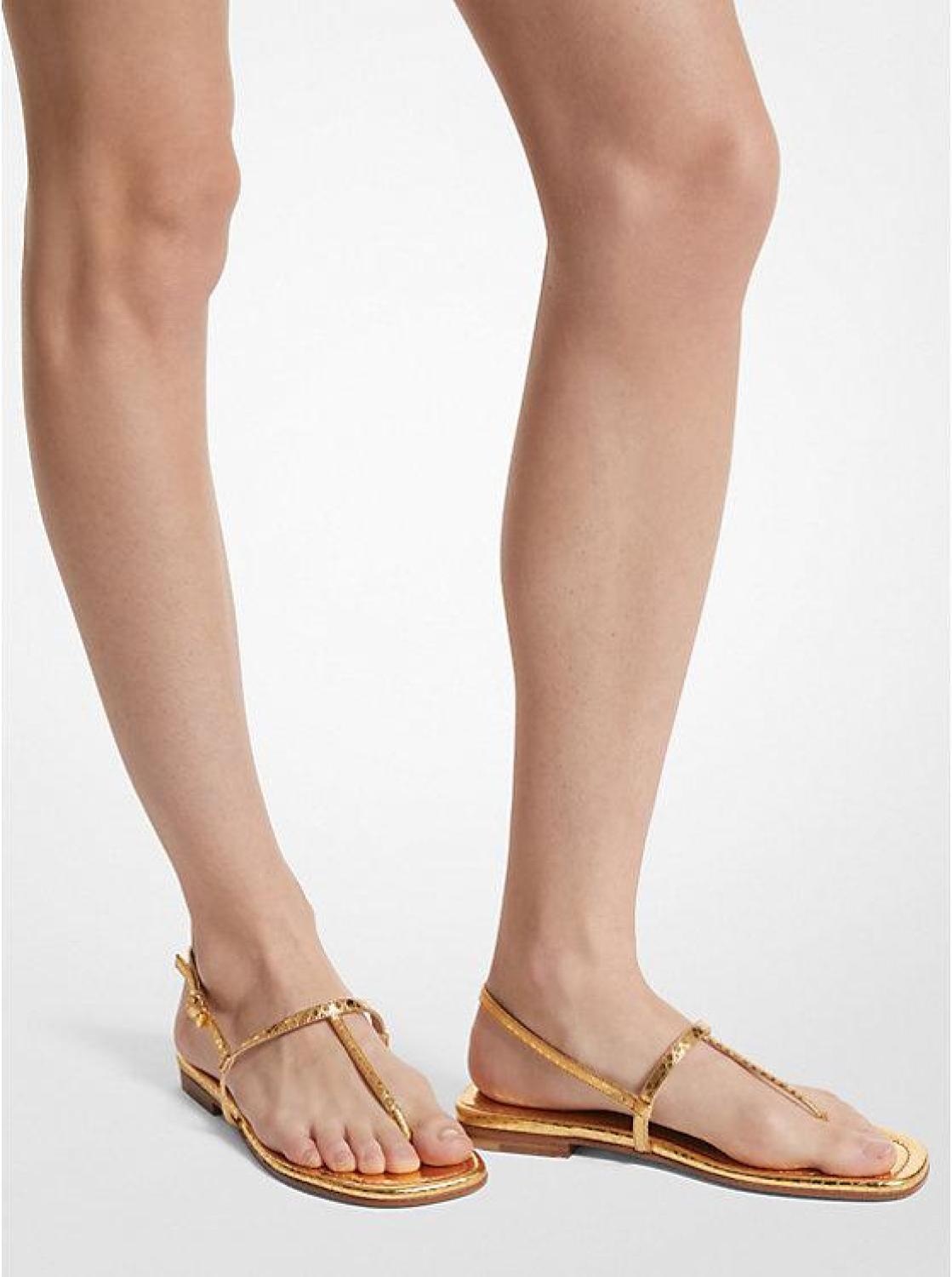 Sleek and effortless, our Ali sandals complement nearly every warm-weather look. Delicate python-embossed leather straps and a T-shaped silhouette flatter the foot, while a slim buckle fastening keeps them secure and understated. Wear them with everything from maxi dresses to mini shorts— you’ll love the versatile nature of this pair. Made in Italy. • Sandal • Metallic python embossed leather • 100% leather • Lining: 100% leather • Sole: rubber • Open toe • Buckle fastening • Made in Italy • Sandal • Metallic python embossed leather • 100% leather • Lining: 100% leather • Sole: rubber • Open toe • Buckle fastening • Made in Italy