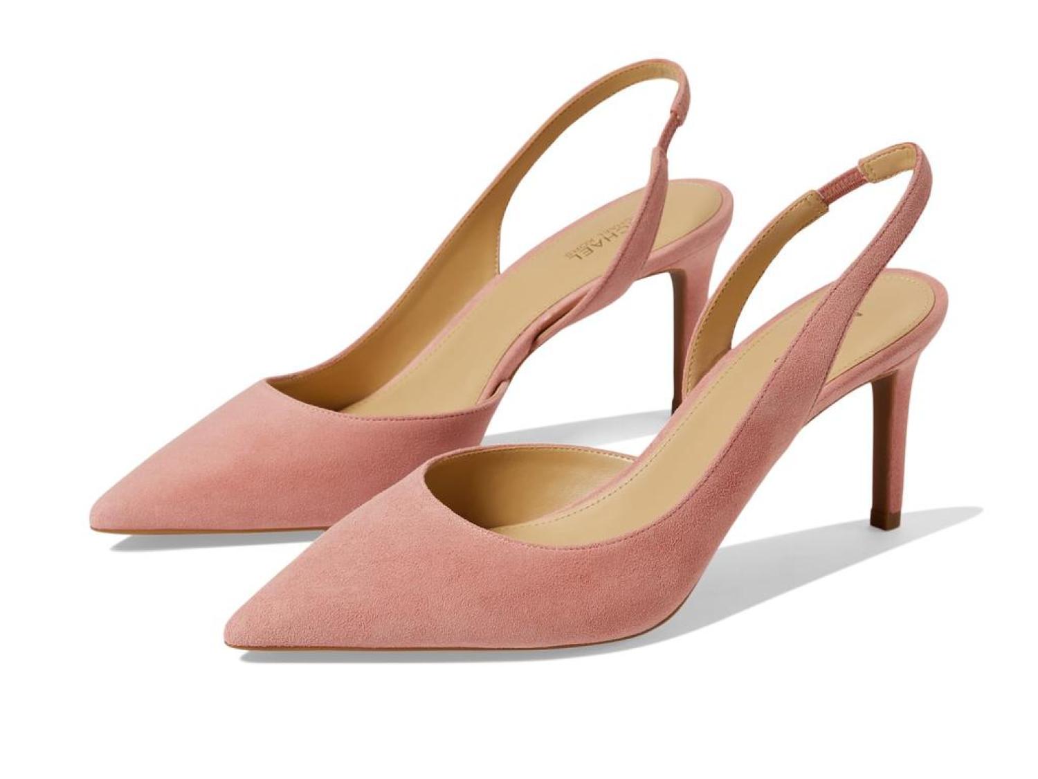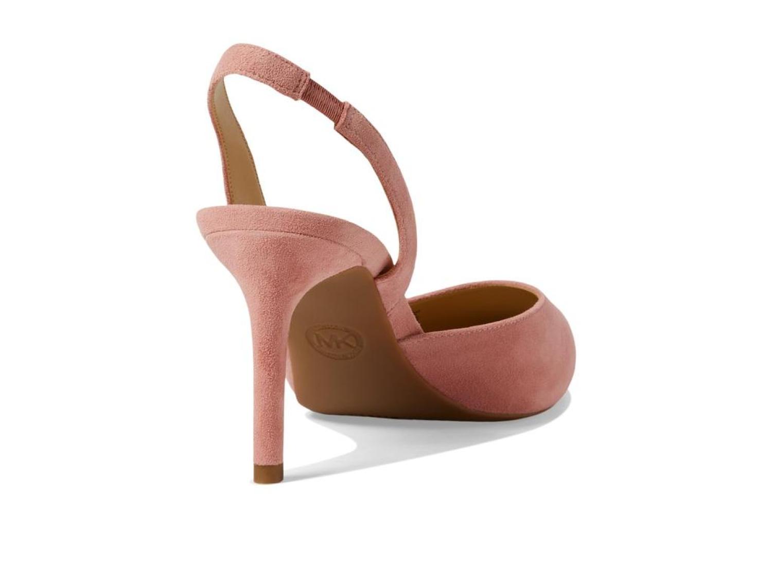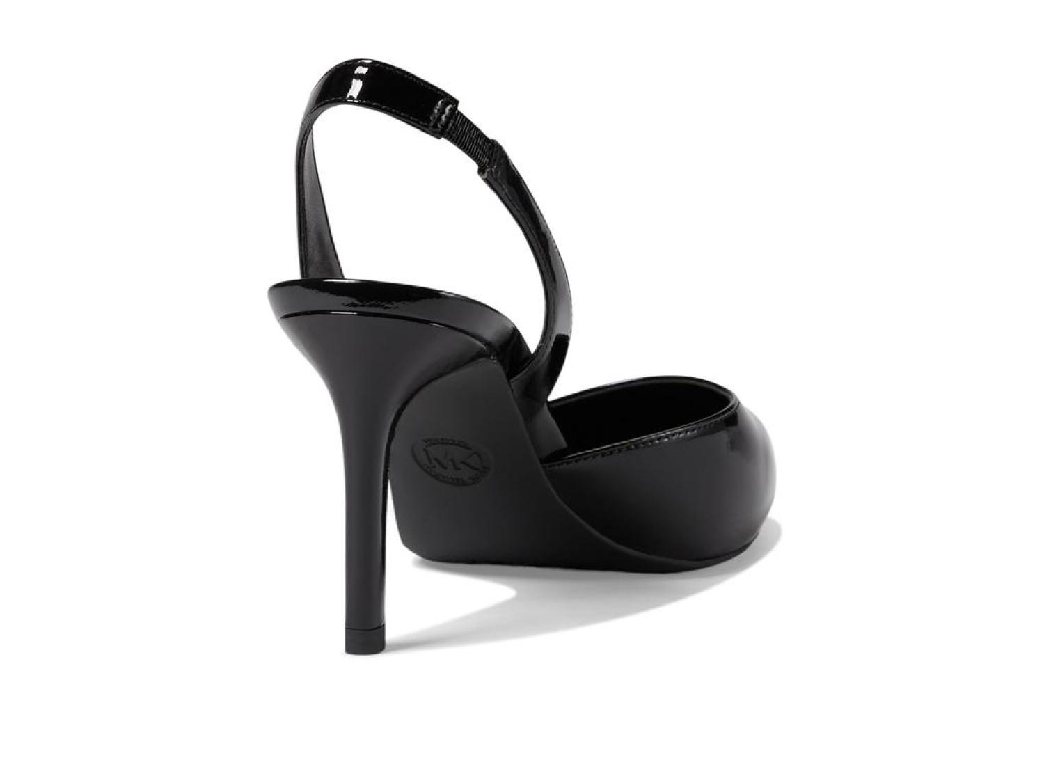 Sleek, sophisticated, and classy, the MICHAEL Michael Kors® Alina Flex Sling Pumps instantly take your evening look to new heights. Lifted by a slender stiletto heel and finished with a timeless pointy toe, the shoes have a leather upper, a synthetic lining, and a lightly padded insole. Slip-on style with a stretch slingback strap. Synthetic outsole. Imported. Product measurements were taken using size 8.5, width M. Please note that measurements may vary by size. Measurements: Heel Height: 3 1/4 in Weight: 7 oz-