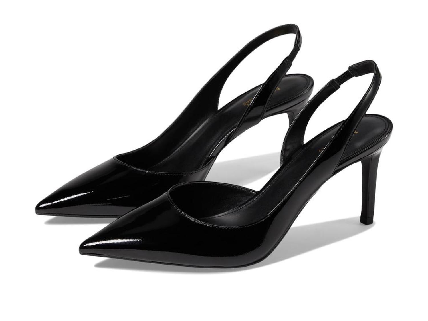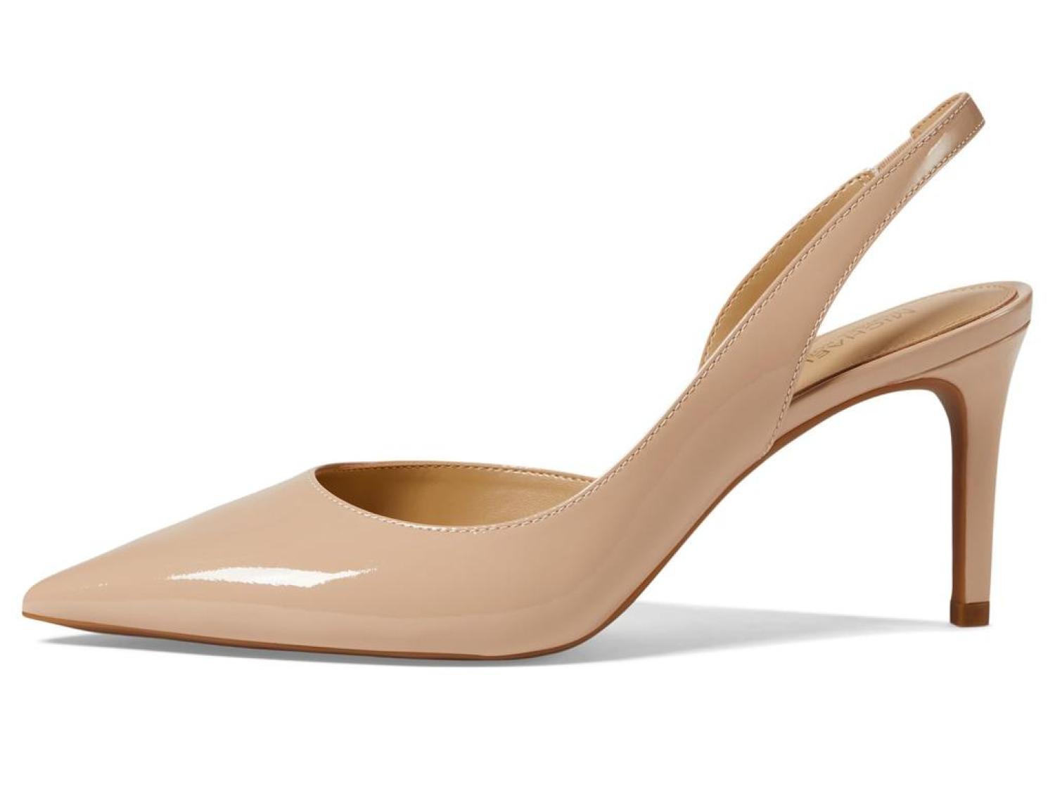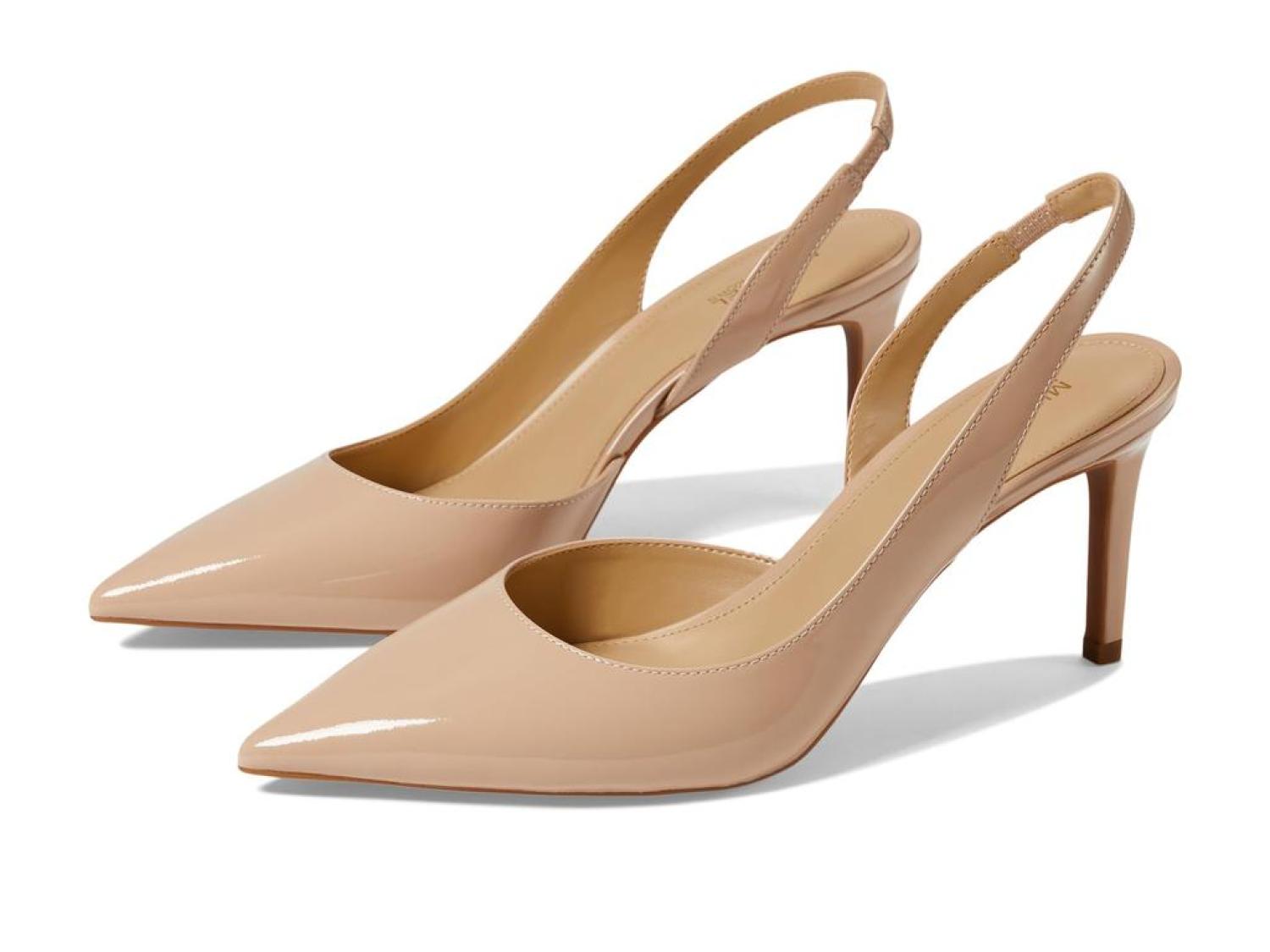 Sleek, sophisticated, and classy, the MICHAEL Michael Kors® Alina Flex Sling Pumps instantly take your evening look to new heights. Lifted by a slender stiletto heel and finished with a timeless pointy toe, the shoes have a leather upper, a synthetic lining, and a lightly padded insole.