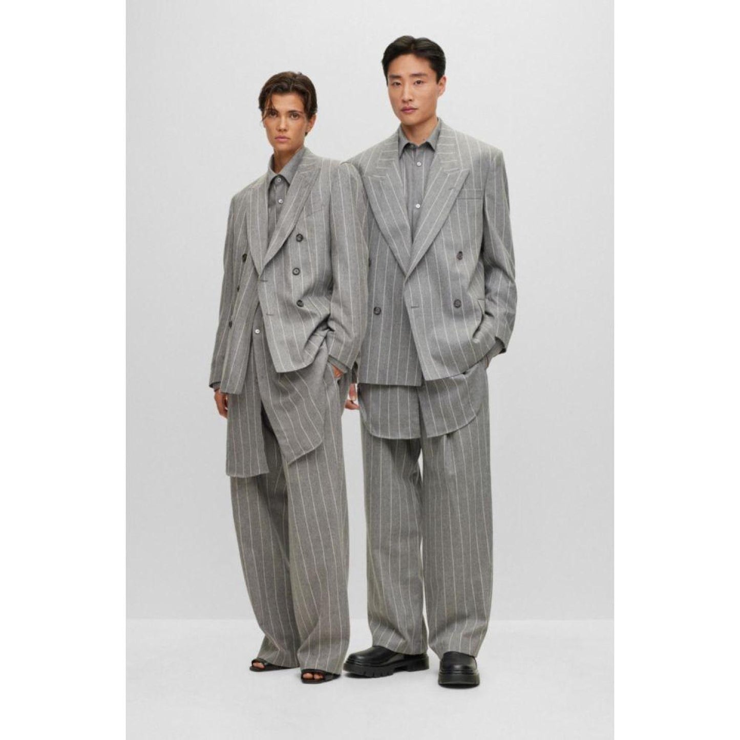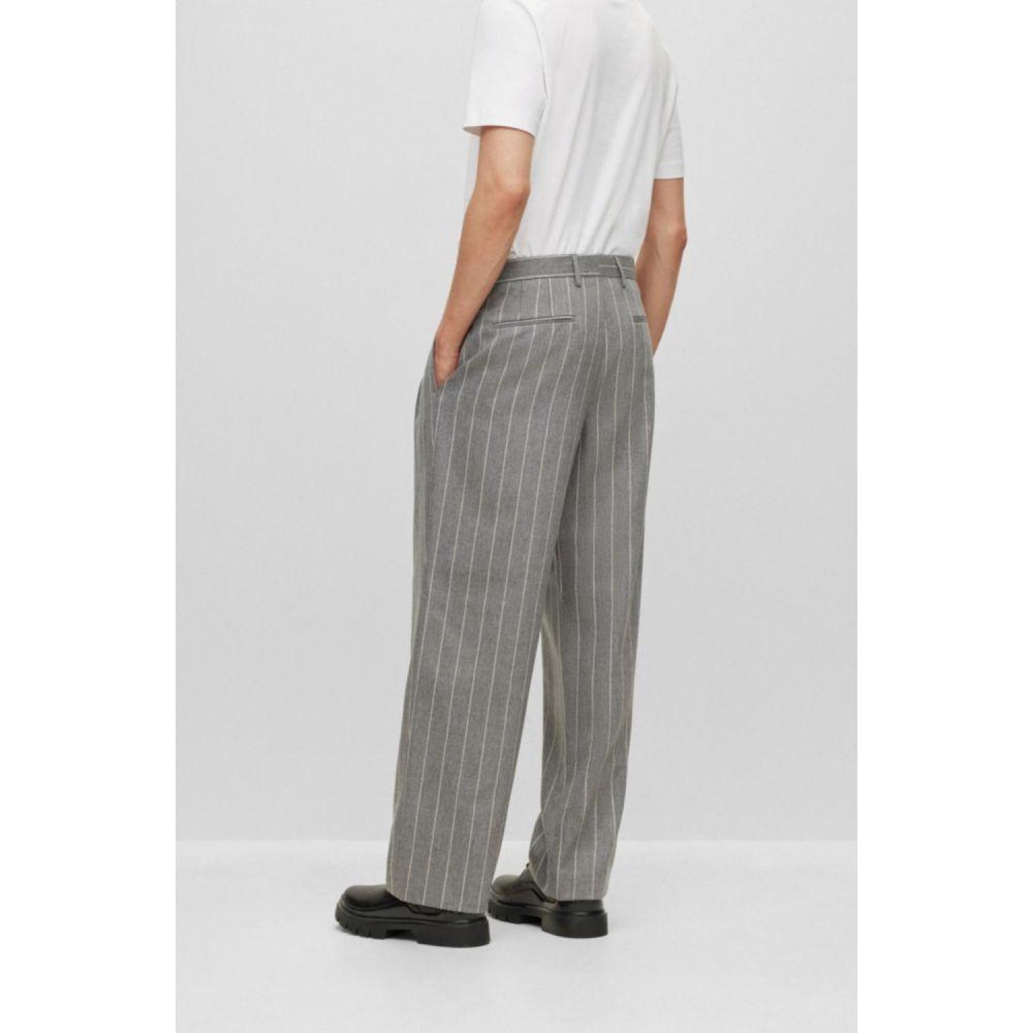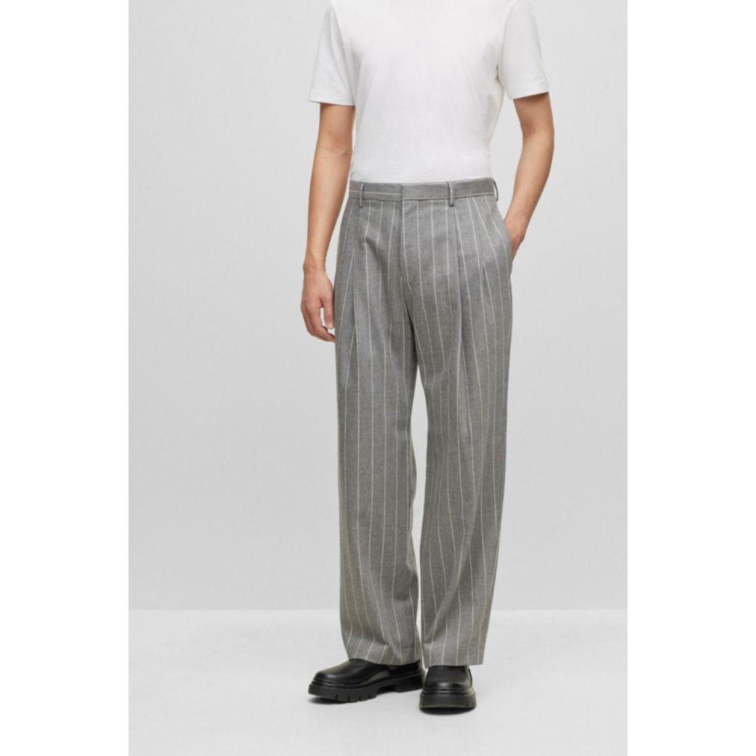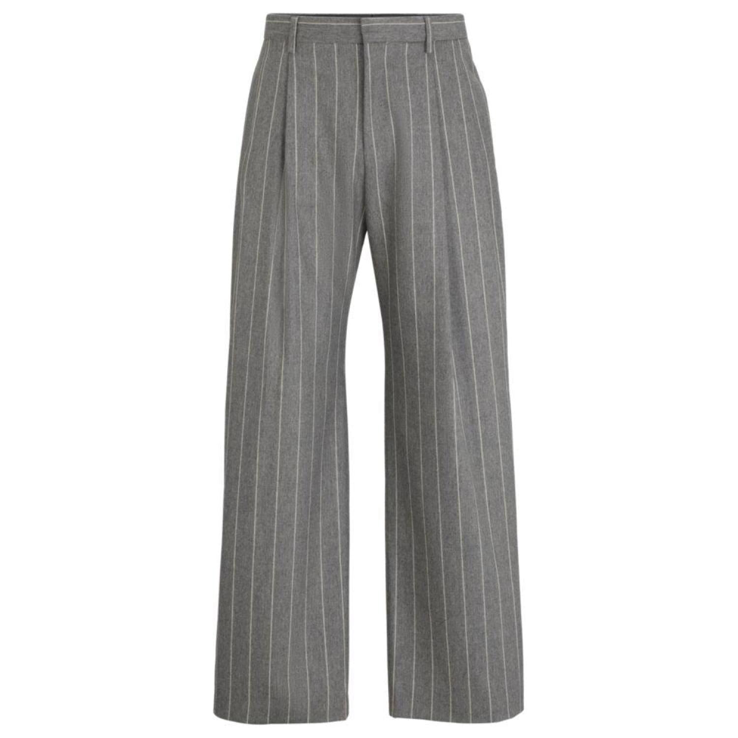 • Relaxed-fit, all-gender pants by BOSS, crafted in virgin wool and cashmere patterned with vertical stripes.