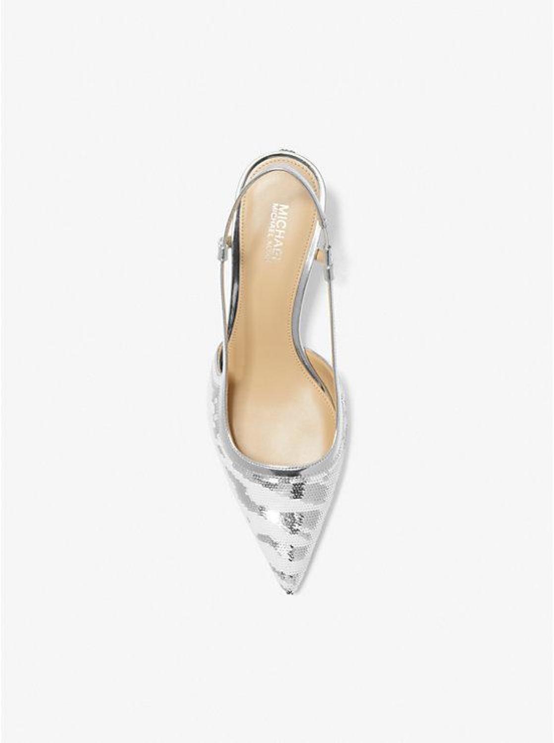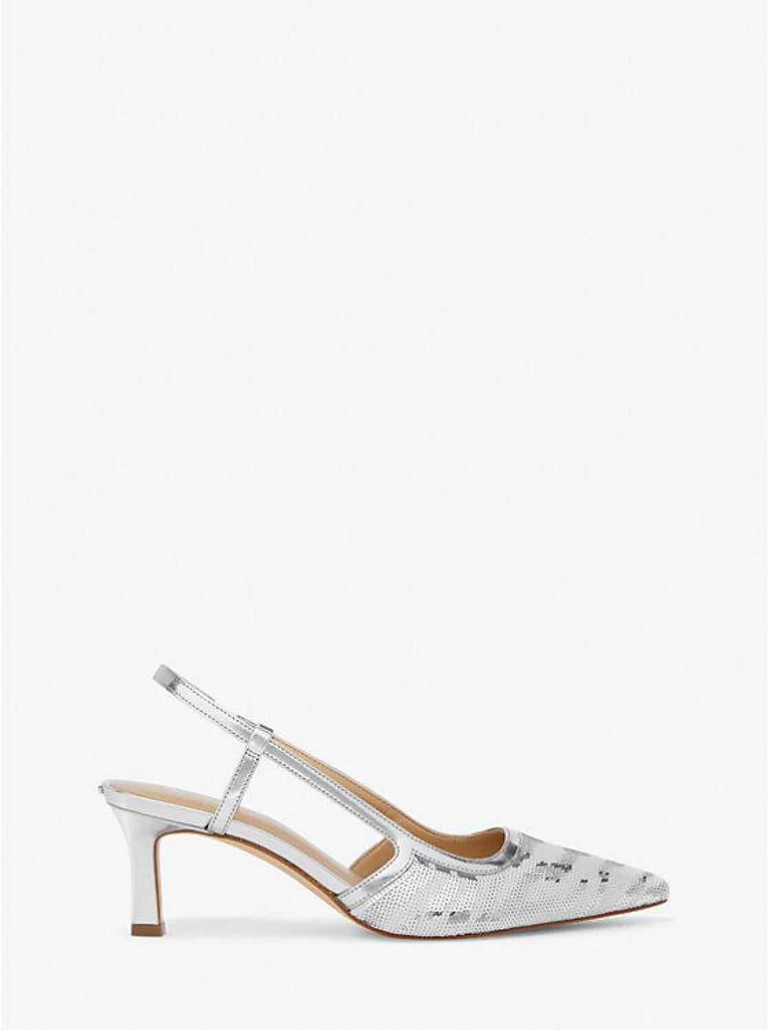 • Cultivate a luxe vibe in the Alora slingback. Zebra-patterned sequins bring a bolt of style to wedding season, summer formals and more. This mid-heel silhouette features a pointed toe and a thin, silver-toned strap for added support. Pair it with silver accessories to complete the look.