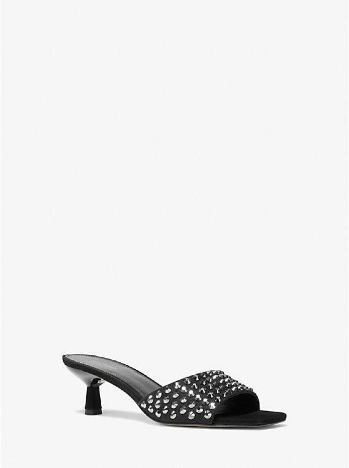 Amal Embellished Faux Suede Kitten Sandal