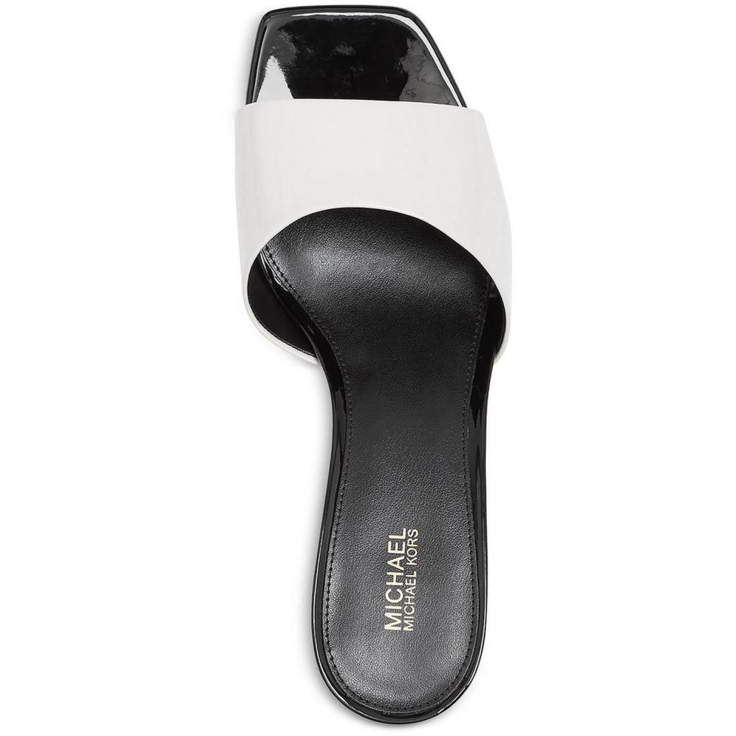 Manufacturer - MICHAEL Michael Kors Size Origin - US Retail - $100.00 Style Type - Slide Sandals Collection - MICHAEL Michael Kors Closure - Material - Manmade Fabric Type - Patent Leather P2802723The item for sale is pictured above and described on this page. The photo may include additional clothing or props that are for display purpose only and will not be included. Please be sure to read the description carefully.