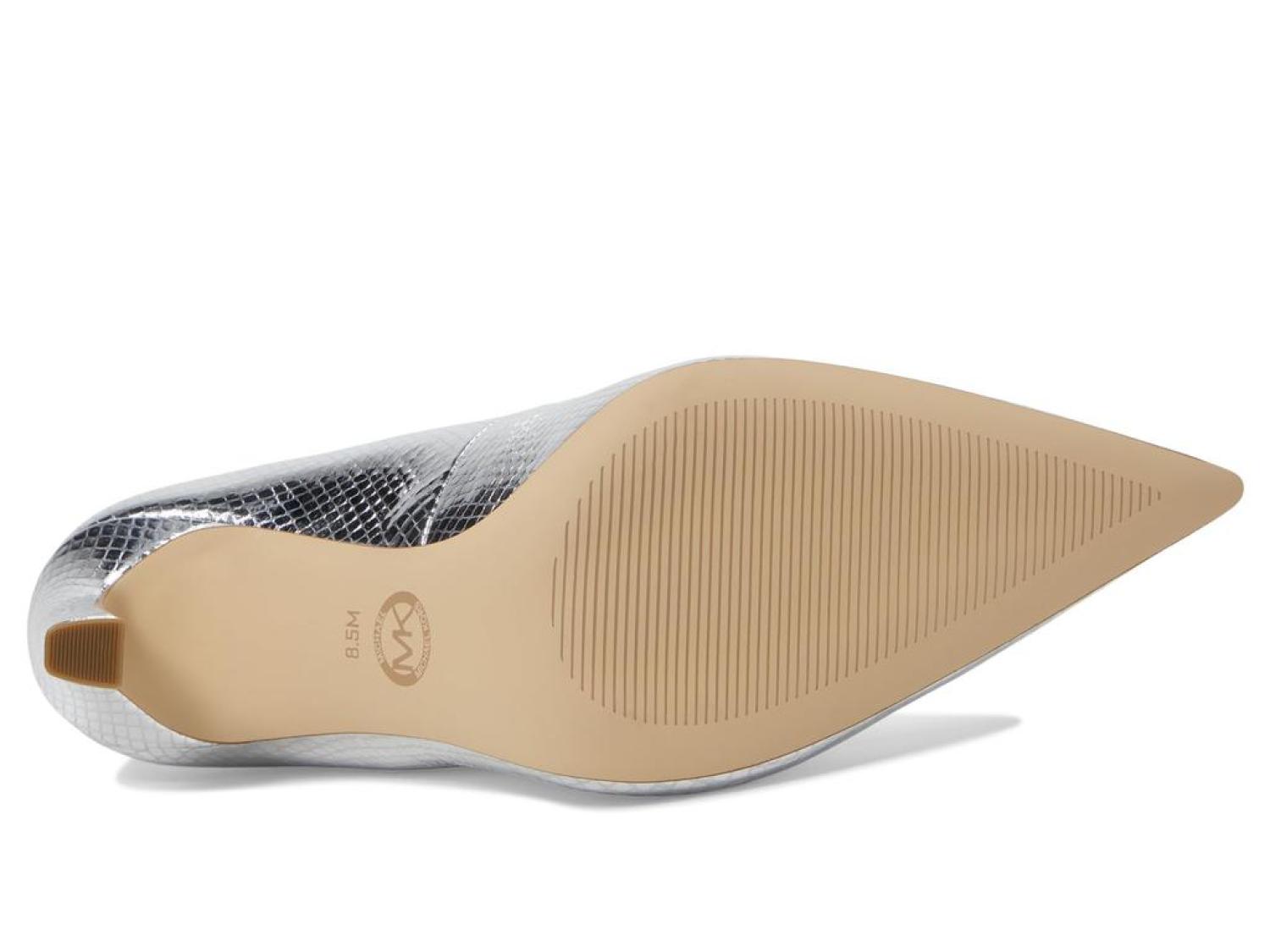 • Ignite your inner boss wearing the classic MICHAEL Michael Kors® Amara Pump. Crafted from leather upper, faux leather lining and synthetic insole, this pair of pumps features pointed toe, stiletto heel, cushioned footbed and brand detailing on the footbed.