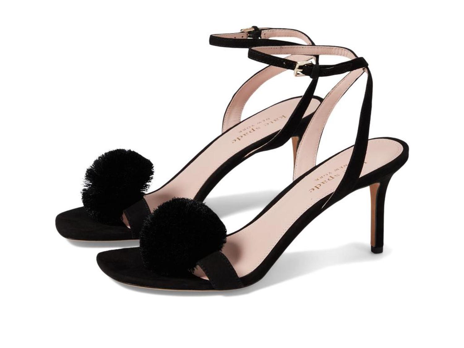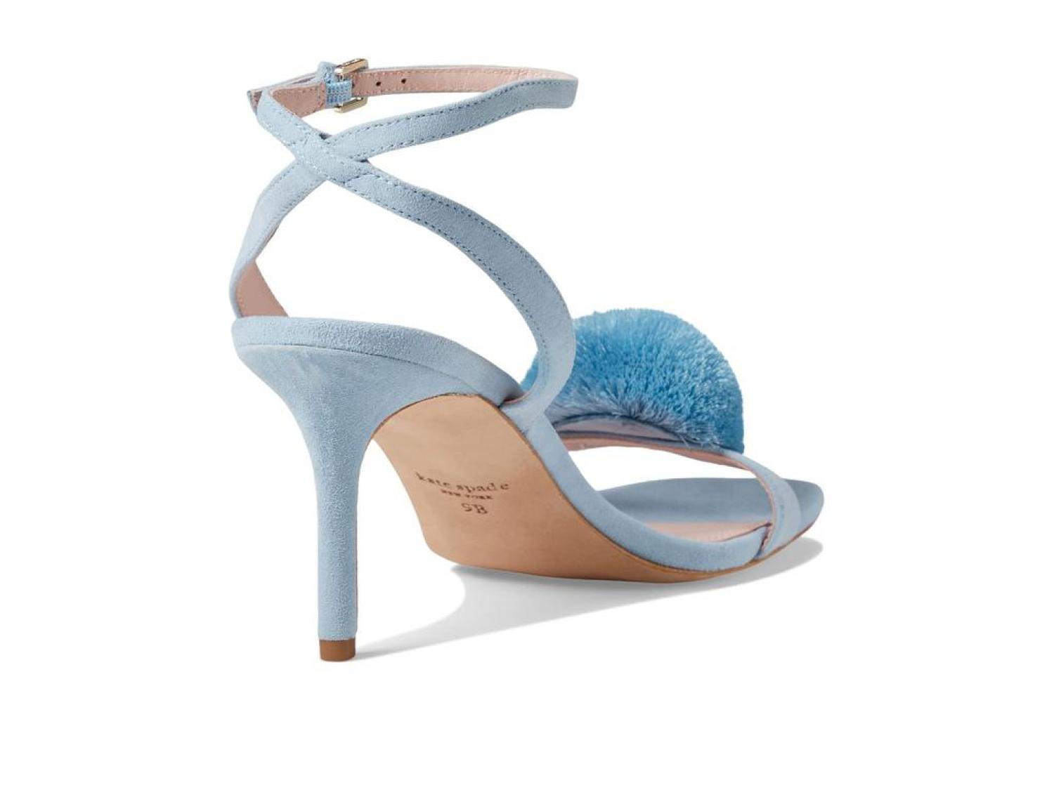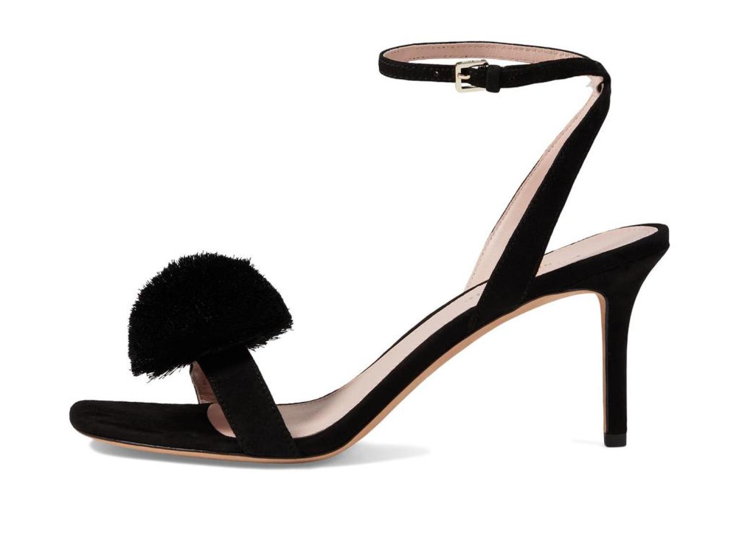 Add a striking appeal to your ensemble by wearing the Kate Spade New York® Amour Pom Sandals which are decorated with a tonal pom-pom on the vamp strap and lifted by a slender stiletto heel.