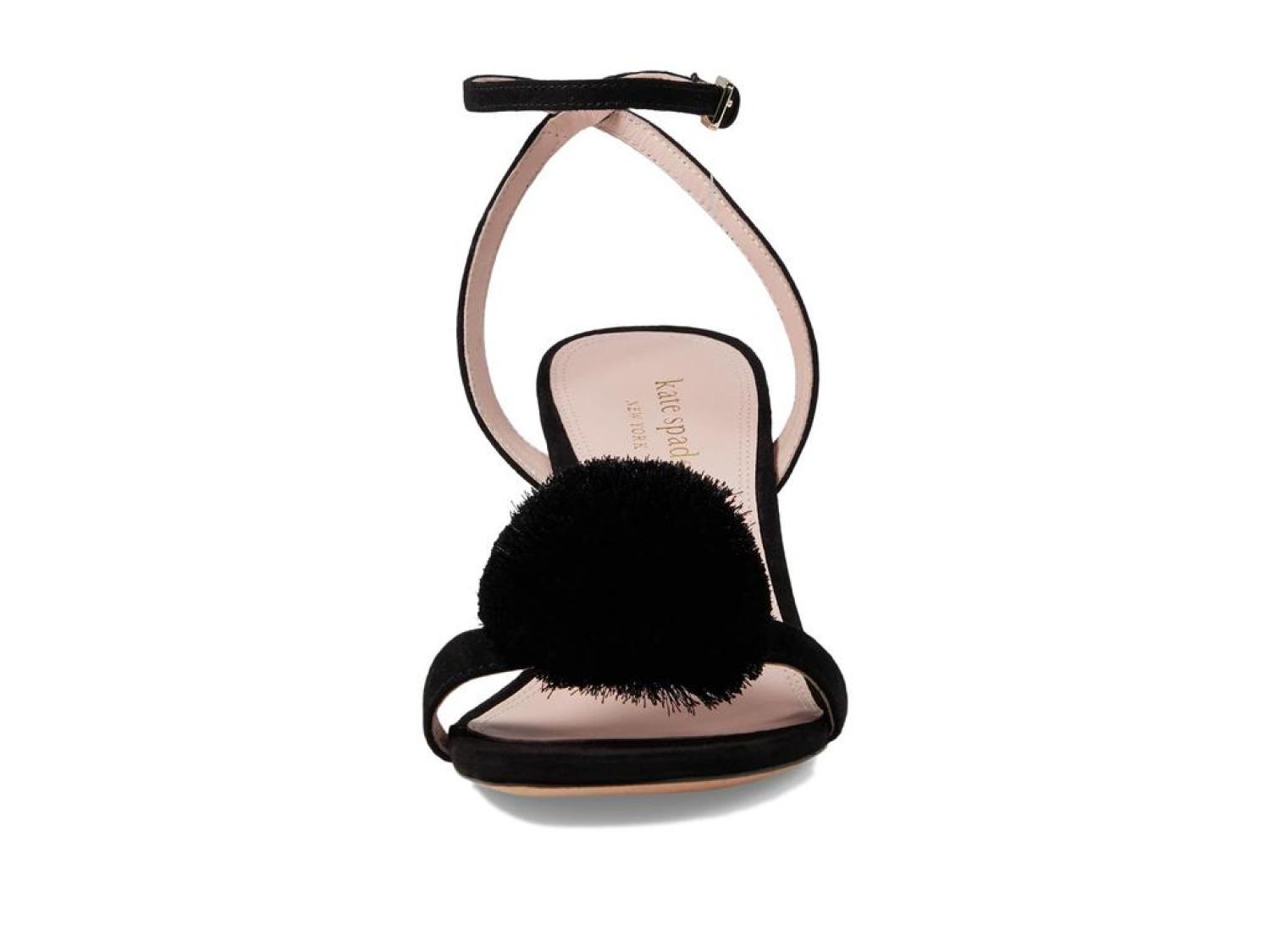 Add a striking appeal to your ensemble by wearing the Kate Spade New York® Amour Pom Sandals which are decorated with a tonal pom-pom on the vamp strap and lifted by a slender stiletto heel. Leather upper, lining, and insole. Adjustable buckle closure on the ankle strap. Open square toe. Leather outsole. Imported. Product measurements were taken using size 9, width B - Medium. Please note that measurements may vary by size. Measurements: Heel Height: 3 1/4 in Weight: 8 oz-