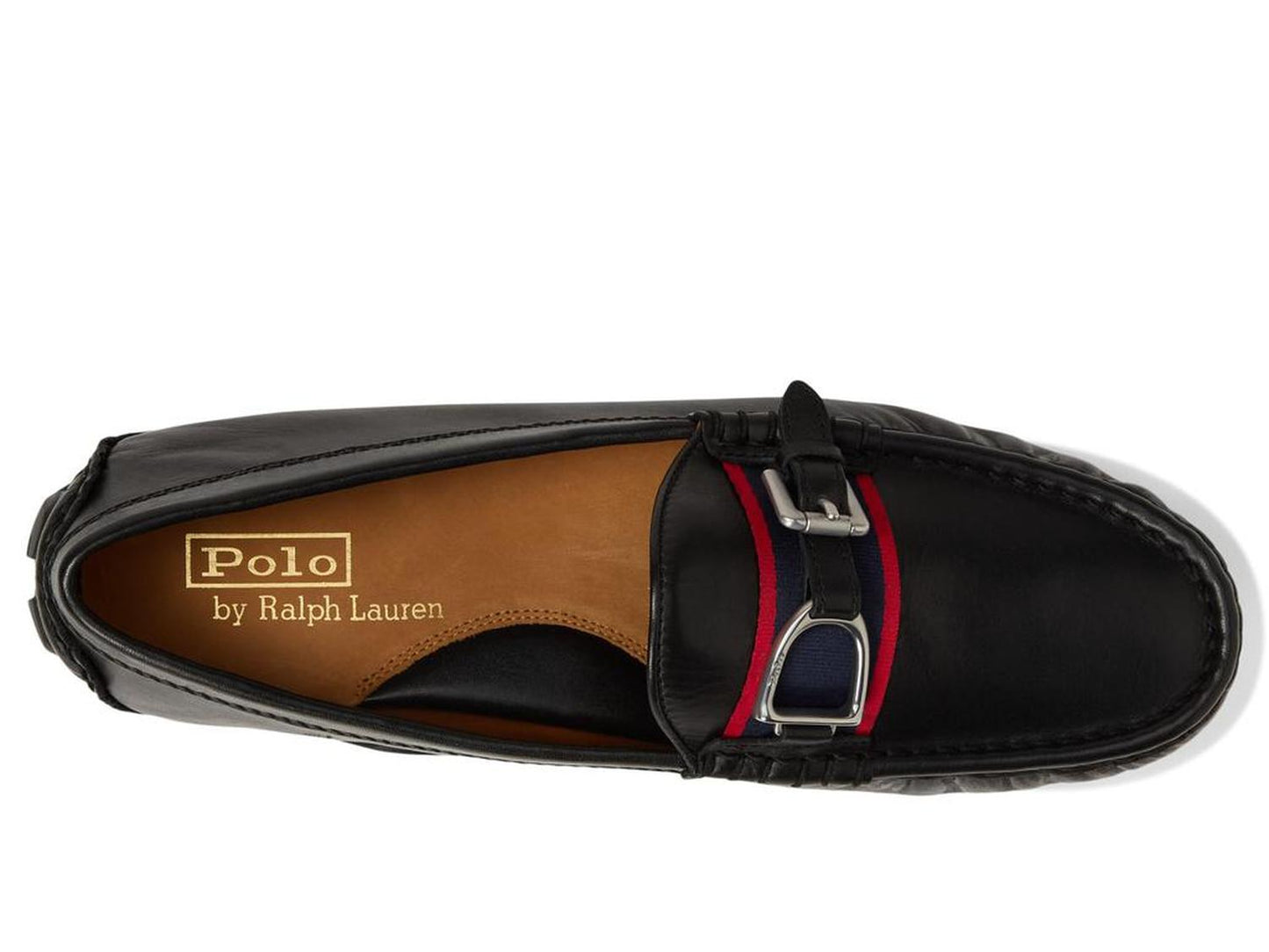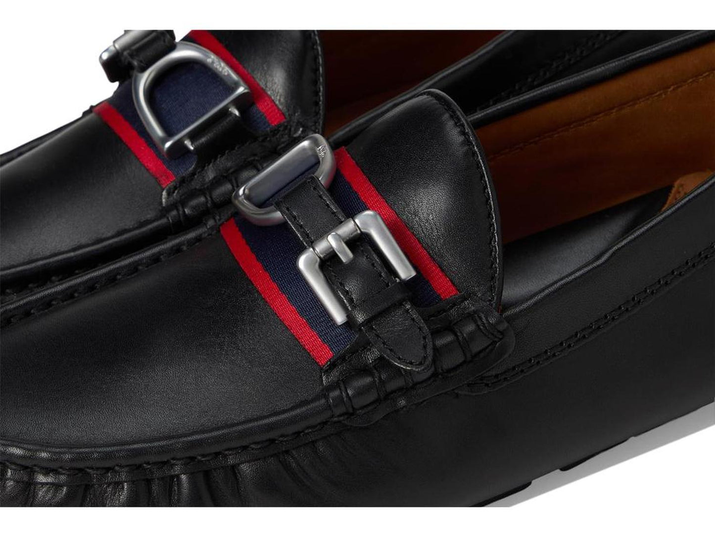 • The Polo Ralph Lauren® Anders Leather Driver is crafted with full-grain leather and detailed with a stirrup-accented buckled strap at the vamp that fastens over striped grosgrain trim. It's finished with a rubber nub sole for superior traction and hand-stitching at the toe.