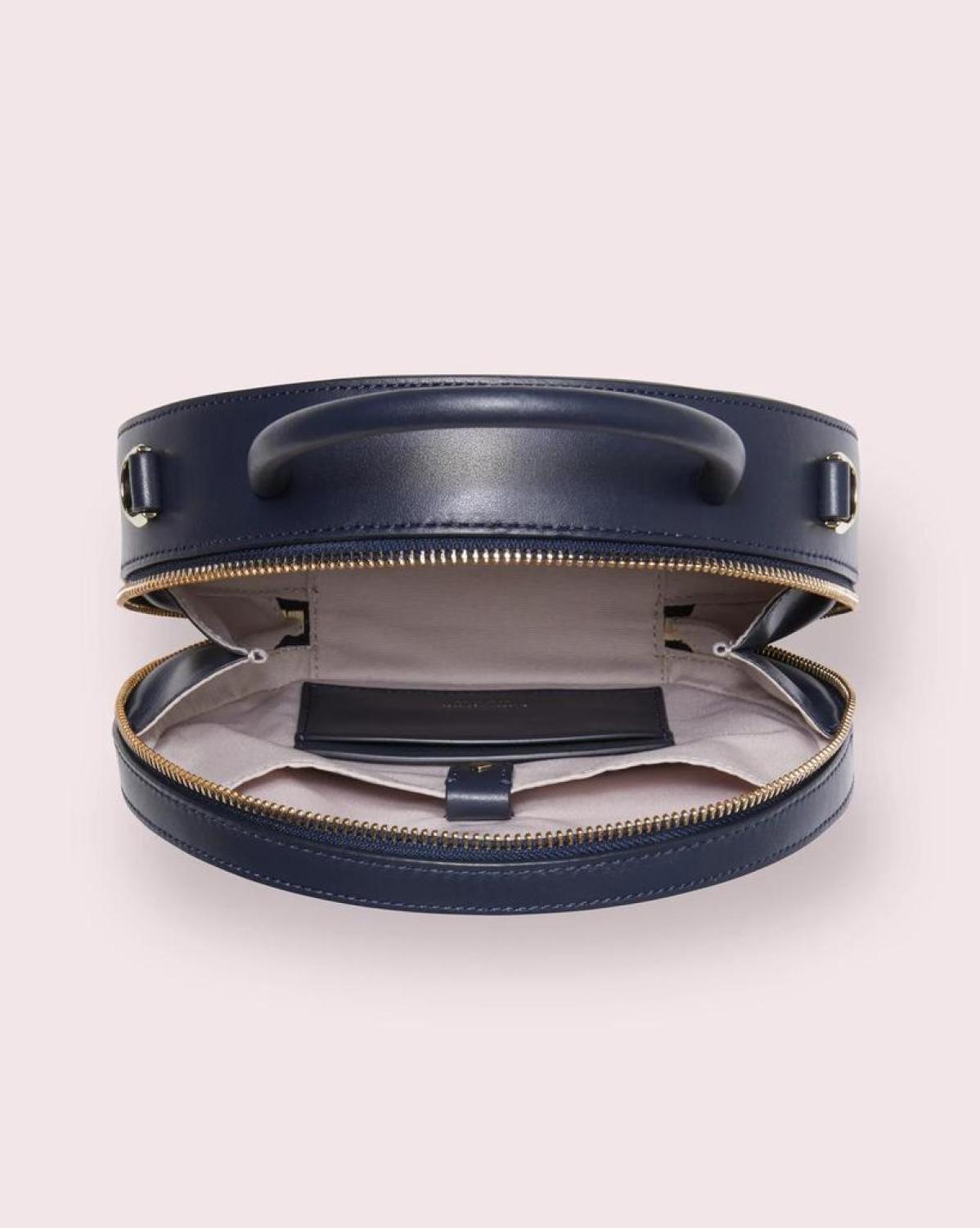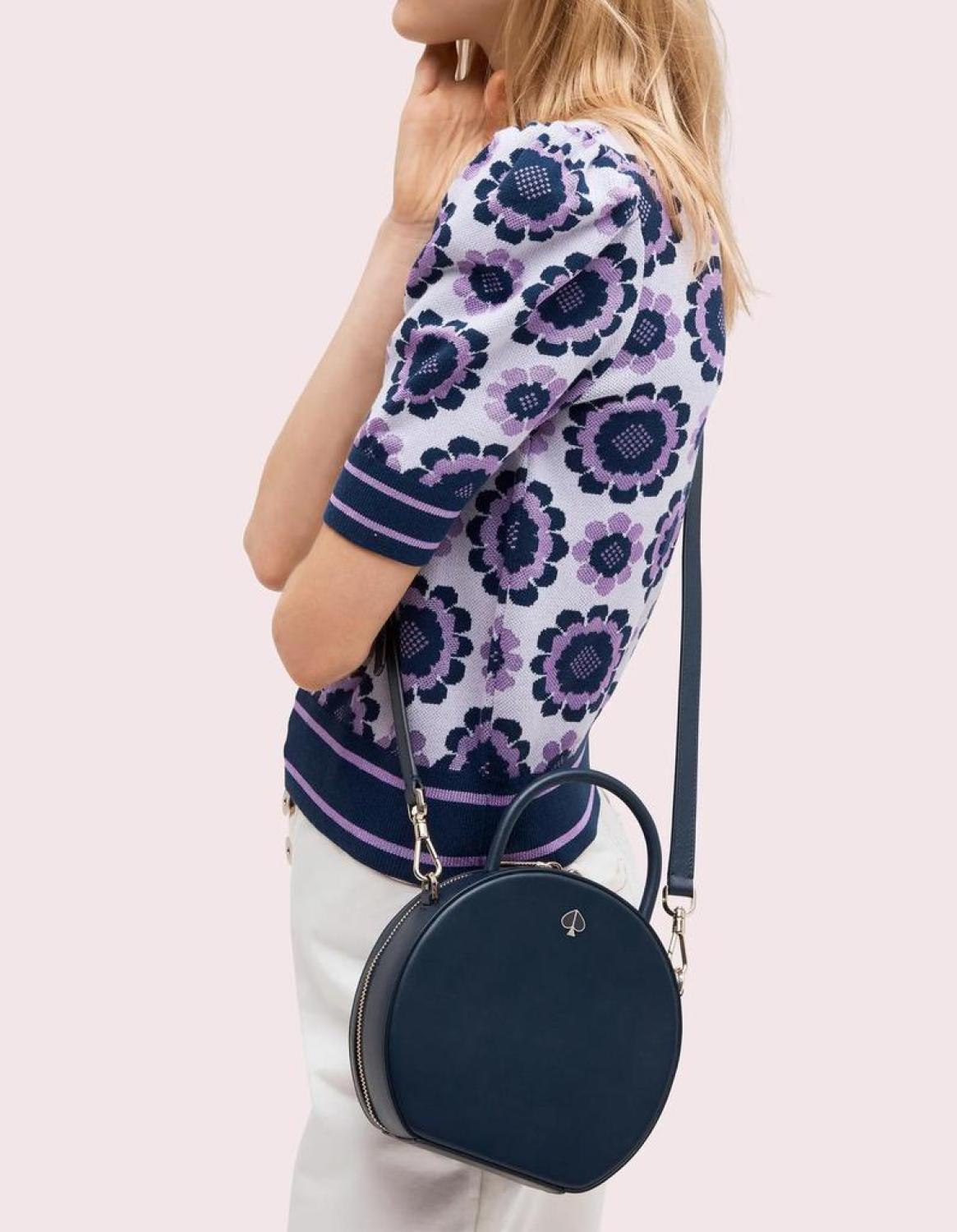 The crossbody bag is a trend that is here to stay and we especially love this style.Crossbody bag with zip-around closure. Interior snap-tab slide pocket. Dual interior card slots. Optional (and adjustable) shoulder strap. Italian smooth leather. Solid faille lining. Enamel spade. Size - 7"h x 7.7"w x 2.5"d