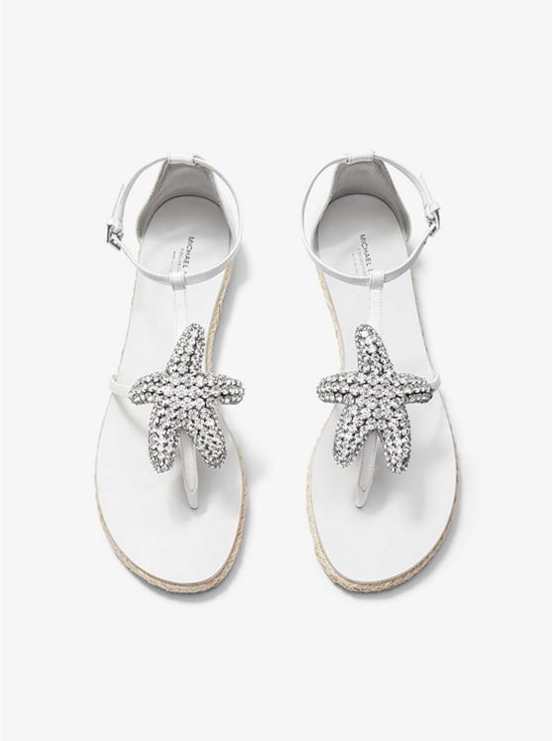 • “This season, I’m all about the shoes that make you smile,” says Michael. Introducing the Annabeth sandals, featuring playful jeweled starfish and braided jute trim. These will dress up your off-duty looks and lend nonchalant charm to eveningwear—just call them the ultimate day-to-dark pair.