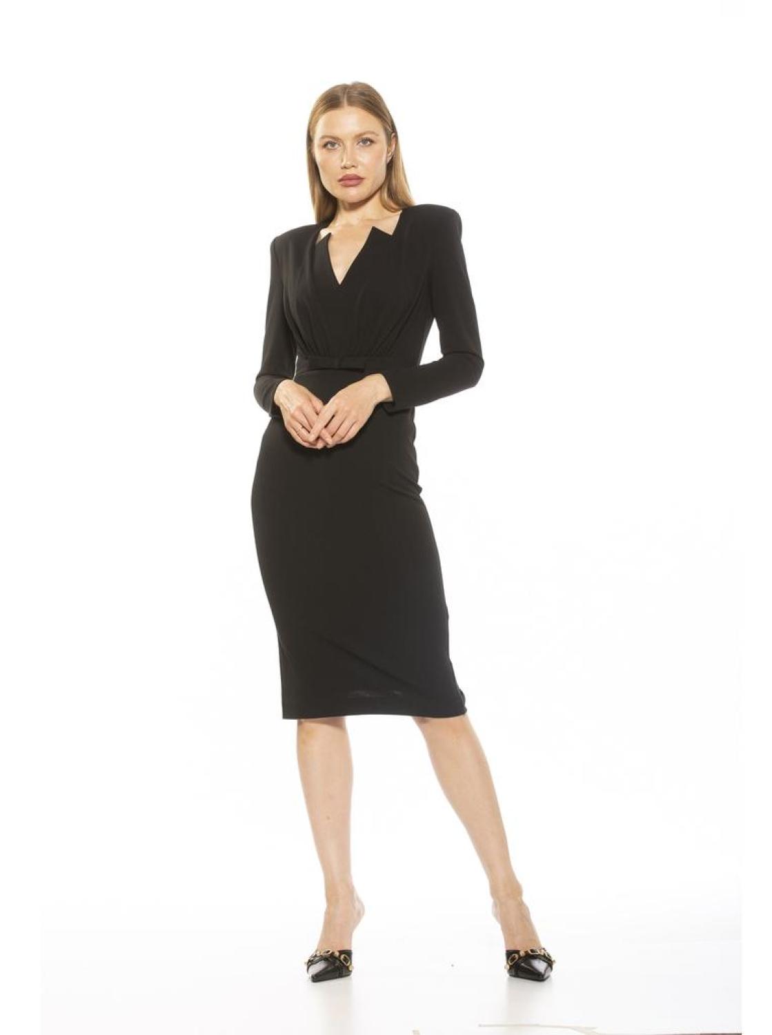 The Arleth Dress is crafted with sophistication and grace. Boasting shoulder pads, a flattering V-Neck, and a bow detail, this sheath dress makes a timelessly chic impression. PRODUCT FEATURES Shoulder Pads V-Neck Bow detail Long Sleeve Cocktail Length Sheath Dress 95% Polyester, 5% Spandex Lining - 100% Polyester Machine Wash Imported Style D5022