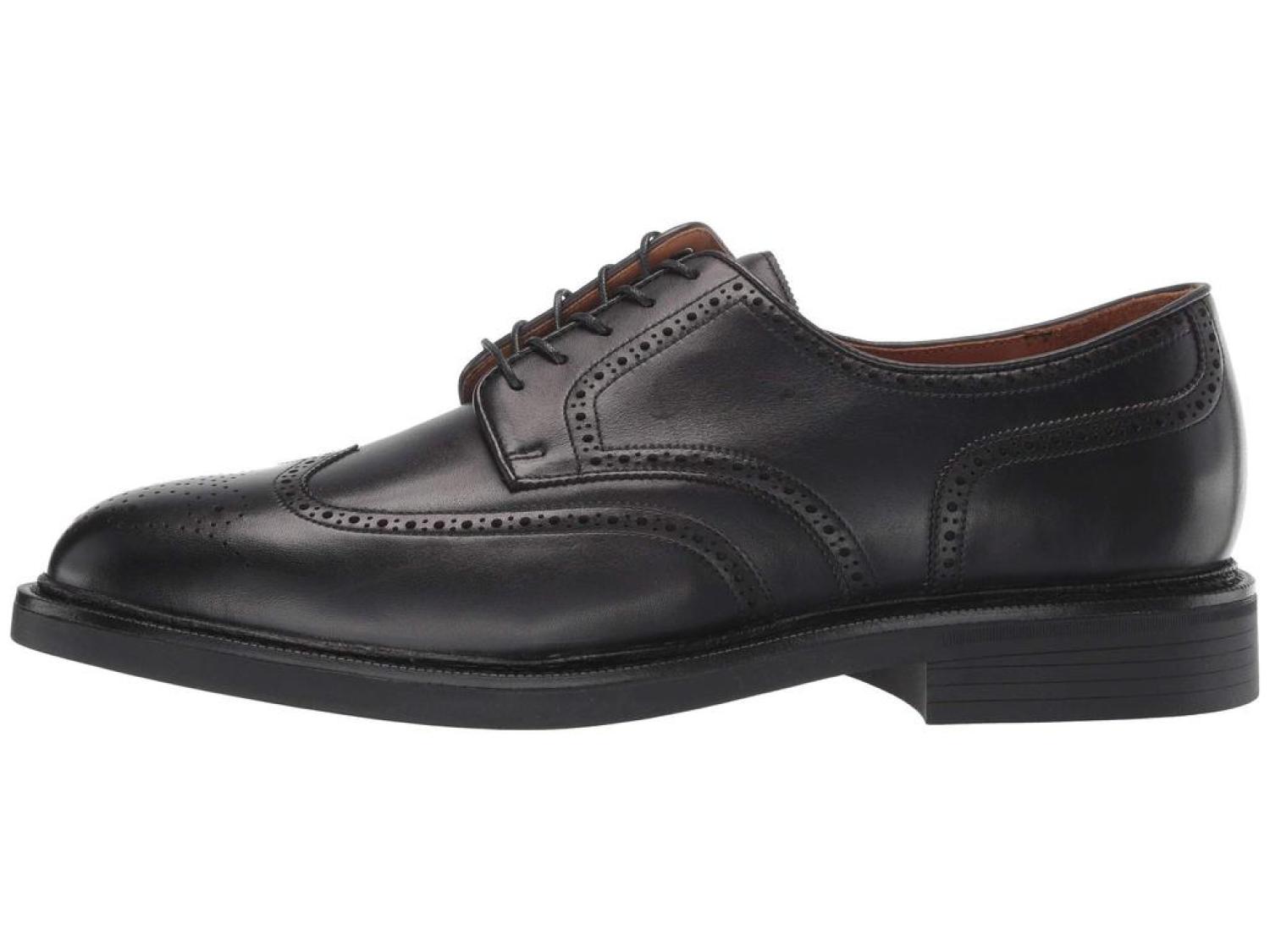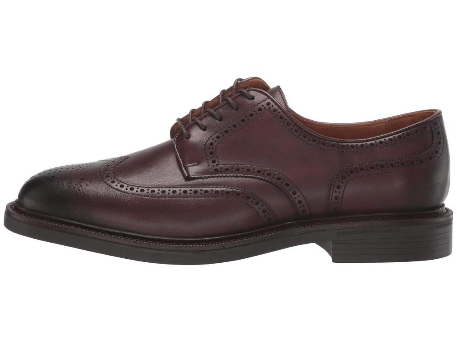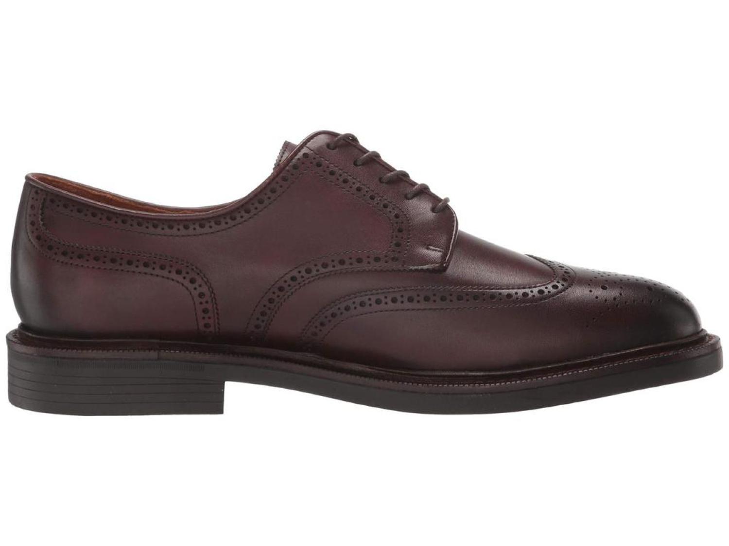 Smooth genuine leather upper with wing tip toe and brogue design for added style.