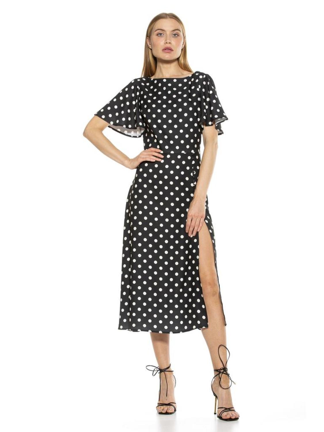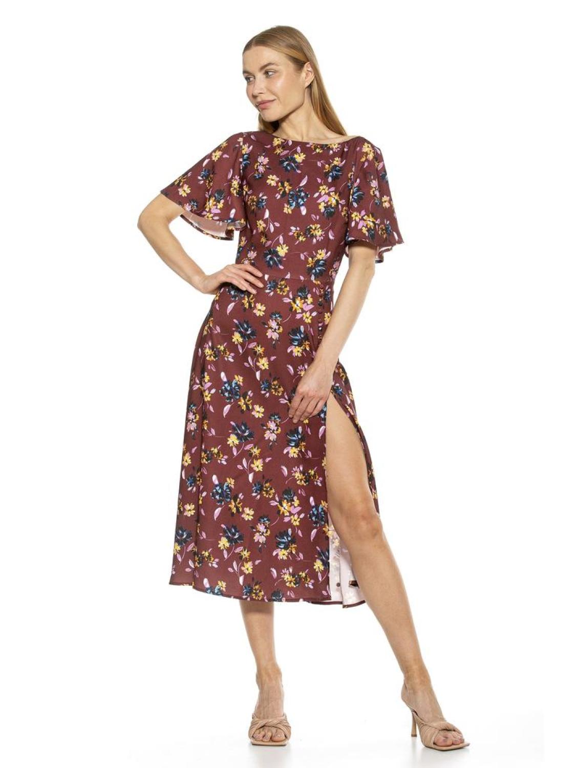 • PRODUCT FEATURES Boatneck Flutter sleeves Back concealed zip closure V-back Side slit 100% Polyester Lined - 97% Polyester, 3% Spandex Machine wash Imported Style D3839