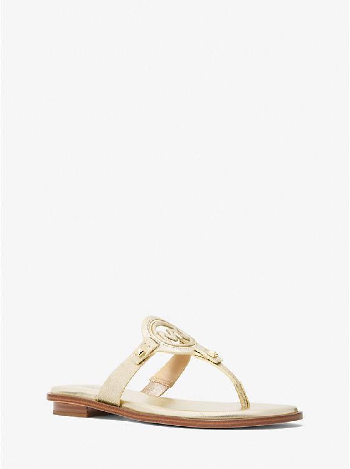Aubrey Cutout Metallic Leather T-Strap Sandal