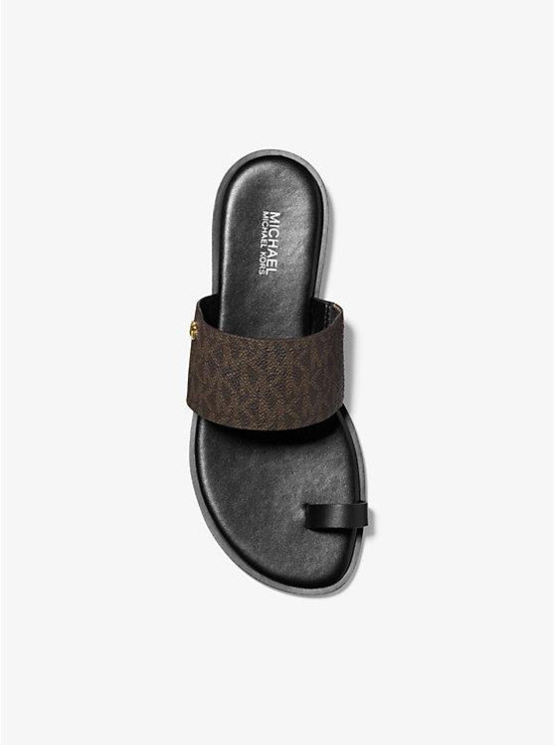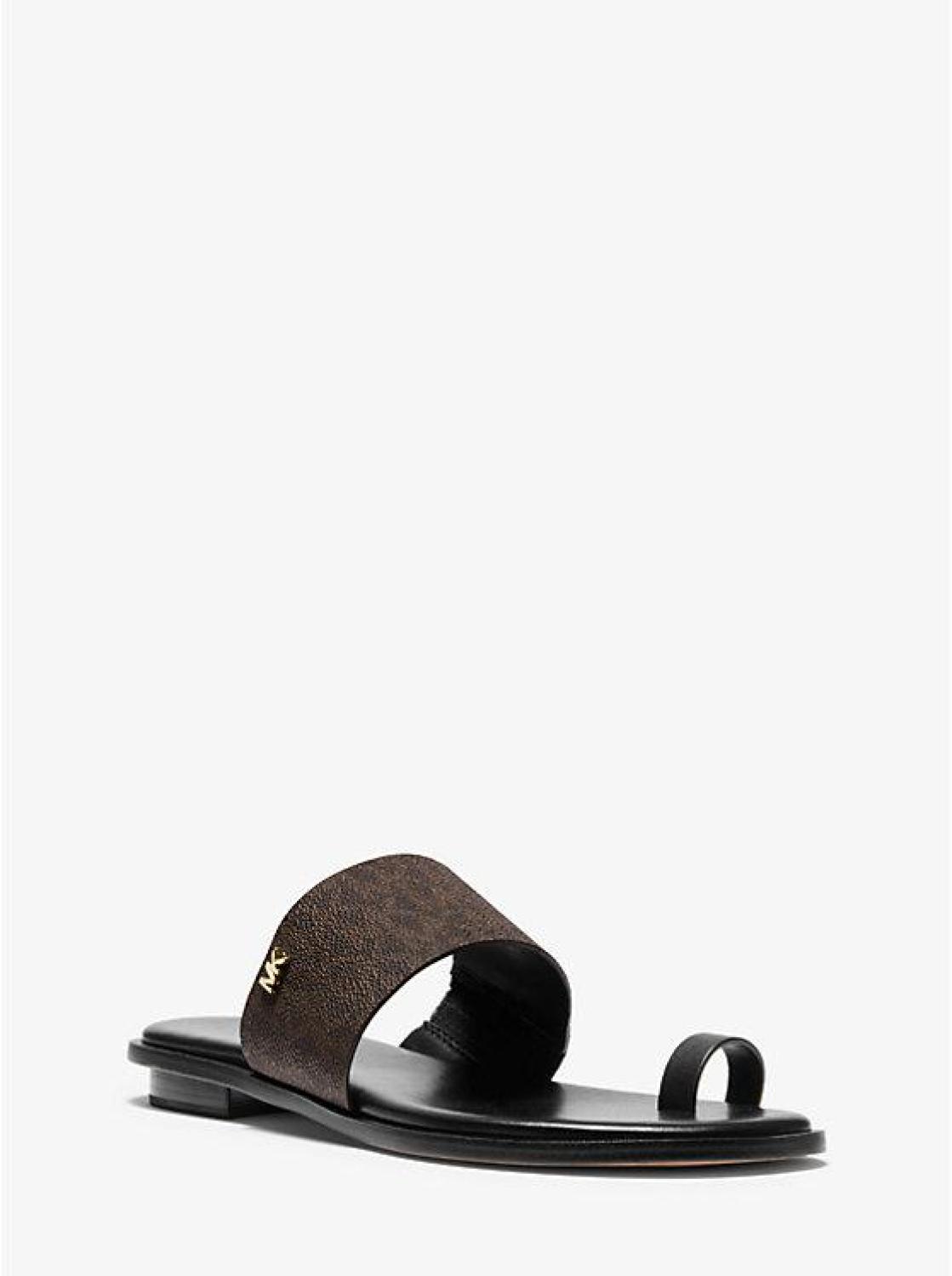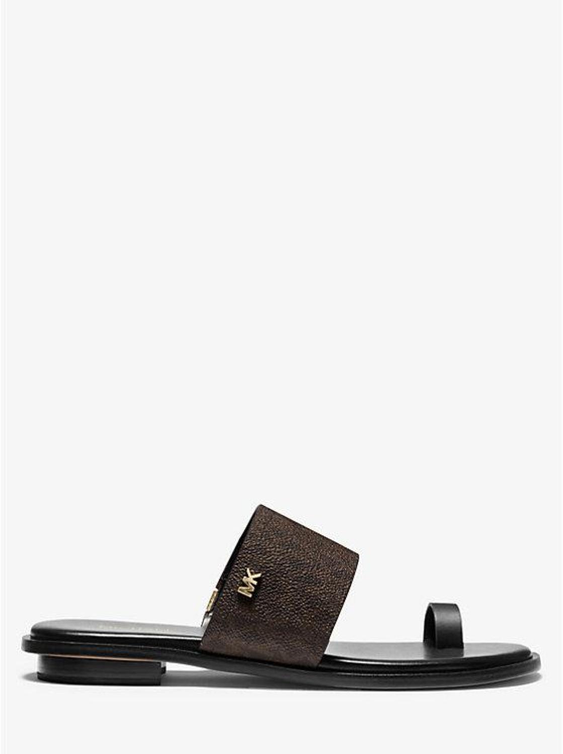 The heel may be flat, but the attitude is elevated. Our Signature Logo print August sandal is crafted with a toe ring and finished with a subtle MK plaque. The lightly cushioned footbed offers comfort, whether you’re brunching, sightseeing, or simply running errands. • Sandal • Logo-print canvas/polyurethane • 100% polyurethane • Lining: polyurethane blend • Sole: rubber • Open toe • Slip on • Heel height: 0.25” • Heel type: stacked • Imported • Sandal • Logo-print canvas/polyurethane • 100% polyurethane • Lining: polyurethane blend • Sole: rubber • Open toe • Slip on • Heel height: 0.25” • Heel type: stacked • Imported