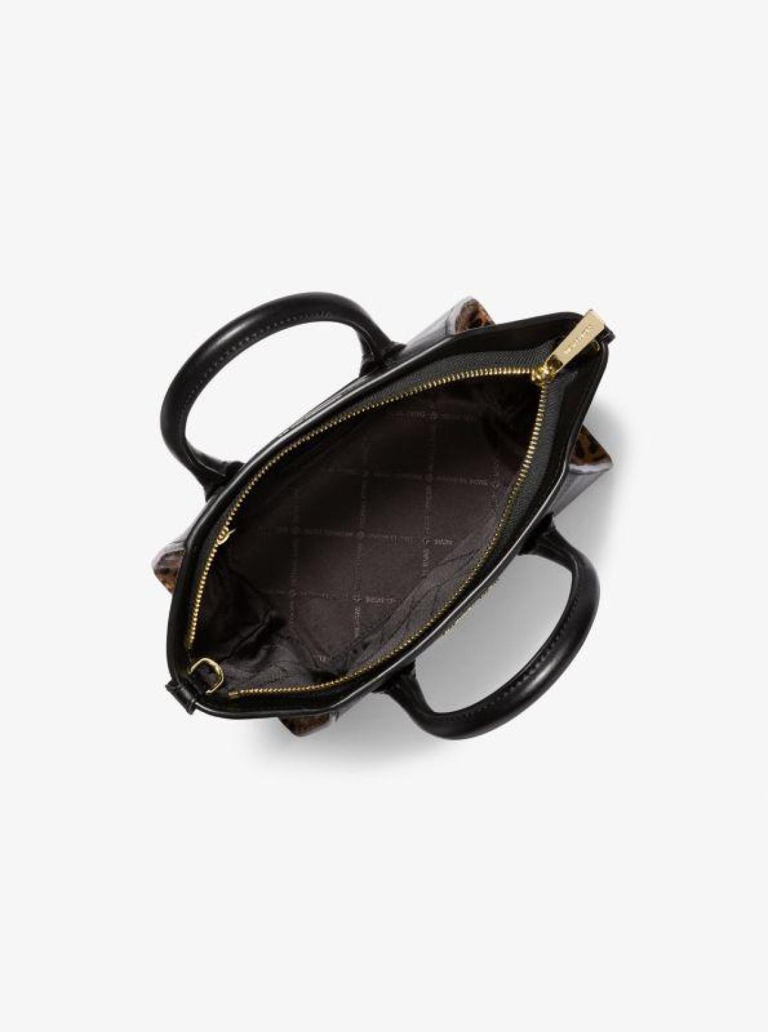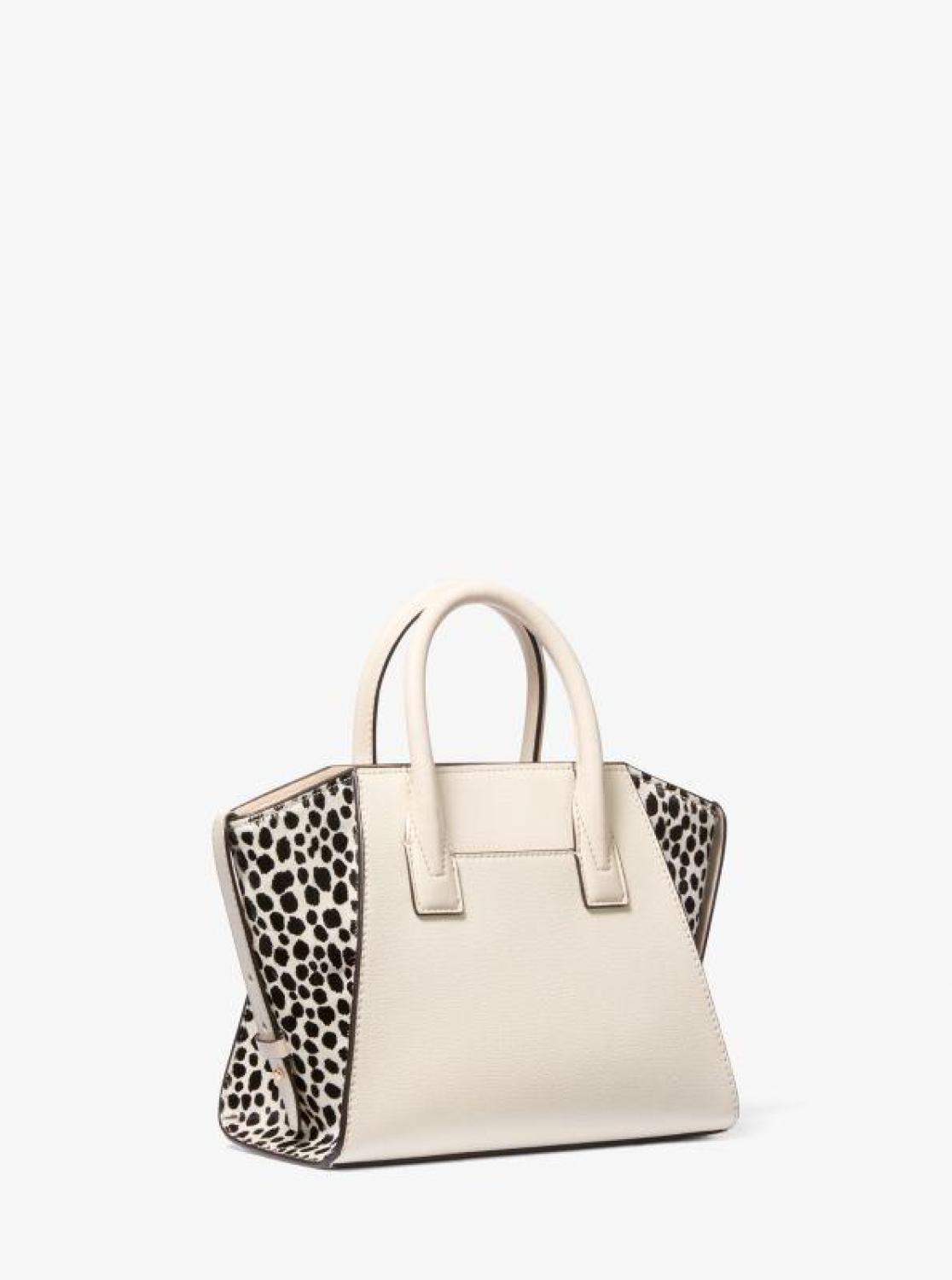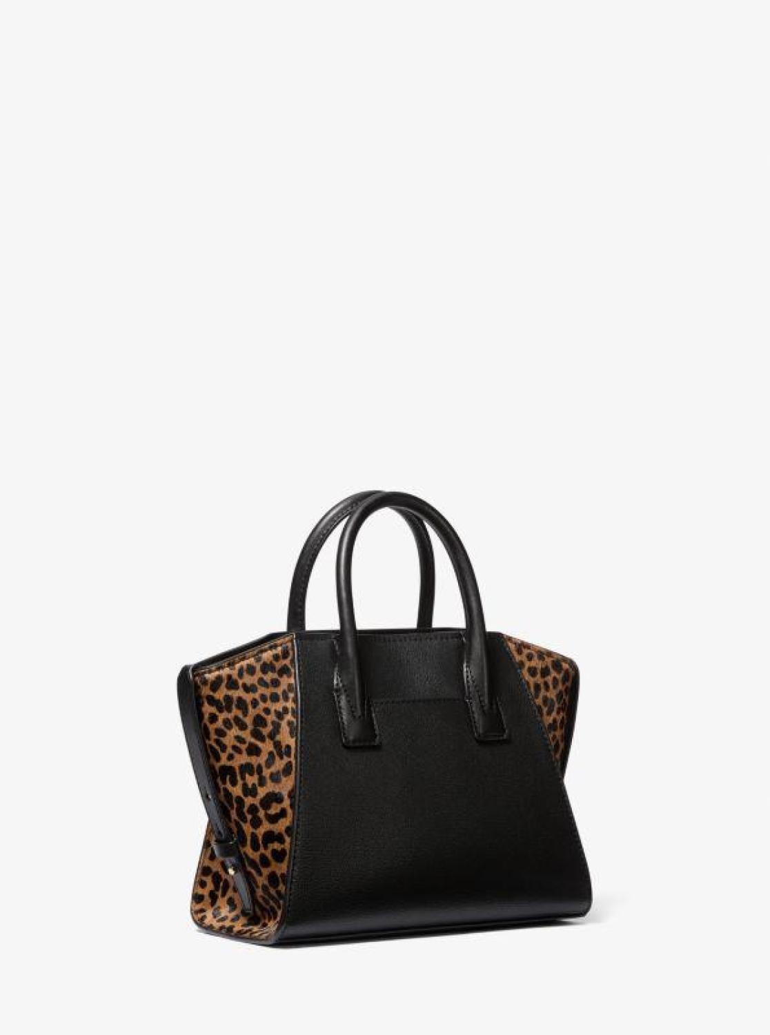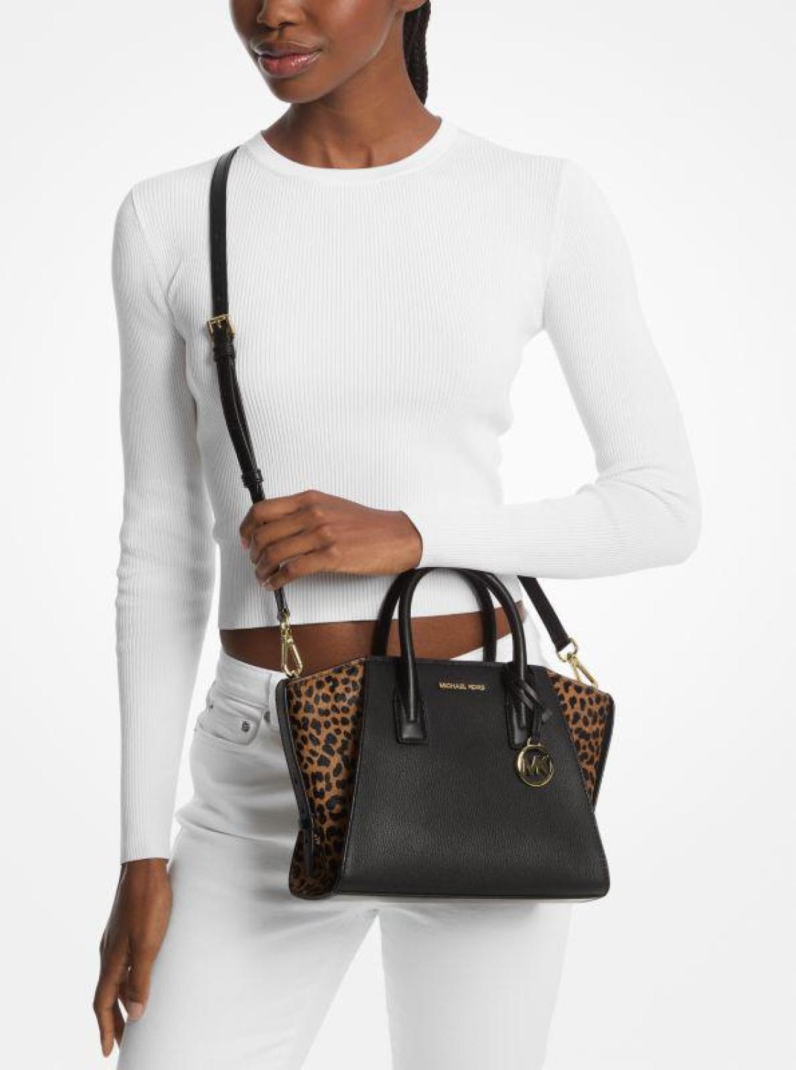 Avril Small Leather and Cheetah Print Calf Hair Satchel