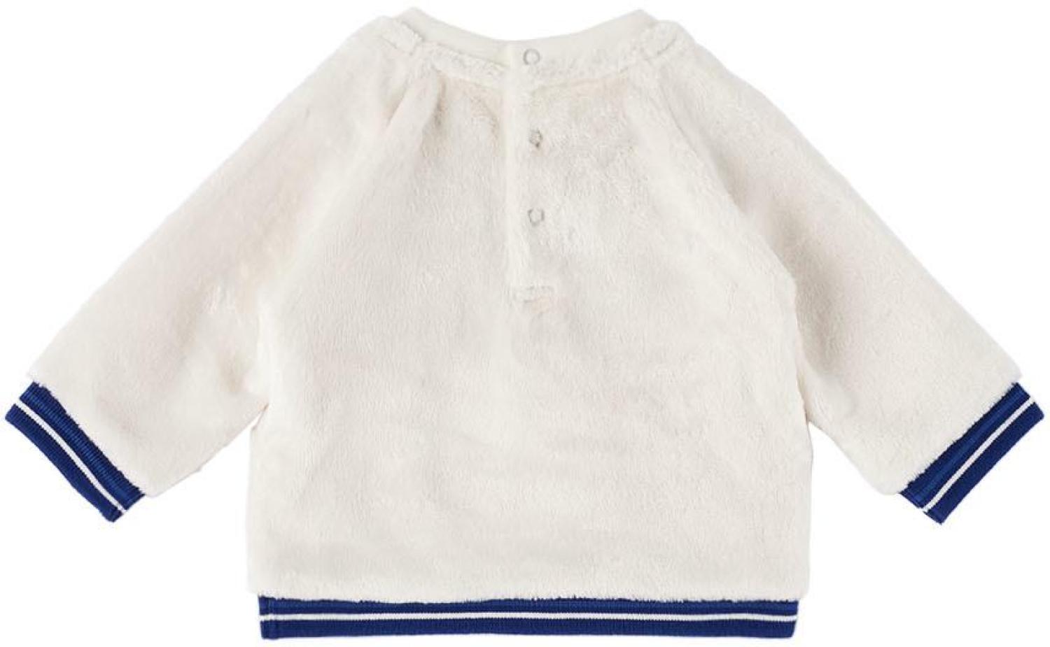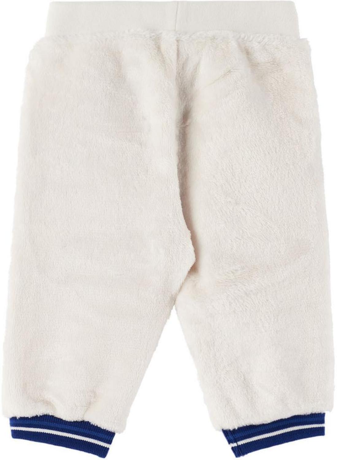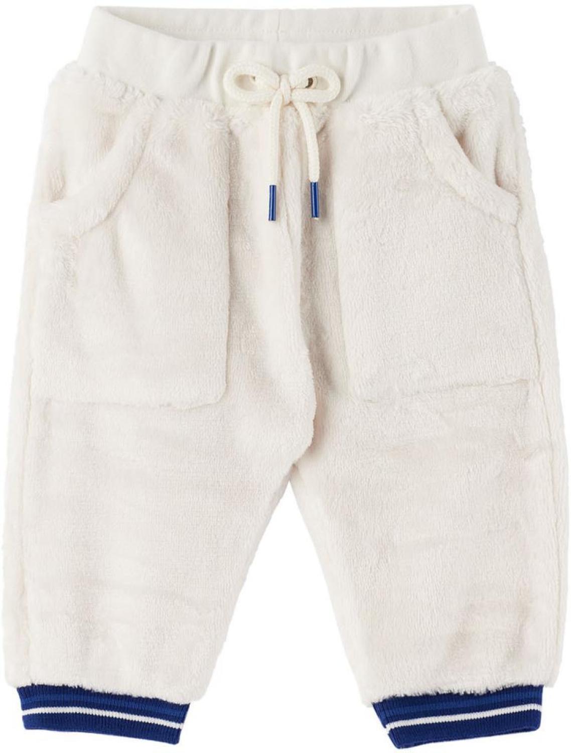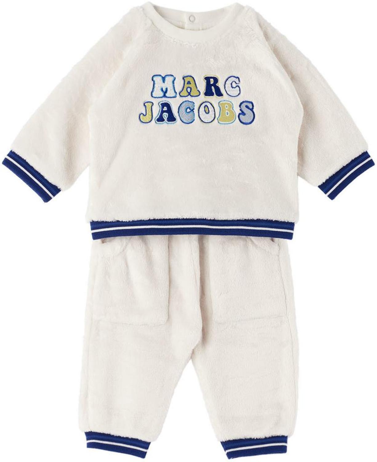 Marc Jacobs Baby Off-White Fleece Lounge Pants Double-faced polyester fleece lounge pants in off-white. · Drawstring at elasticized waistband · Two-pocket styling · Stripes at navy rib knit cuffs · Machine wash Supplier color: Craie Marc Jacobs Size : child's height 1M: 21.25" / 54 cm 3M: 23.5" / 60 cm 6M: 26.5" / 67 cm 9M: 28" / 71 cm 12M: 29.25" / 74 cm 18M: 32" / 81 cm 100% polyester. Made in Thailand. 222190M690001