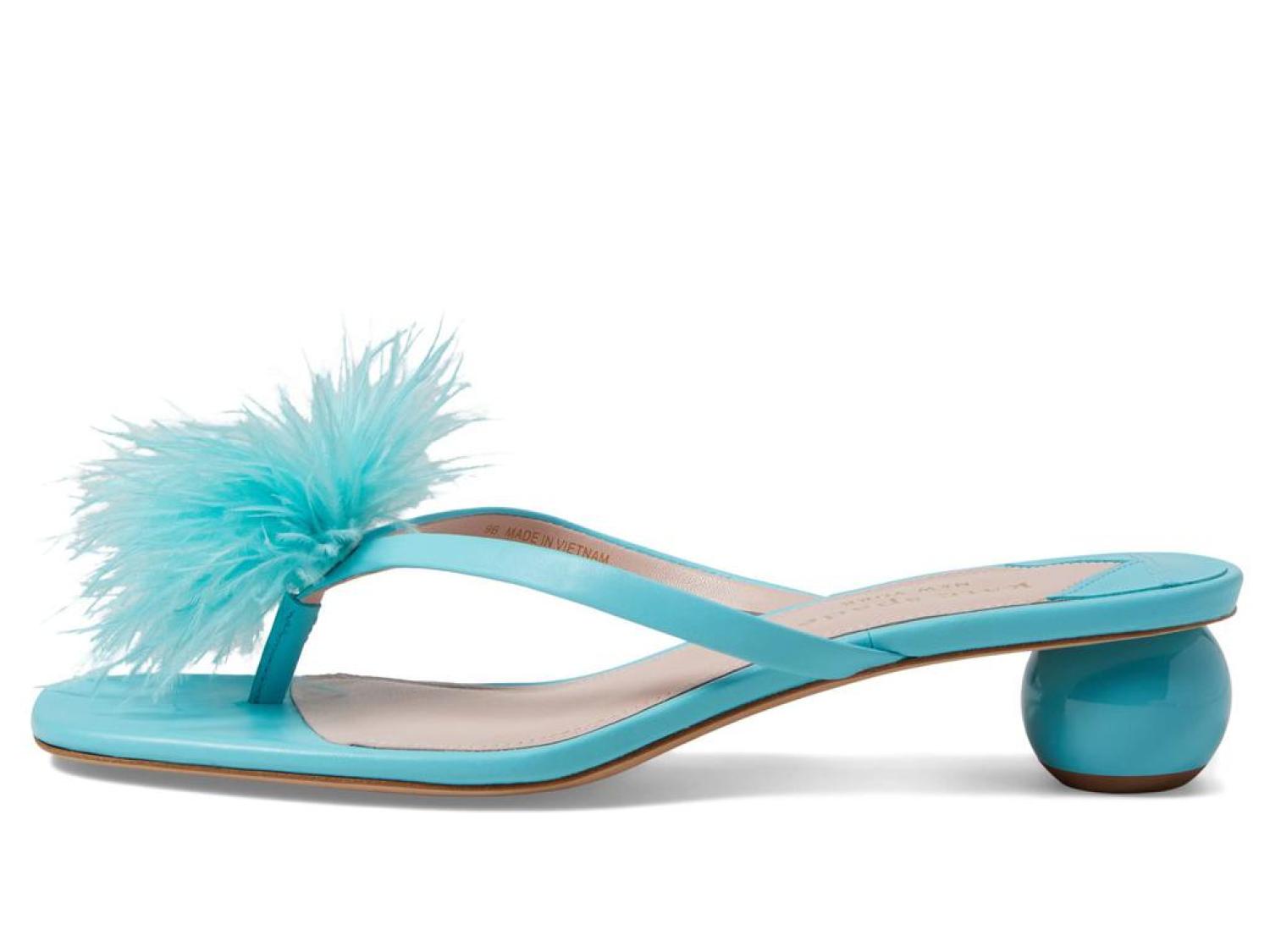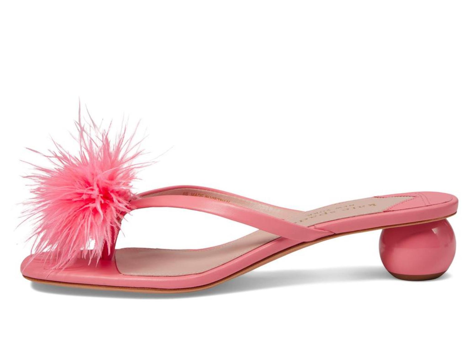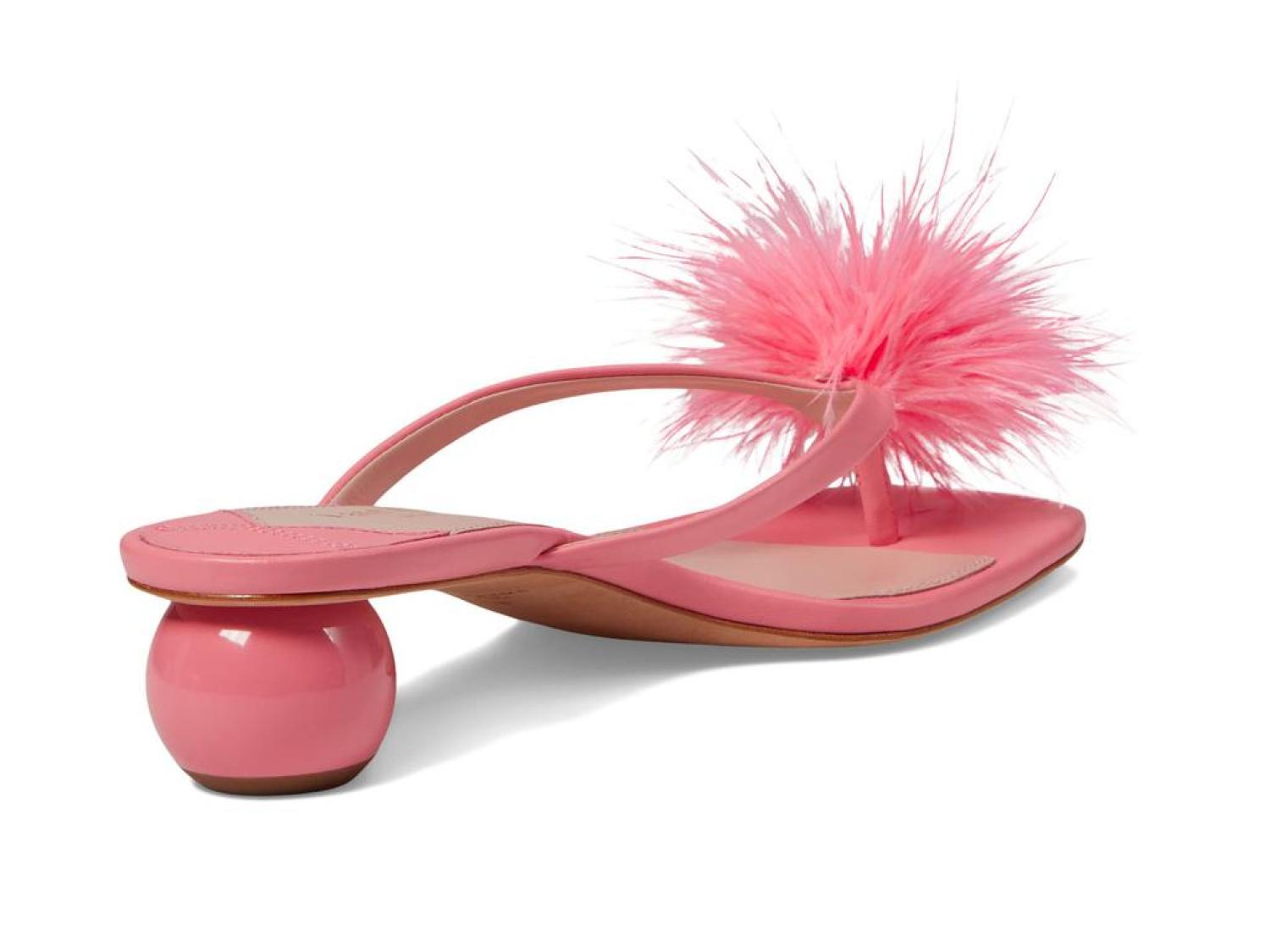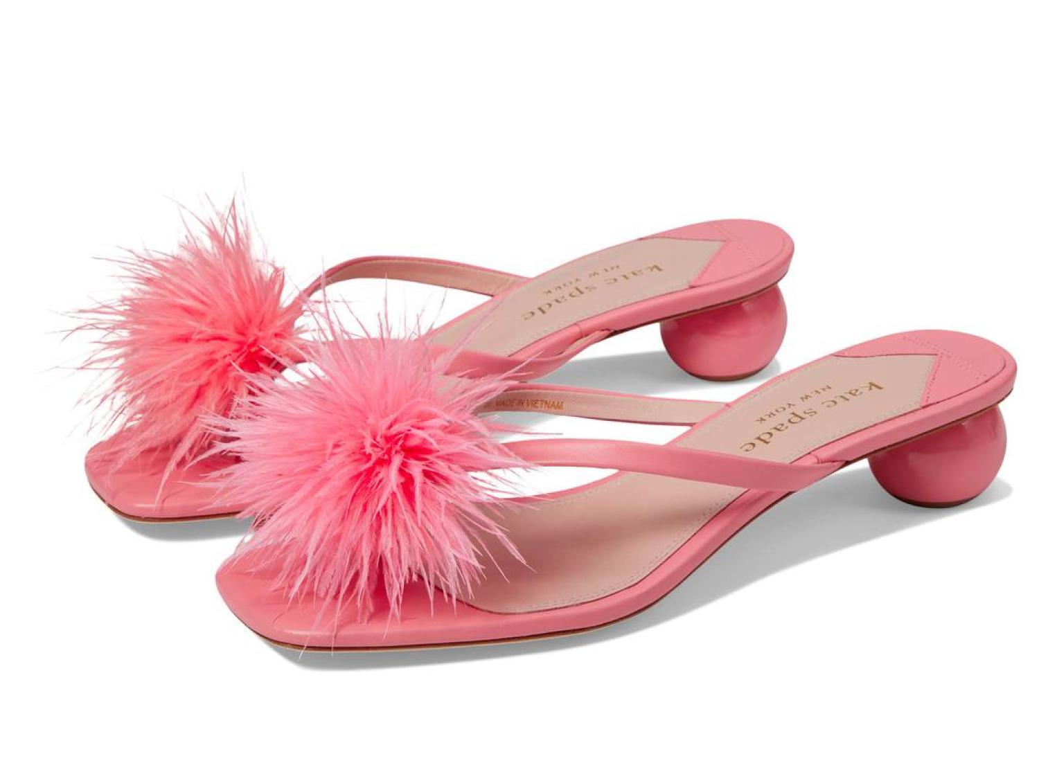The Kate Spade New York® Bahama Heeled Sandals can bring a perfect touch of glam to your outfit with the presence of tonal pom-poms.