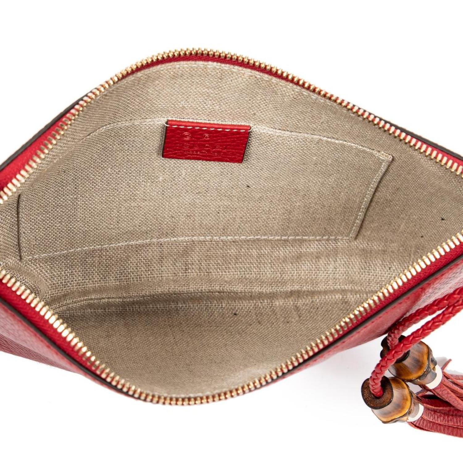 Gucci Handbag in Red Grained Leather and Gold hardware. Dimensions - 26*16*1,5cm. Serial number - 449652-498075. Inclusions - Dustbag.