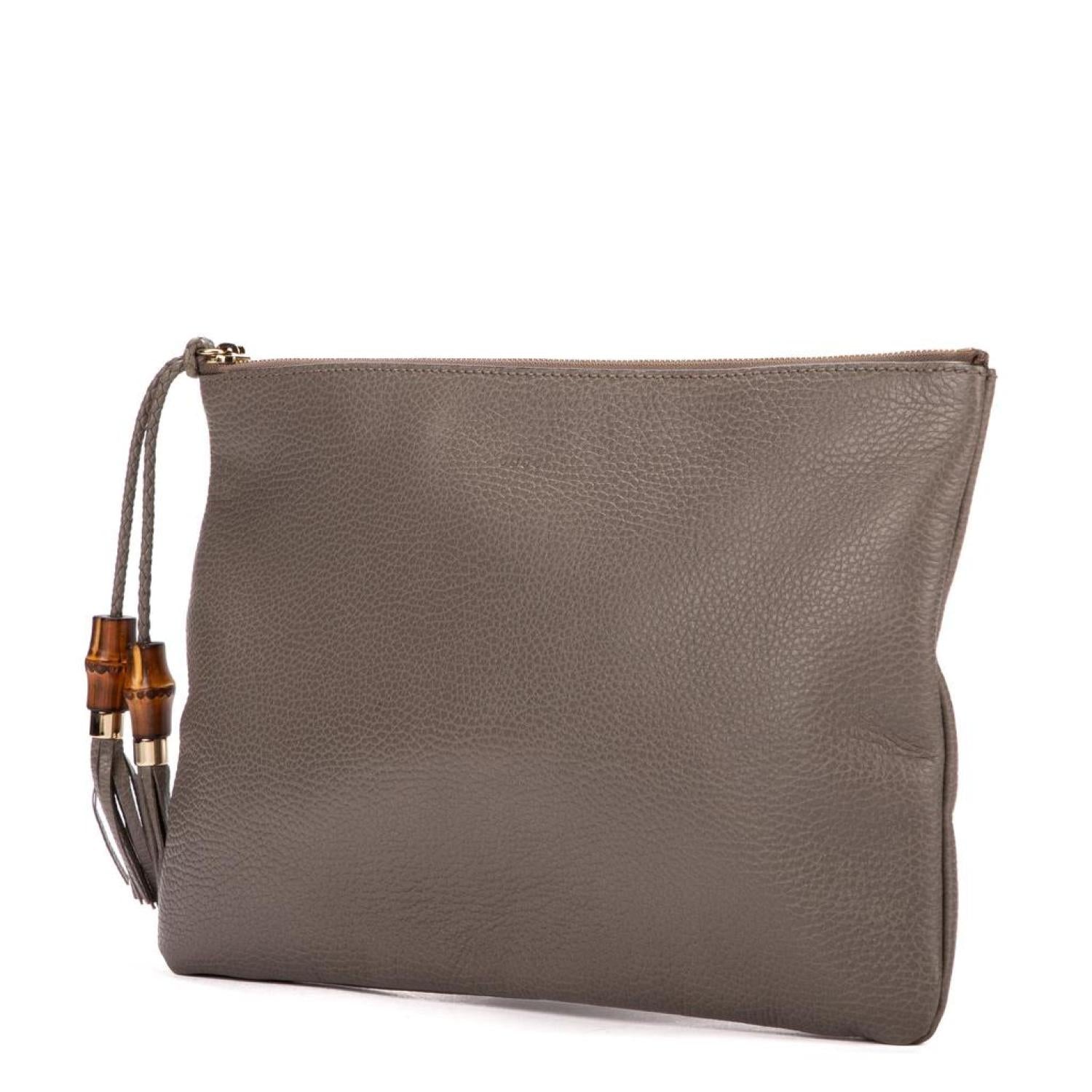 • Gucci Clutch in Grey Cowhide leather and Bamboo hardware. Dimensions - 35*21cm. Serial number - 4.49653E+11. Inclusions - N/A.