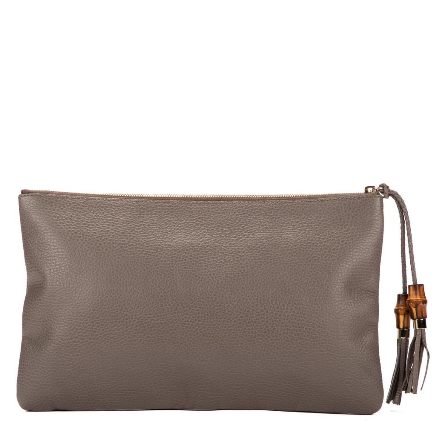 Gucci Clutch in Grey Cowhide leather and Bamboo hardware. Dimensions - 35*21cm. Serial number - 4.49653E+11. Inclusions - N/A.