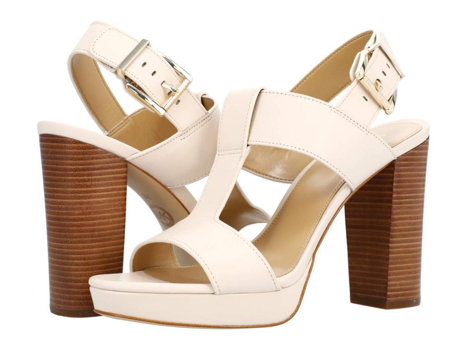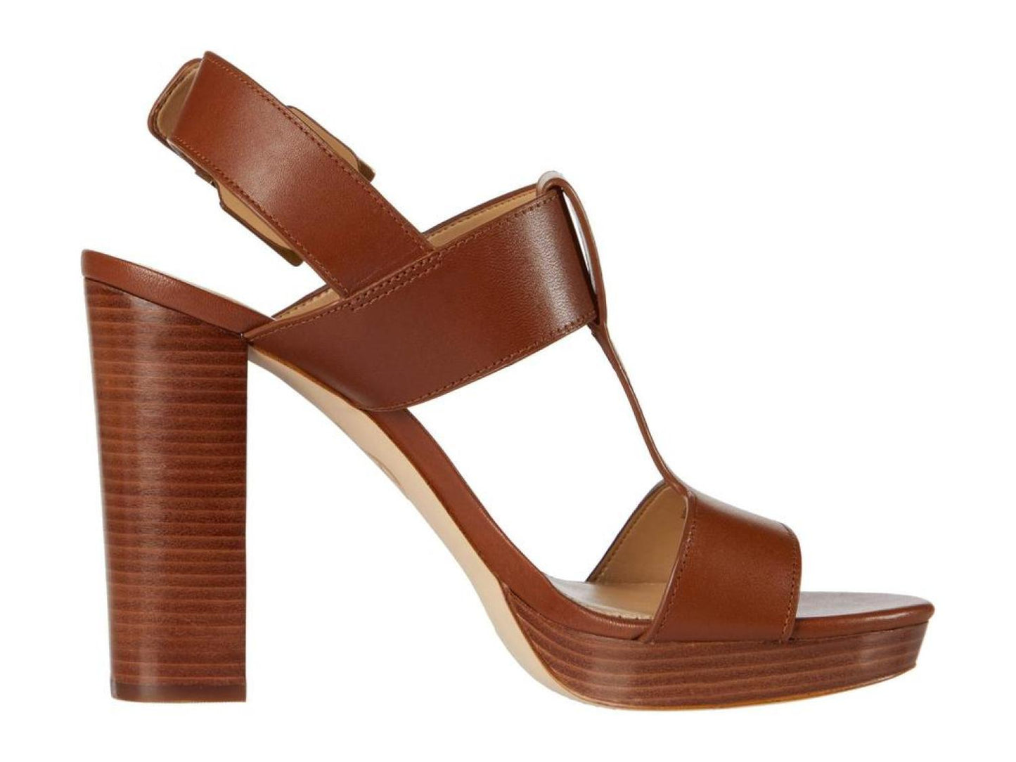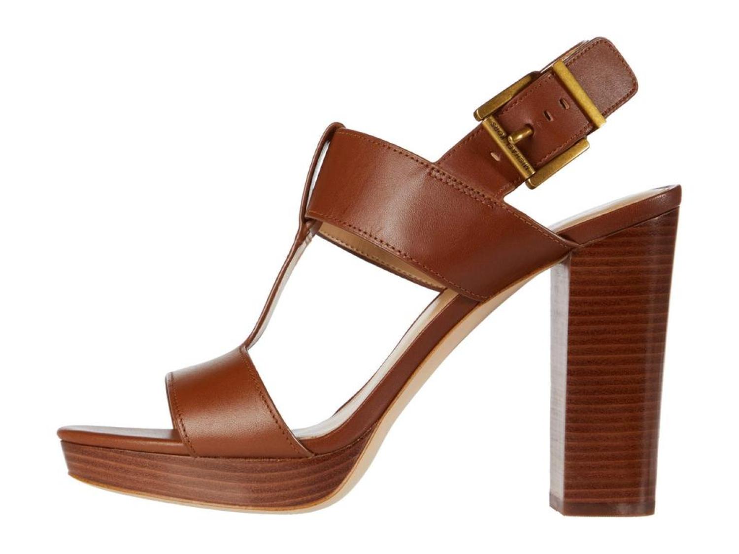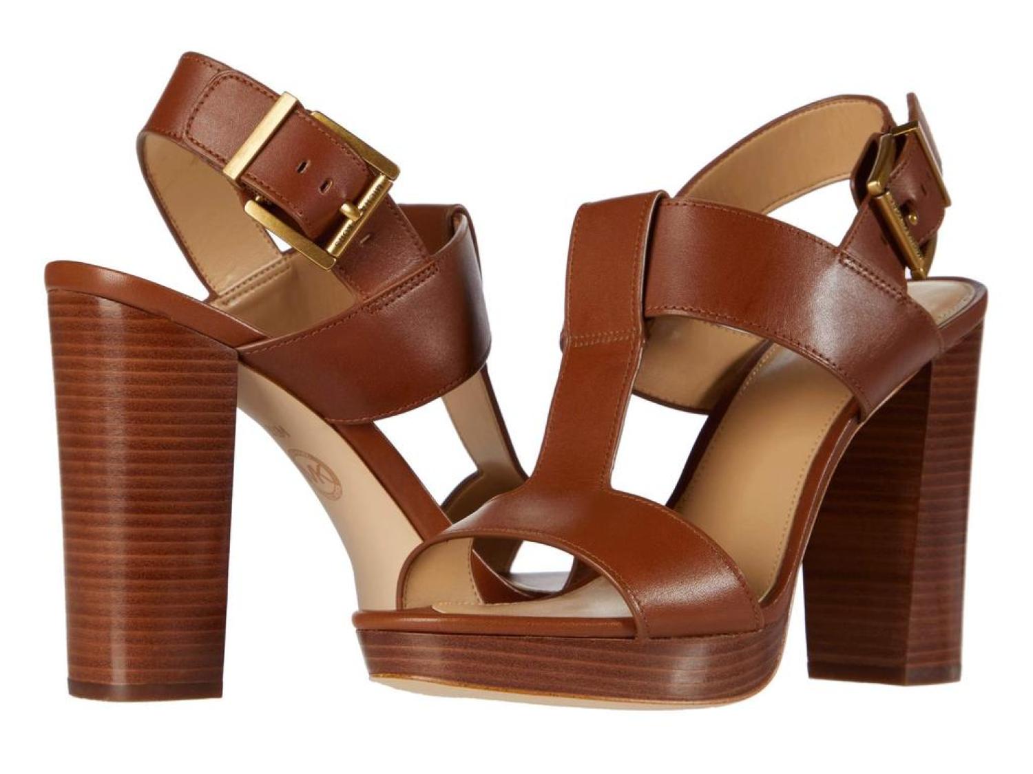 • The MICHAEL Michael Kors® Becker T Strap sandal effortlessly completes any look.  This platform sandal is crafted with a burnished leather upper, and is set on a soaring stacked heel.