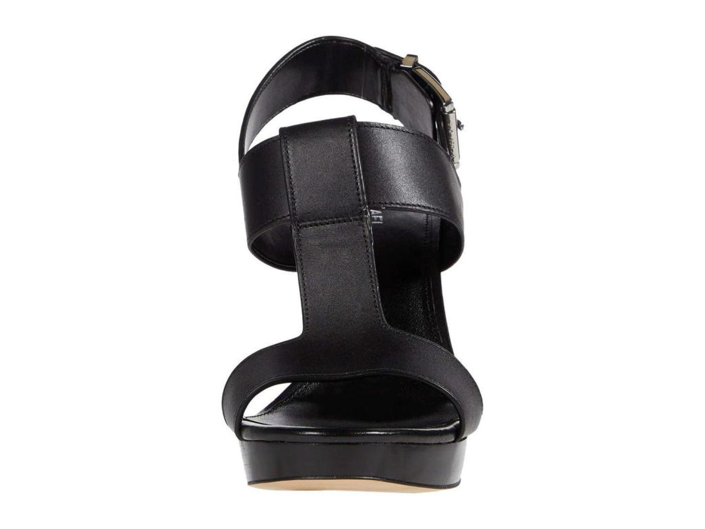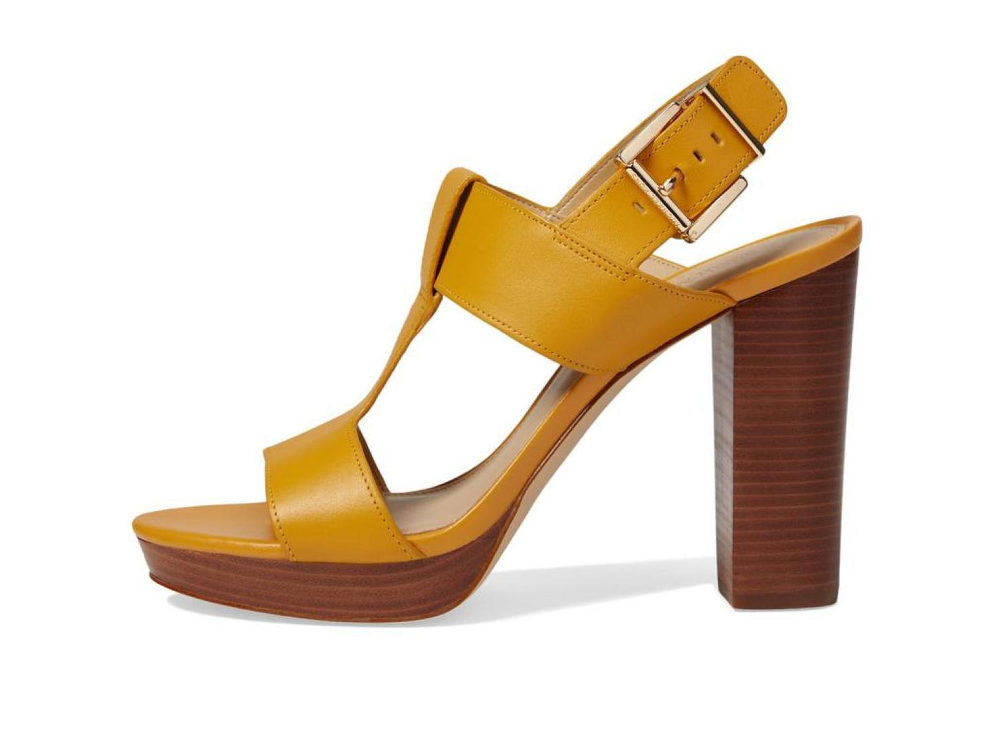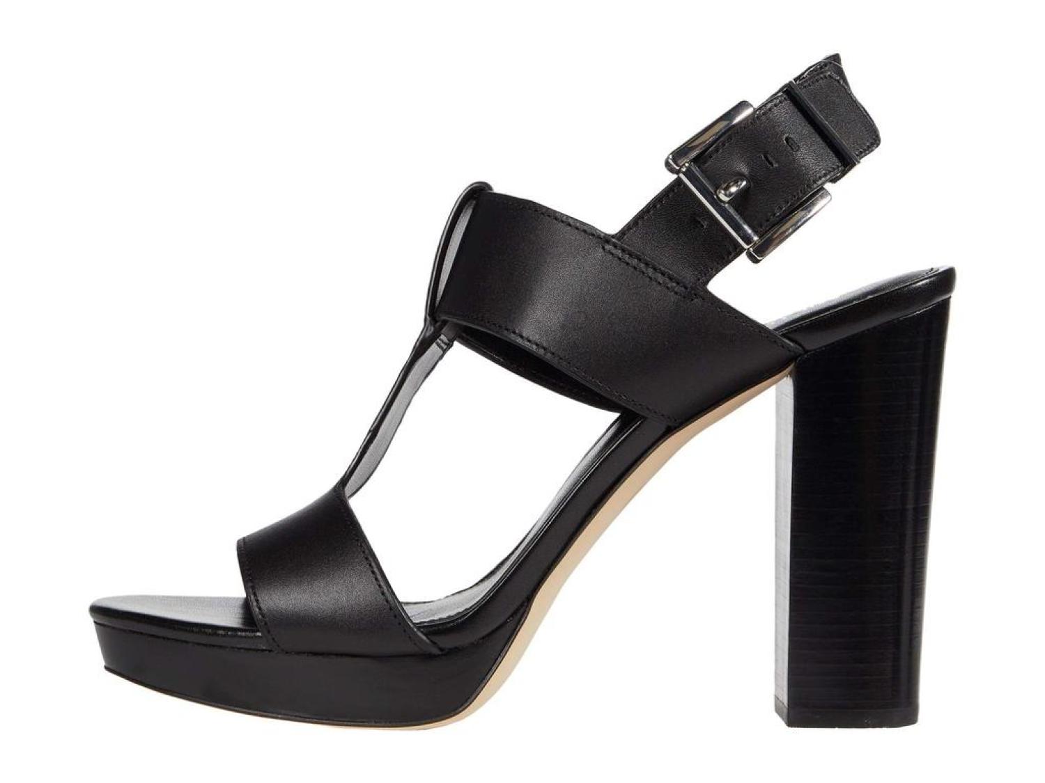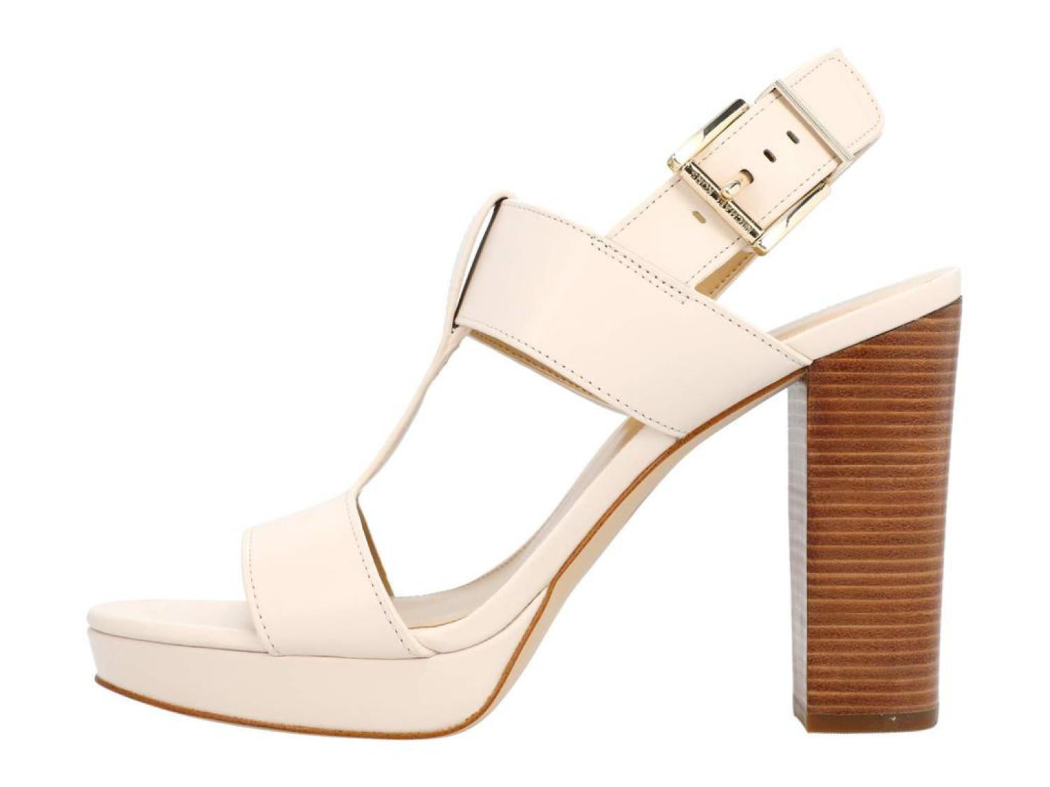 • The MICHAEL Michael Kors® Becker T Strap sandal effortlessly completes any look.  This platform sandal is crafted with a burnished leather upper, and is set on a soaring stacked heel.