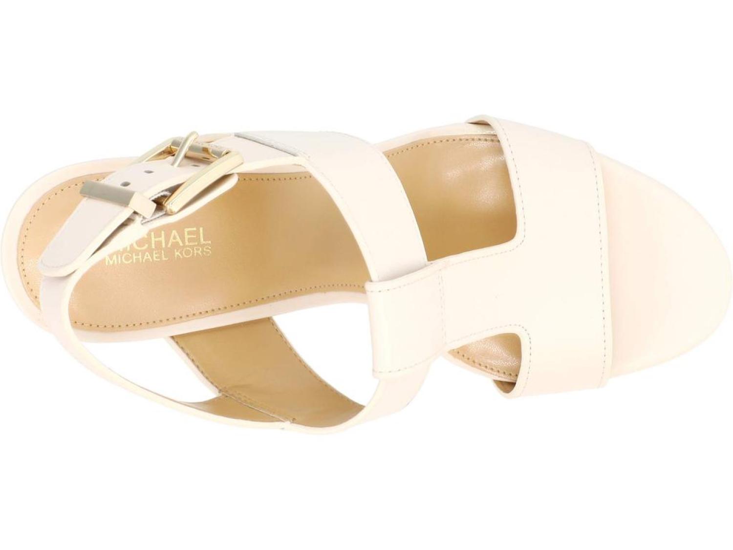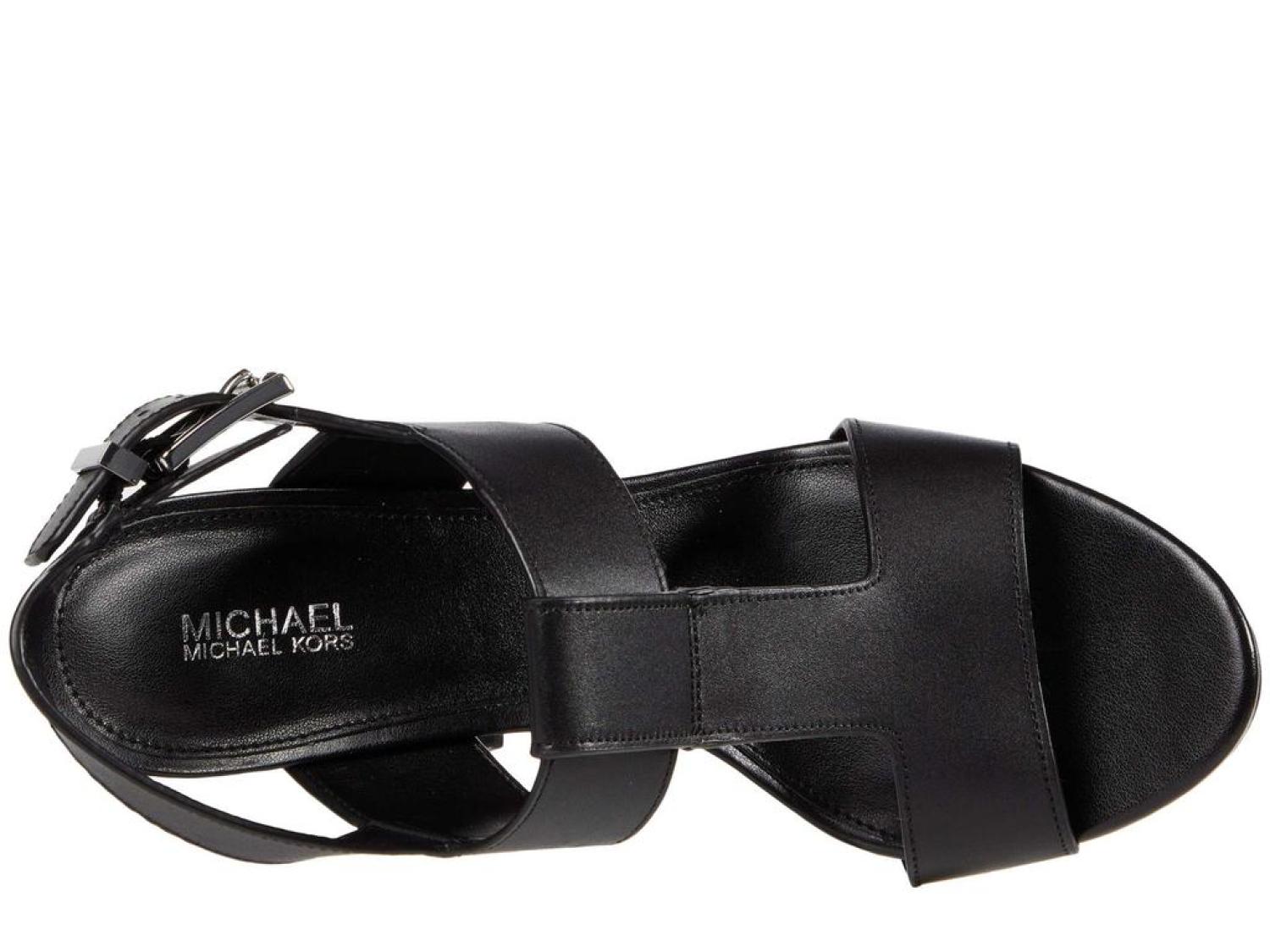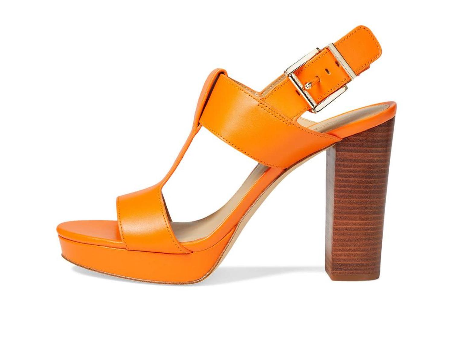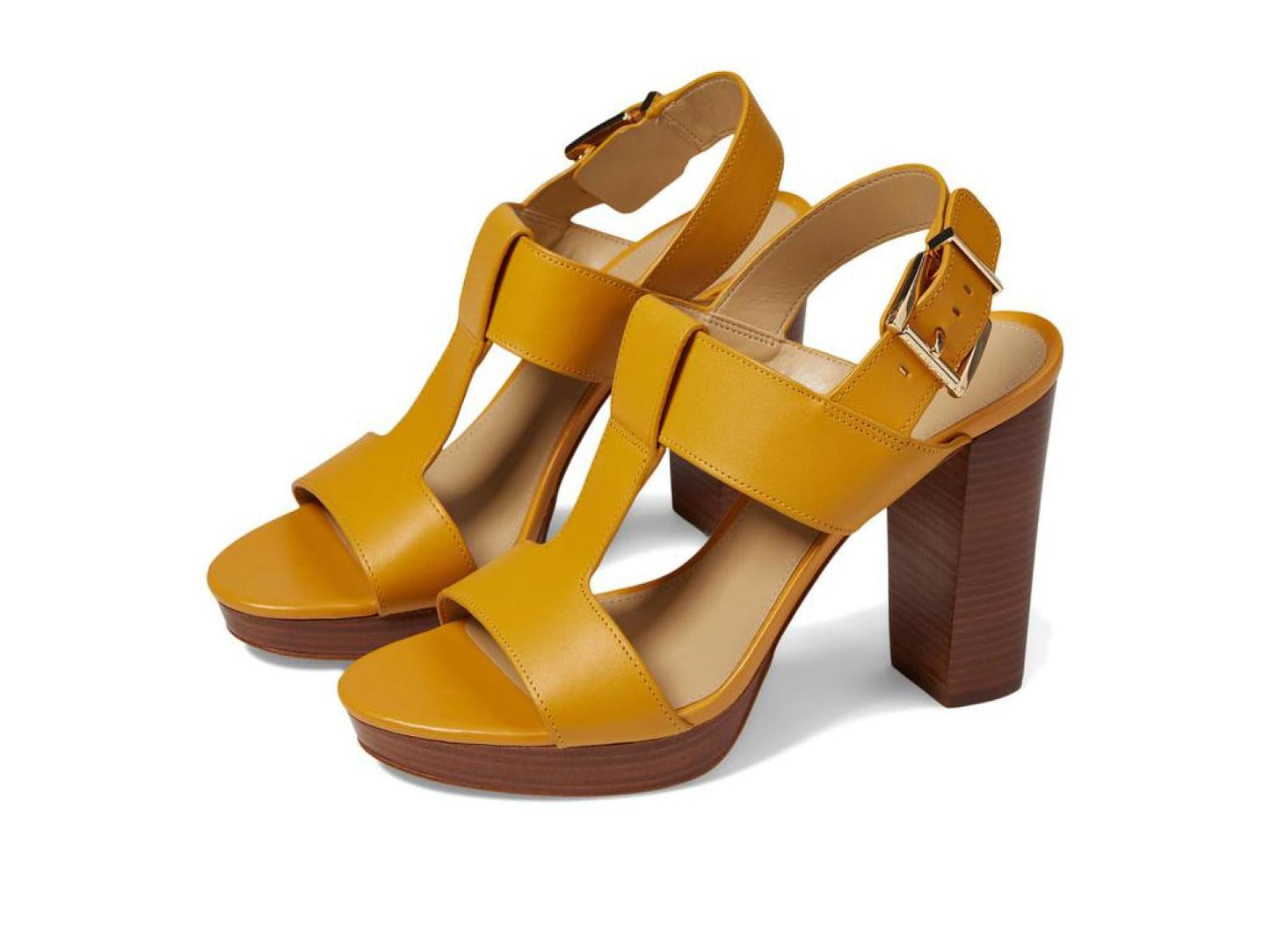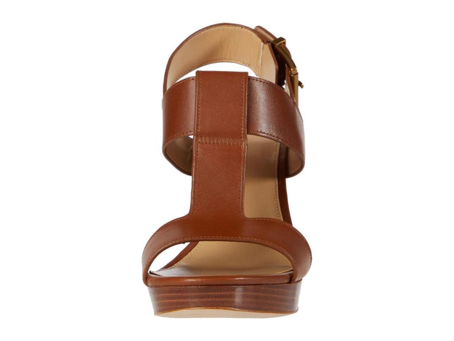 • The MICHAEL Michael Kors® Becker T Strap sandal effortlessly completes any look.  This platform sandal is crafted with a burnished leather upper, and is set on a soaring stacked heel.