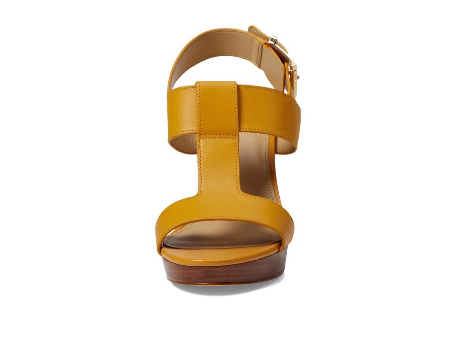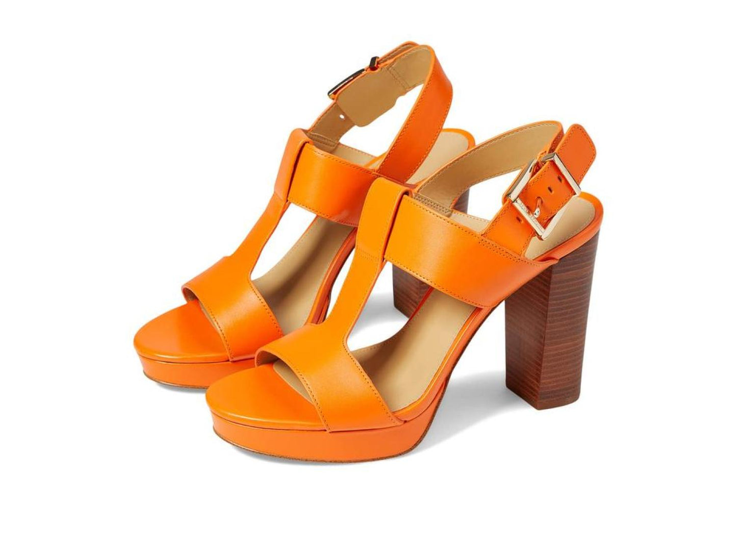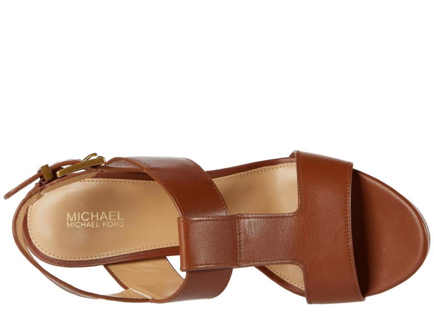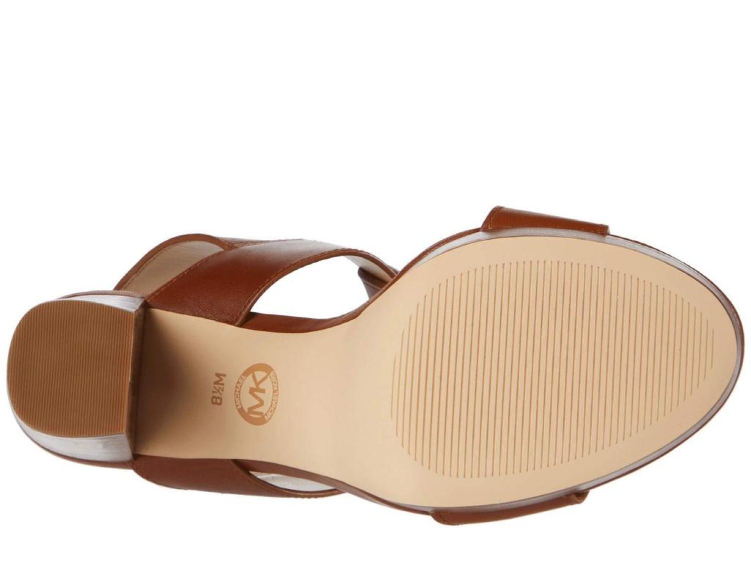 • The MICHAEL Michael Kors® Becker T Strap sandal effortlessly completes any look.  This platform sandal is crafted with a burnished leather upper, and is set on a soaring stacked heel.