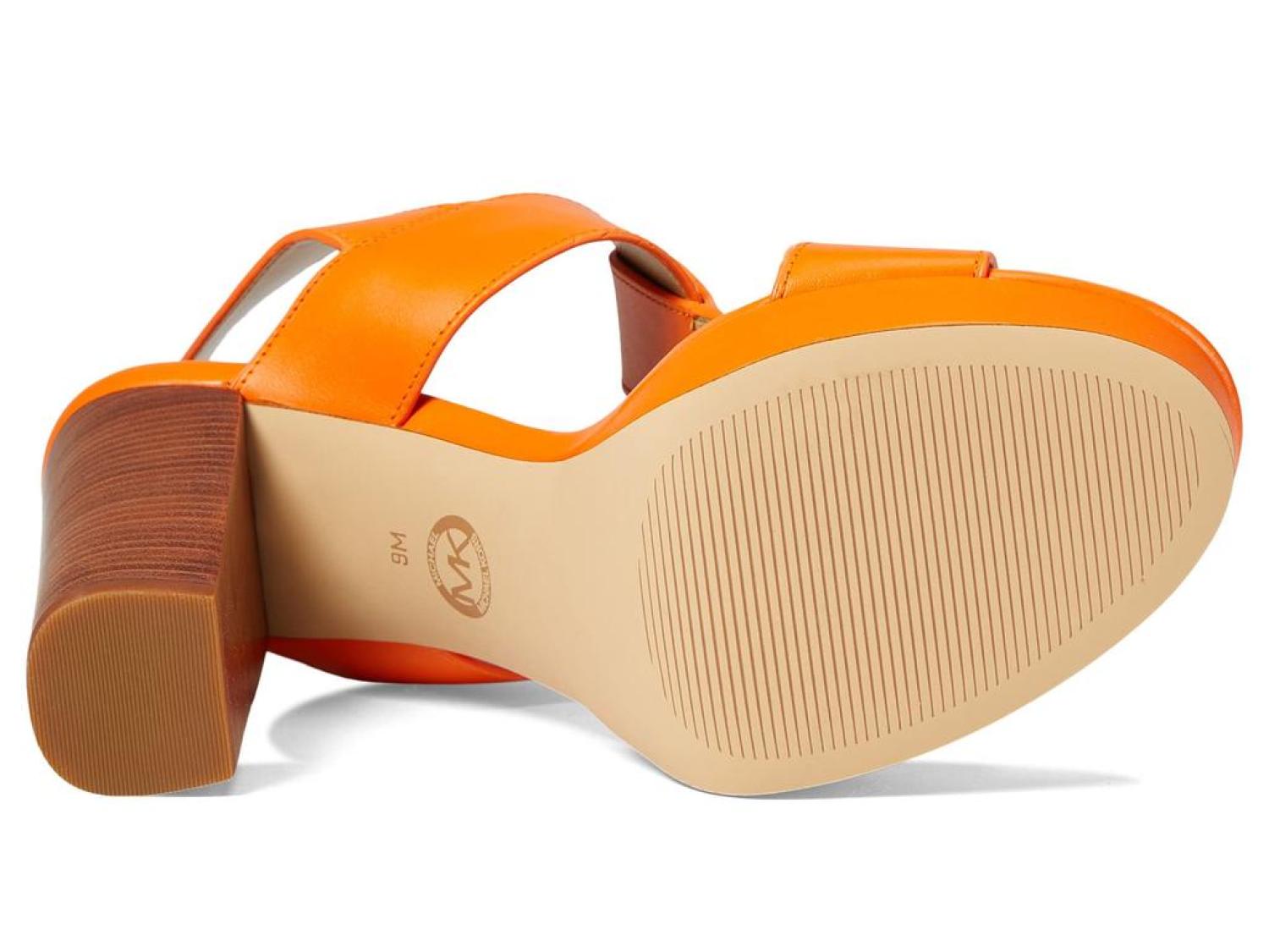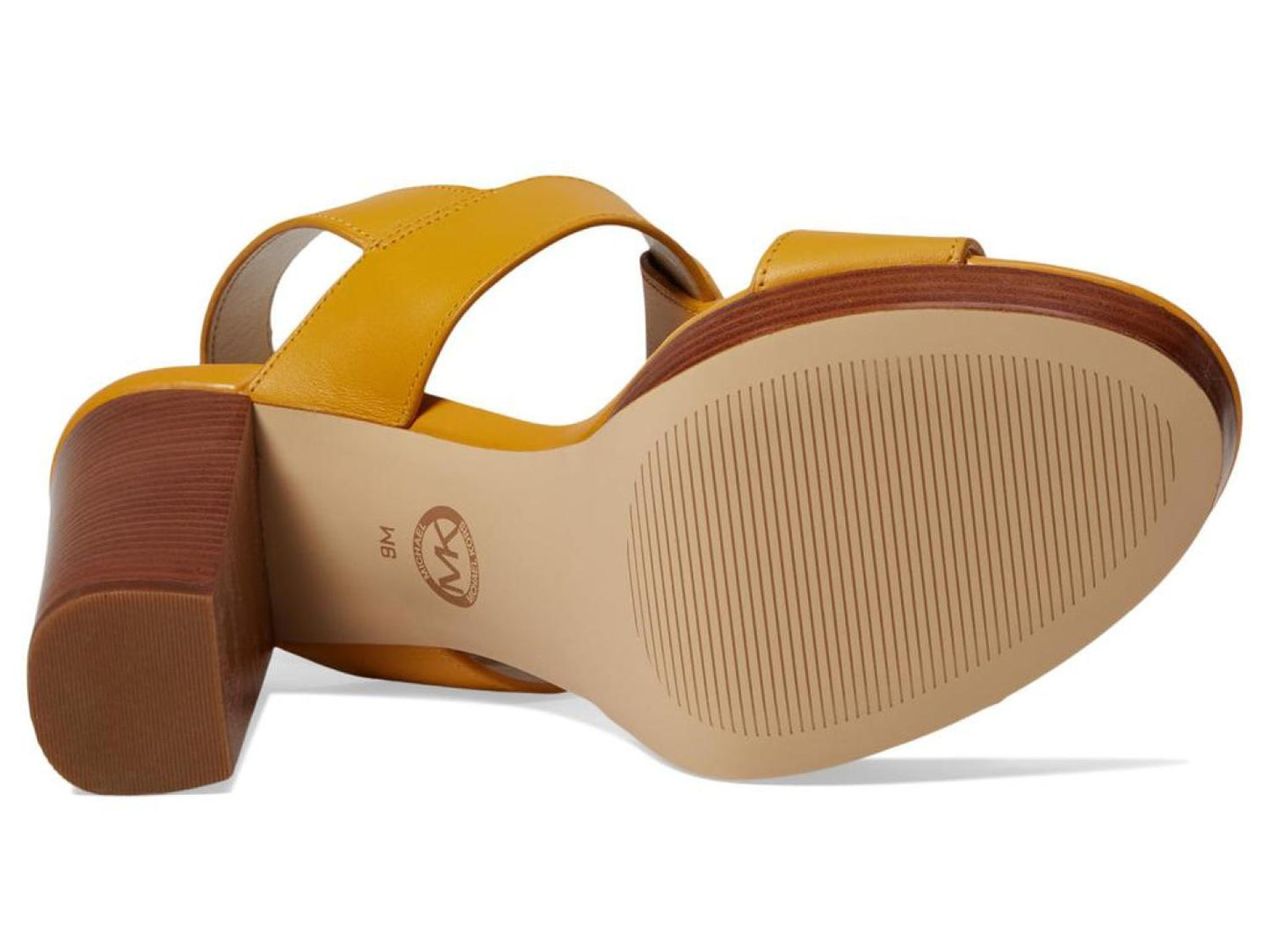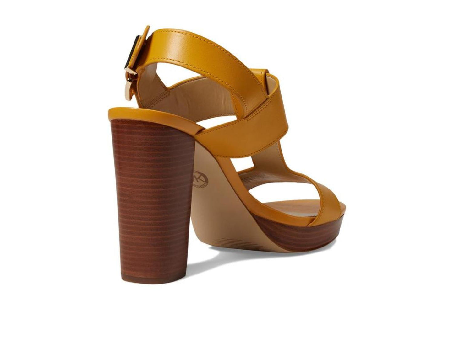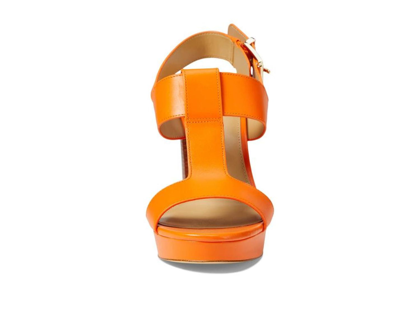• The MICHAEL Michael Kors® Becker T Strap sandal effortlessly completes any look.  This platform sandal is crafted with a burnished leather upper, and is set on a soaring stacked heel.
