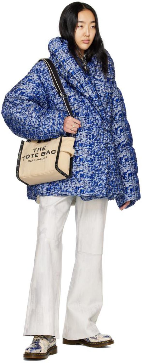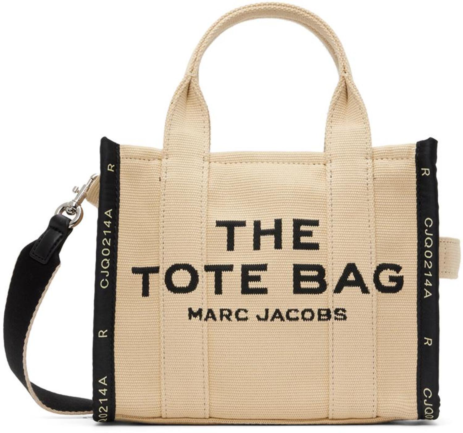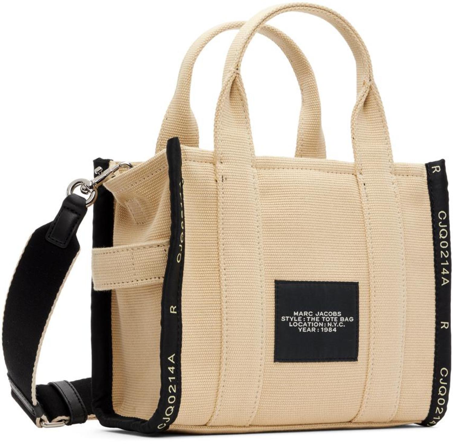 Cotton canvas tote in beige. Text-woven twill trim in black throughout.