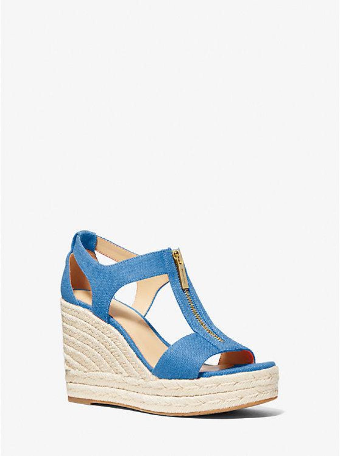 • Defined by a woven canvas finish, our Berkley wedge sandal is equal parts glamorous and effortless. It’s set on a jute-trimmed wedge sole for tactile appeal, with a sporty zip fastening that ensures easy wear. Team this pair with everything from breezy maxi dresses to dark wash denim.