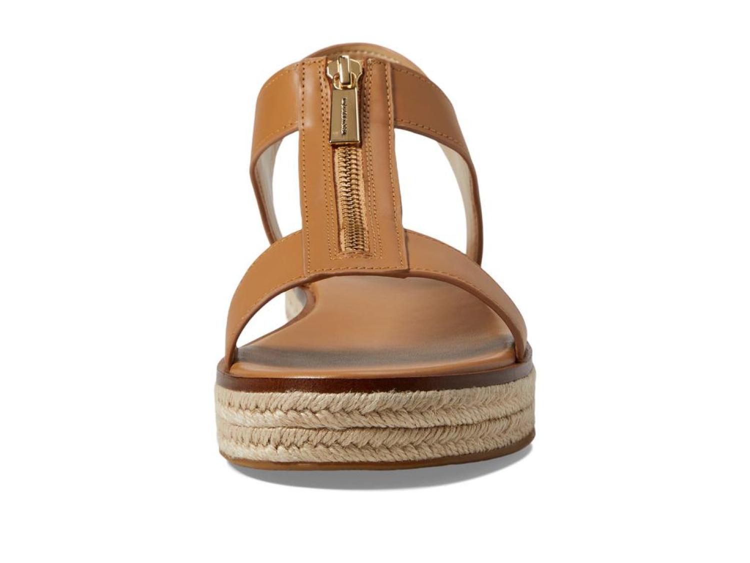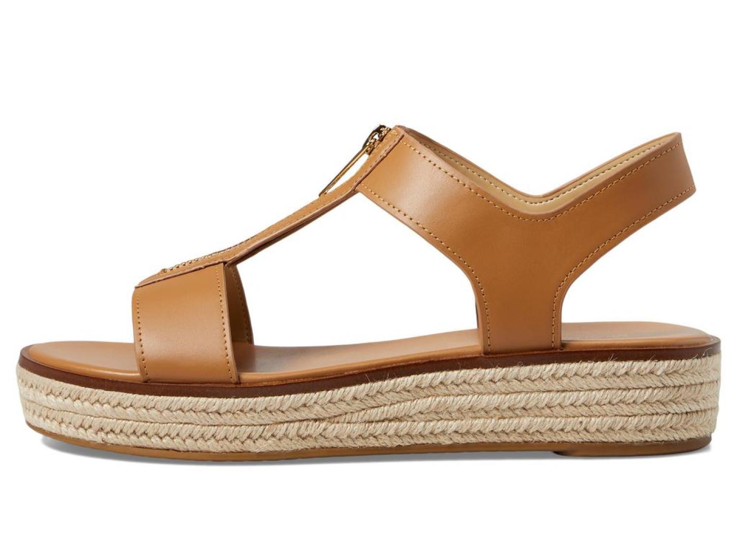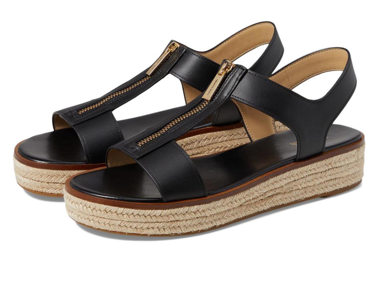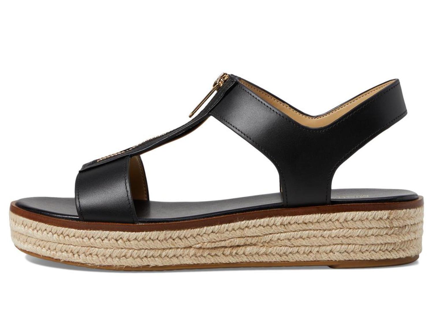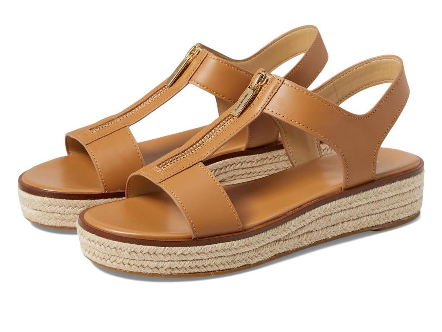 • Be it your casual warm weather strolls, errand runs, or weekend getaways, the MICHAEL Michael Kors® Berkley Espadrille Flatform Flat Sandals offer you the perfect balance between fashion and comfort. Set on a lightly padded synthetic insole for cushioning comfort, the shoes impress with the iconic exposed zippered upper closure and the boho-inspired jute-wrapped platform heel.
