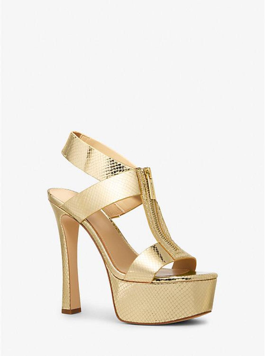 Berkley Metallic Snake Embossed Leather Platform Sandal
