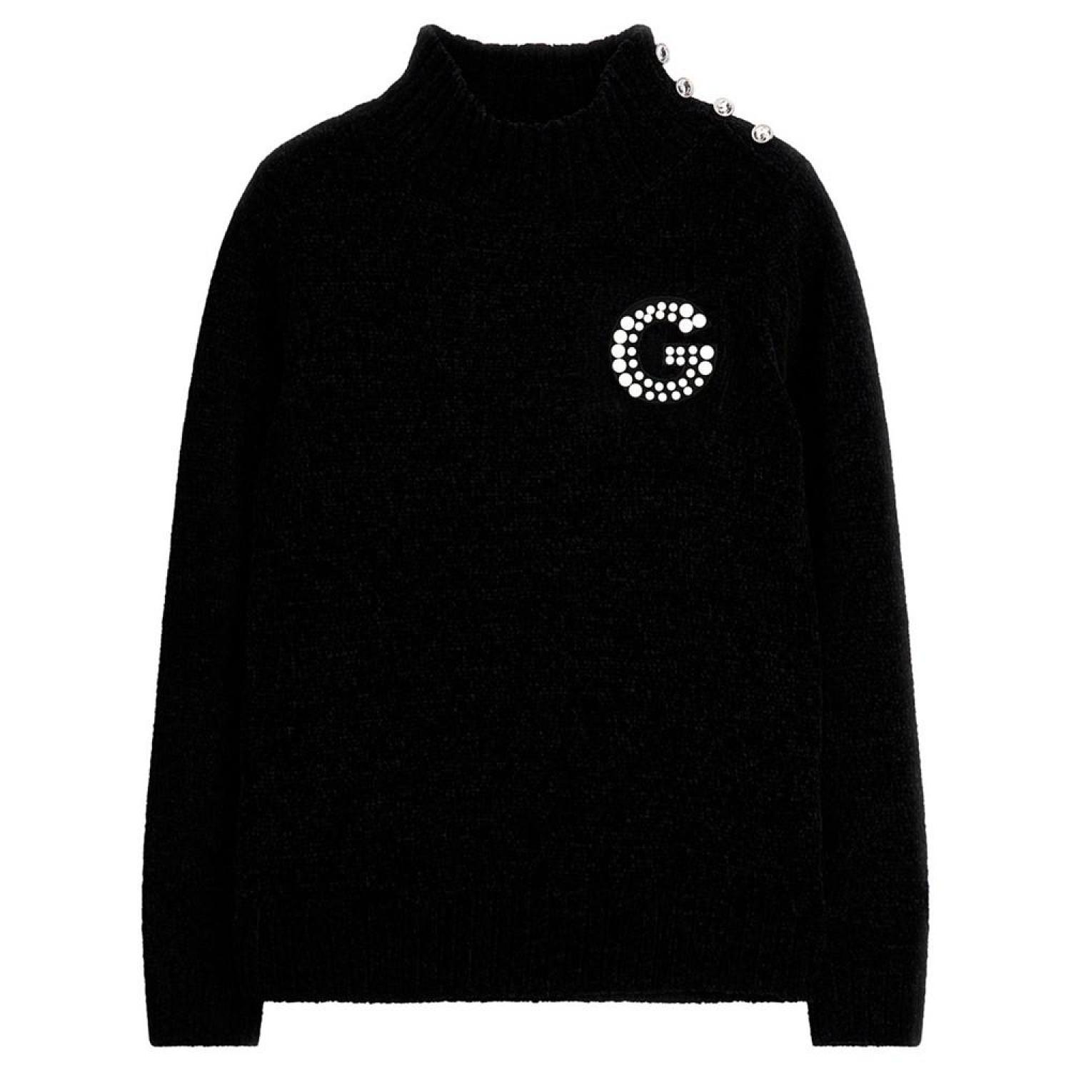 Big Girls Chenille Knit Turtleneck Sweater with Imitation Pearl Logo