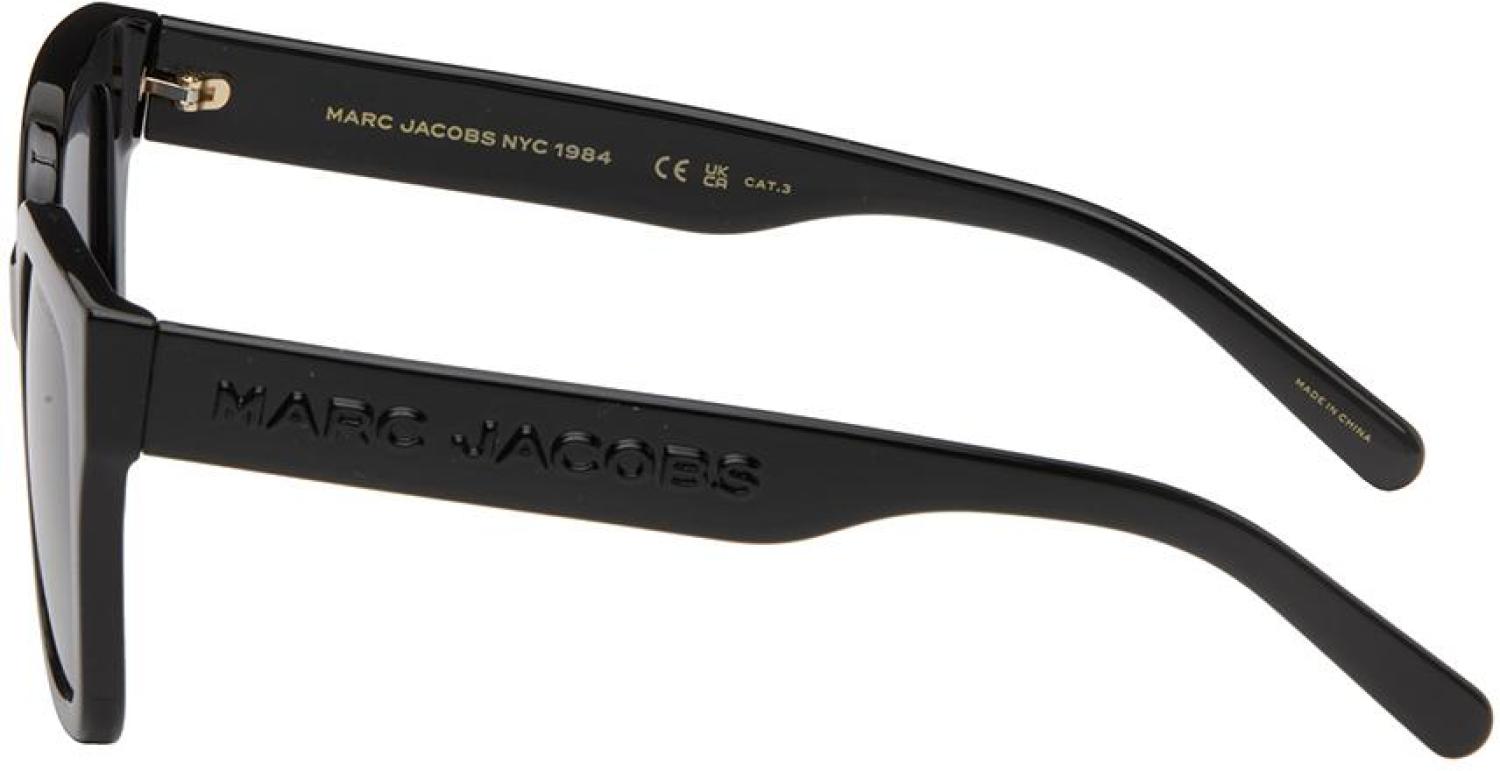 - Marc Jacobs Black Cat-Eye Sunglasses Cat-eye acetate-frame sunglasses in black. · Logo etched at black lenses · Integrated nose pads · Logo embossed at temples · Hardside case included · Size: 53.19 145 Supplier color: Black Acetate. Made in China. 232190F005007