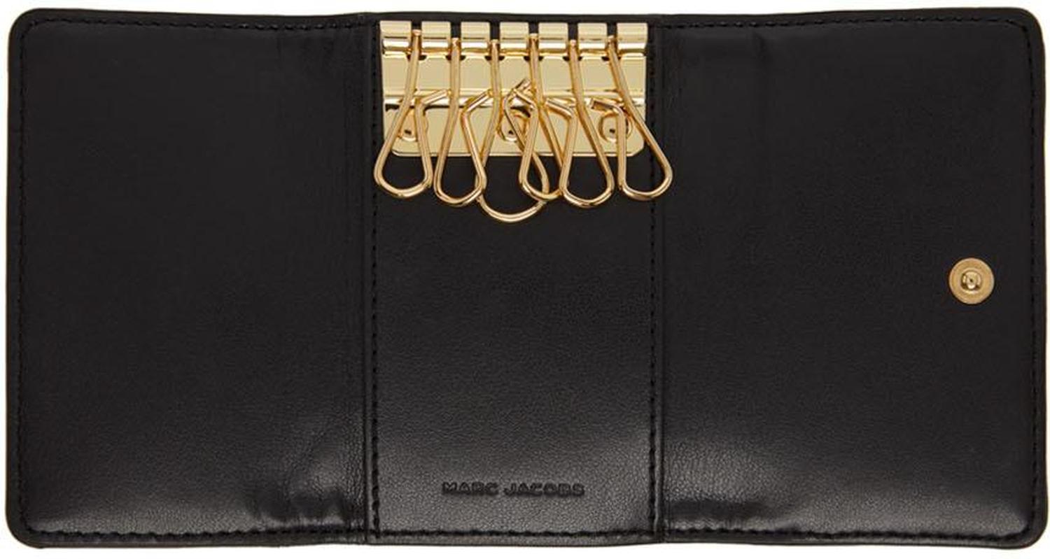 Quilted grained lambskin trifold key case in black.