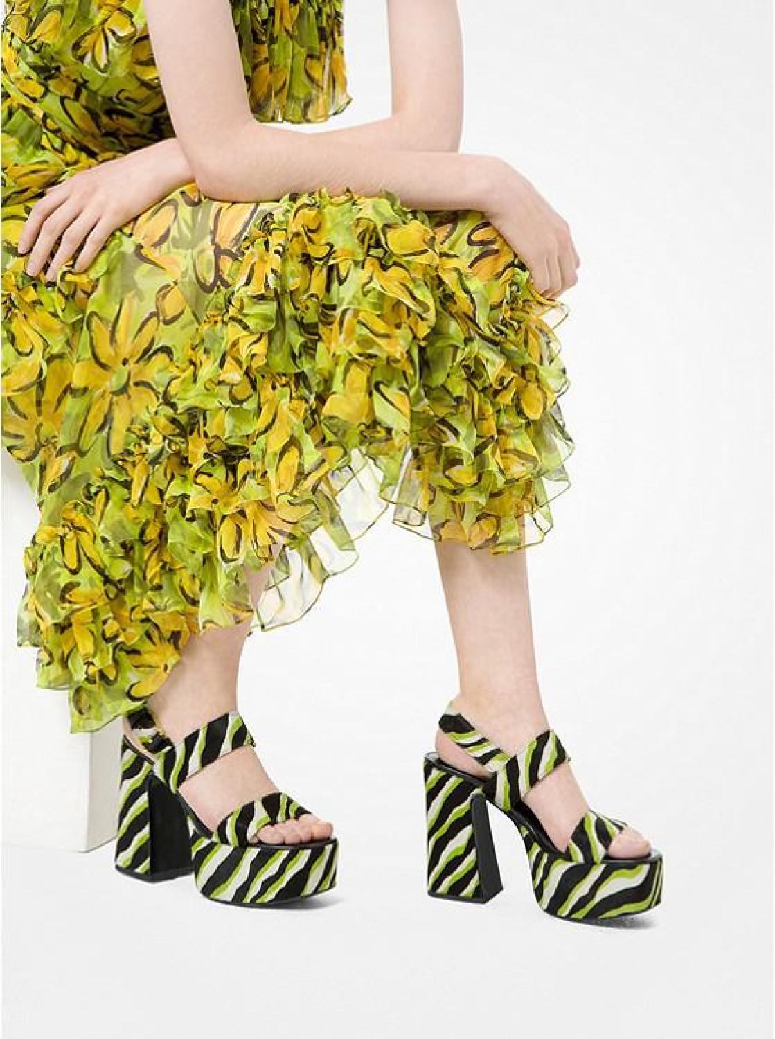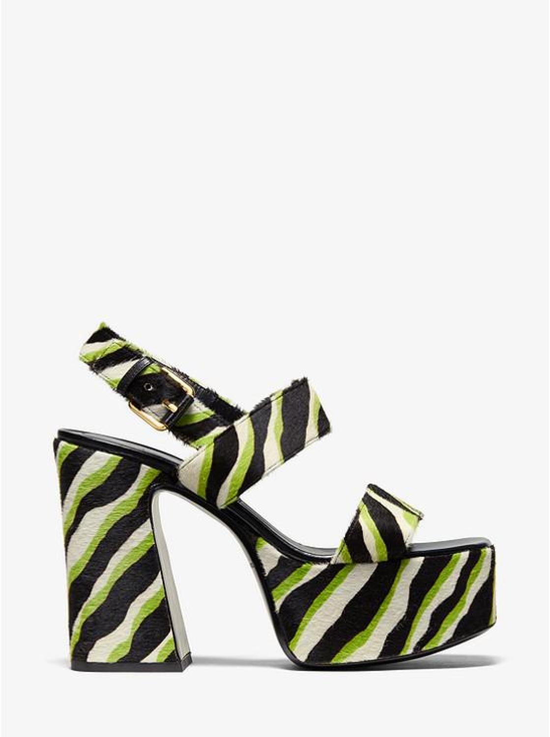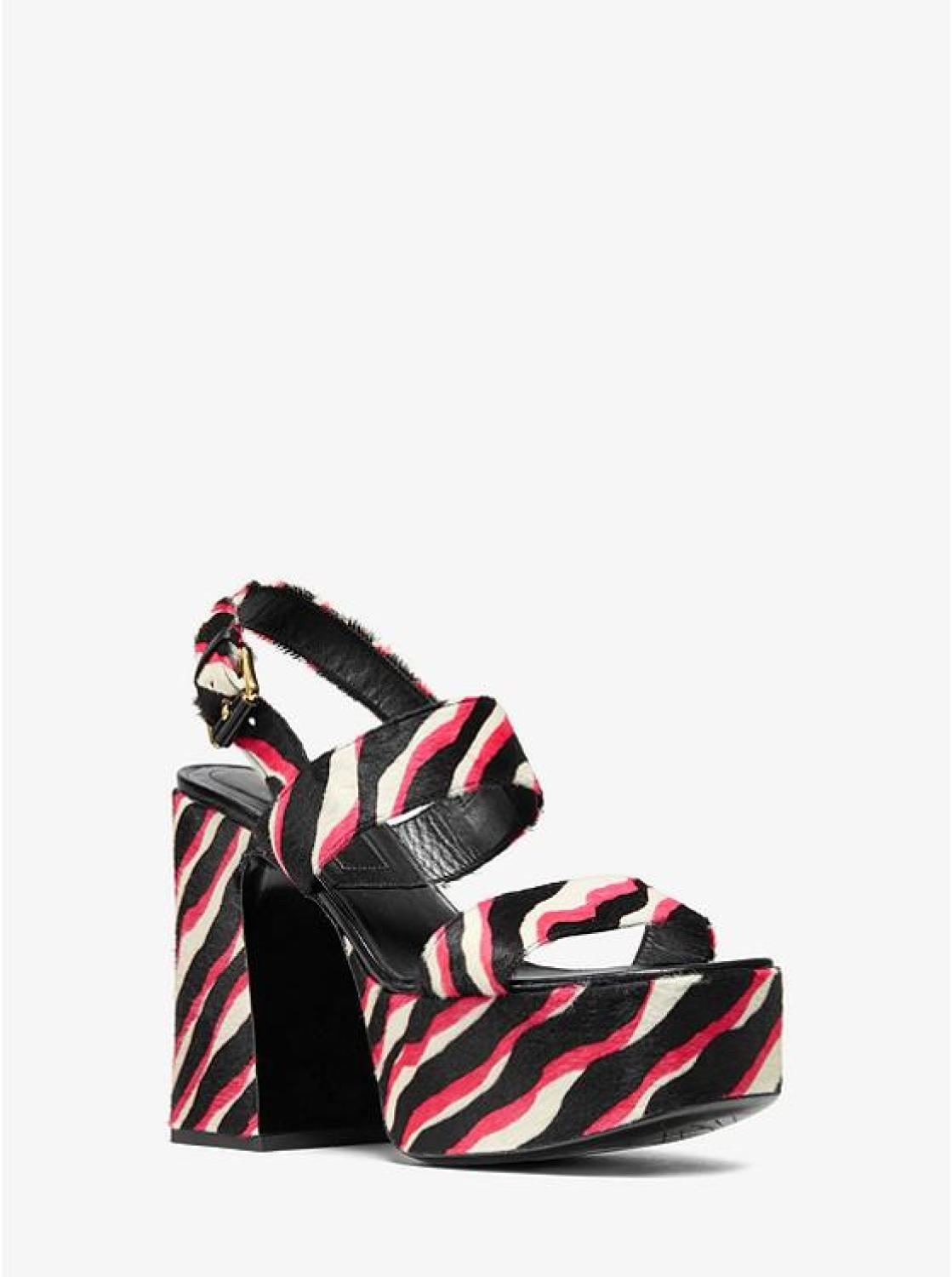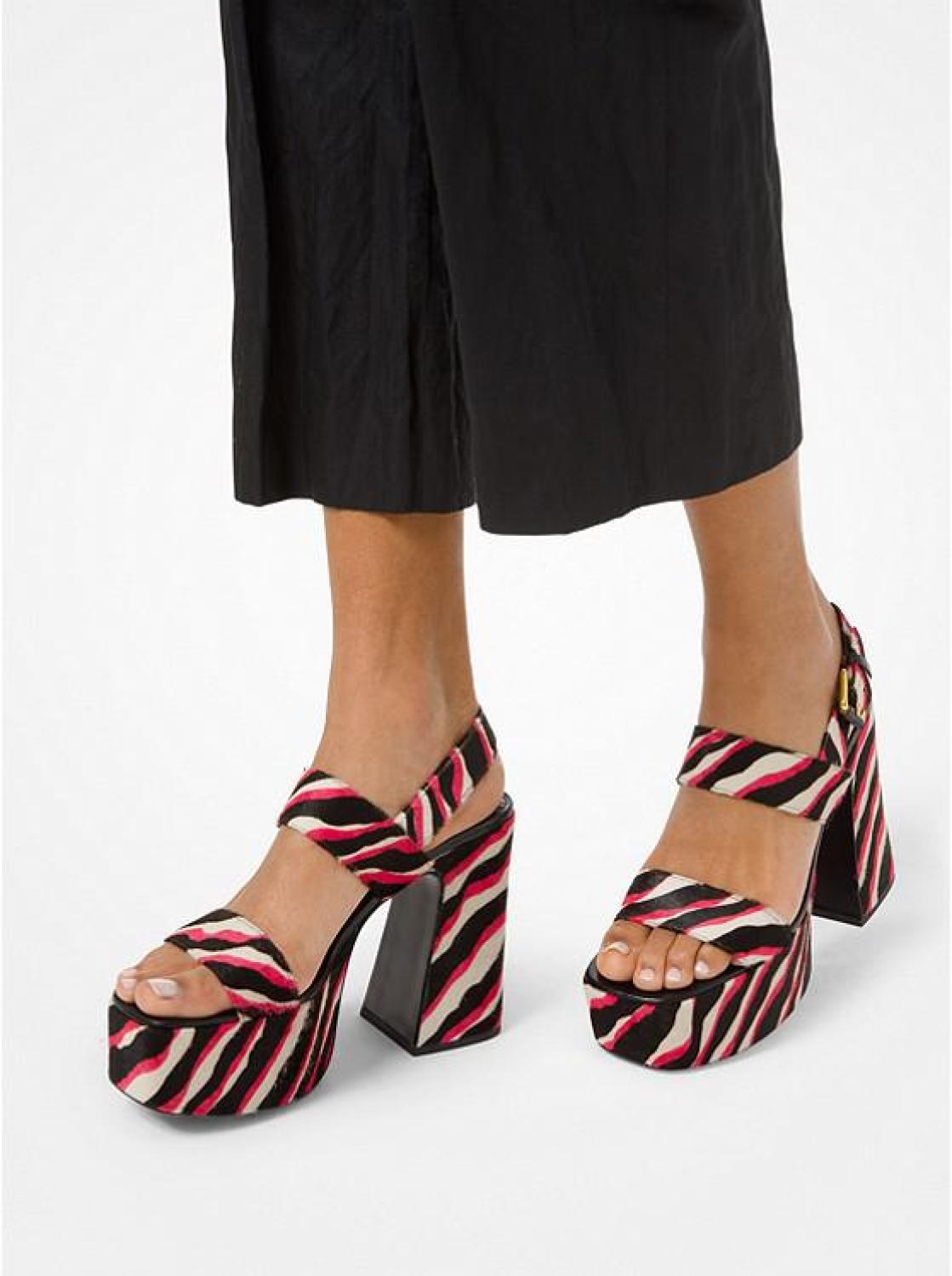 Set on a soaring platform and block heel, the Blaire sandal is crafted in Italy from zebra-print calf hair with a pop of color for exotic appeal. Wear them as an unexpected punctuation to daytime looks. 100% Calf Hair Trim: 100% Leather Sole: Leather Open Toe Buckle Fastening Heel Height: 4.5" Platform Height: 2" Heel Type: Wrapped Made in Italy 100% Calf Hair Trim: 100% Leather Sole: Leather Open Toe Buckle Fastening Heel Height: 4.5" Platform Height: 2" Heel Type: Wrapped Made in Italy