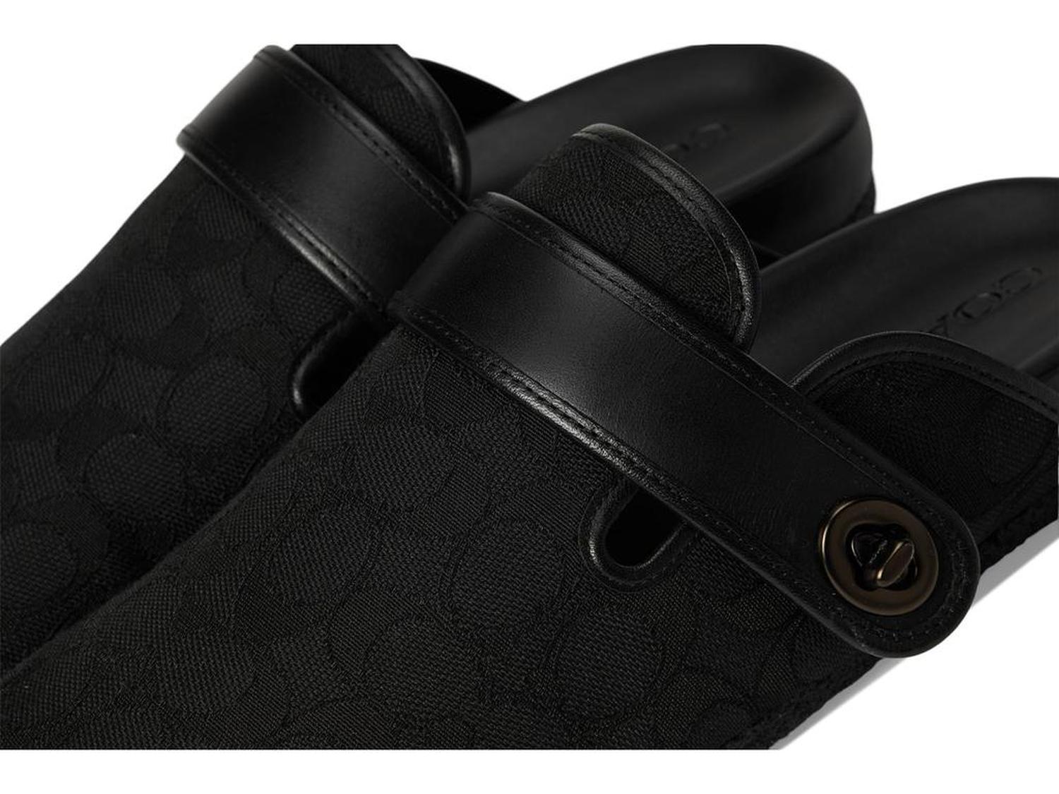 Redefine everyday elegance wearing the COACH® Blake Clog, crafted from signature textile jacquard and premium leather. Designed for effortless sophistication, this slip-on style features a man-made leather lining and footbed for plush comfort and support, while a durable rubber outsole ensures reliable traction with every stride. Perfectly blending modern charm with heritage craftsmanship, these clogs are your go-to for chic versatility-whether you're heading to brunch or a casual outing.