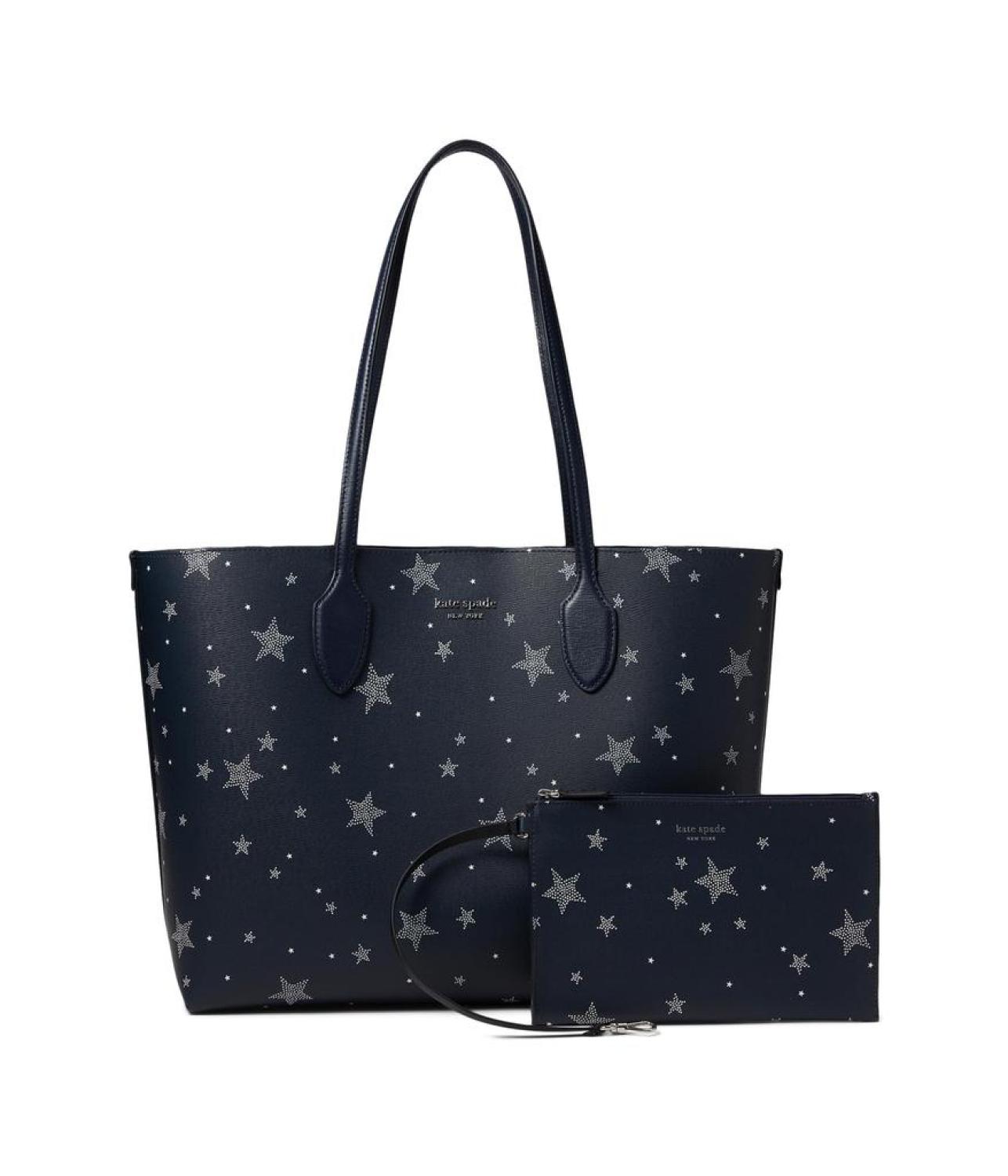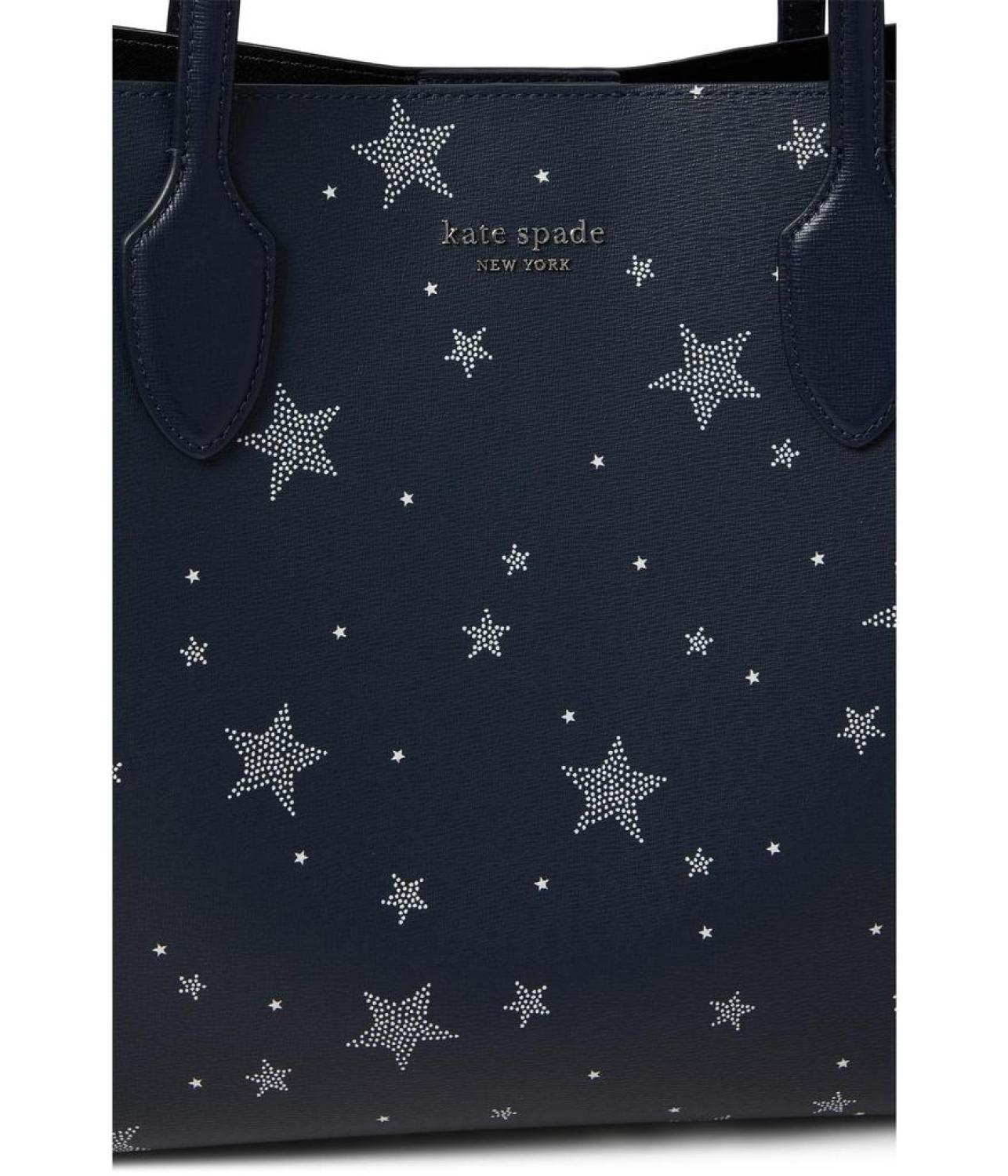 Leave a mesmerizing impression with your statement style by carrying the Kate Spade New York® Bleecker Starlight Printed PVC Large Tote. It features a magnetic snap closure with dual top handles and comes with a detachable zip accessory. PVC construction. Allover star print. Imported. Please note, the hardware color and interior lining may differ from the color shown in the photo. Measurements: Bottom Width: 14 in Depth: 5 1/4 in Height: 11 1/2 in Strap Length: 26 in Strap Drop: 11 in Weight: 1 lb 4 oz