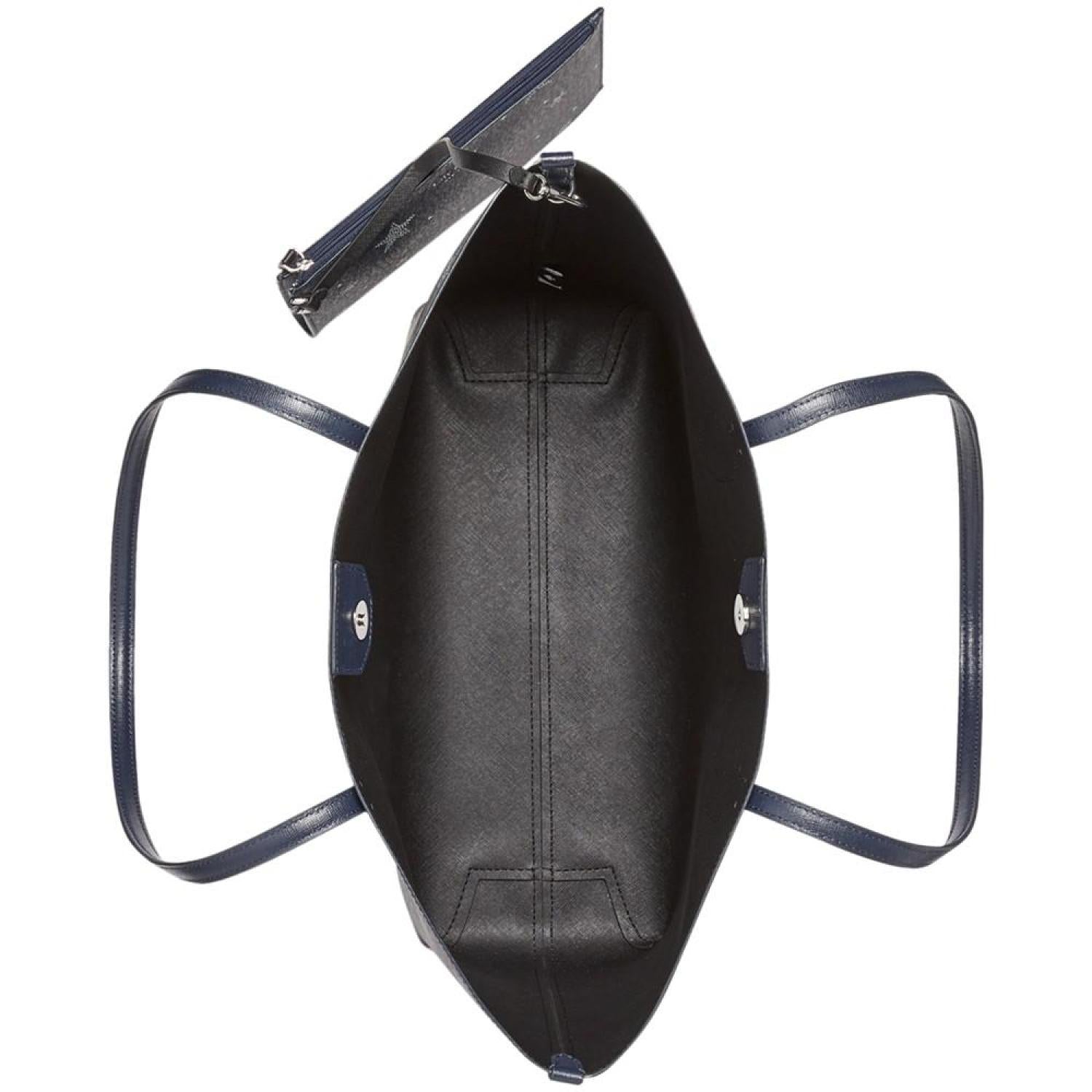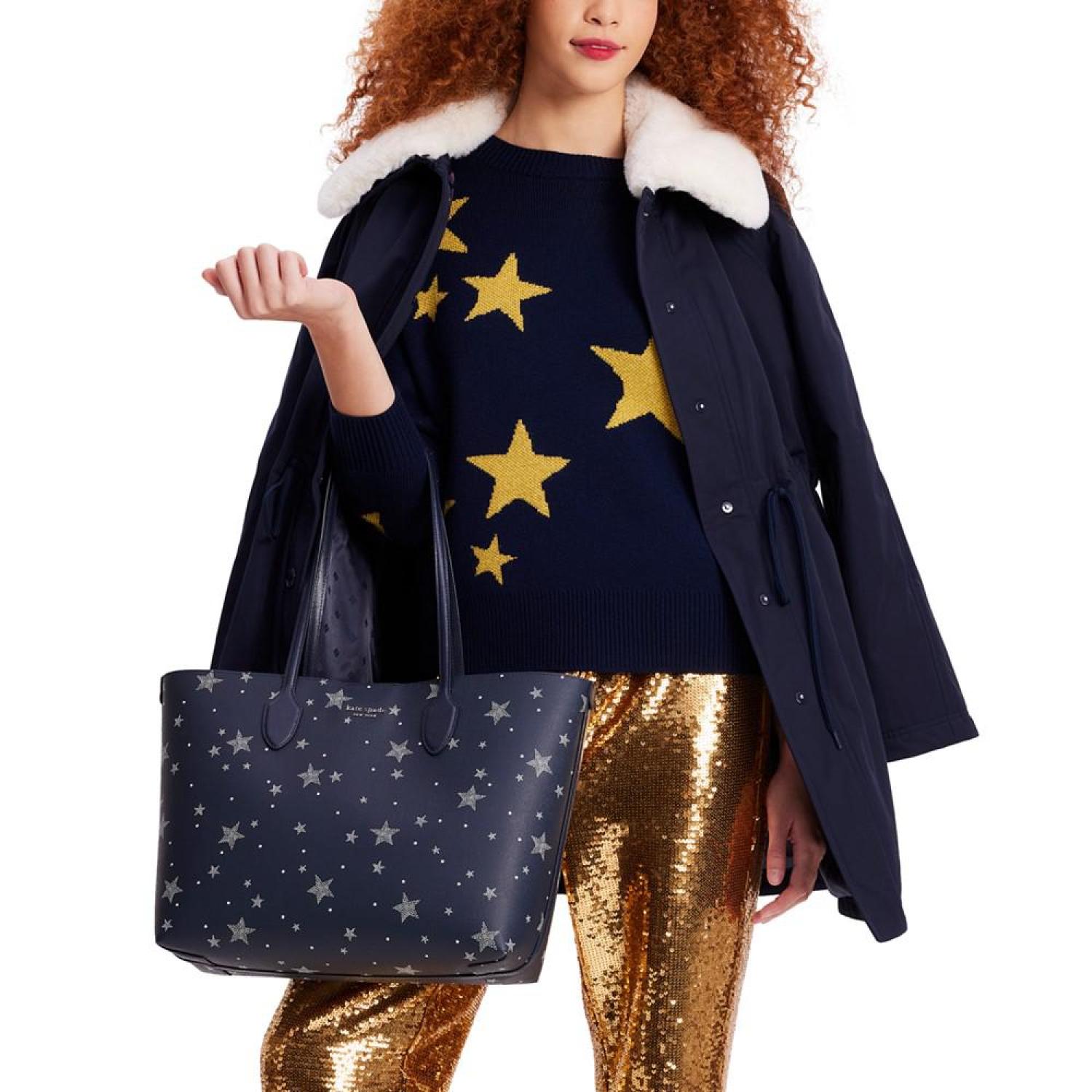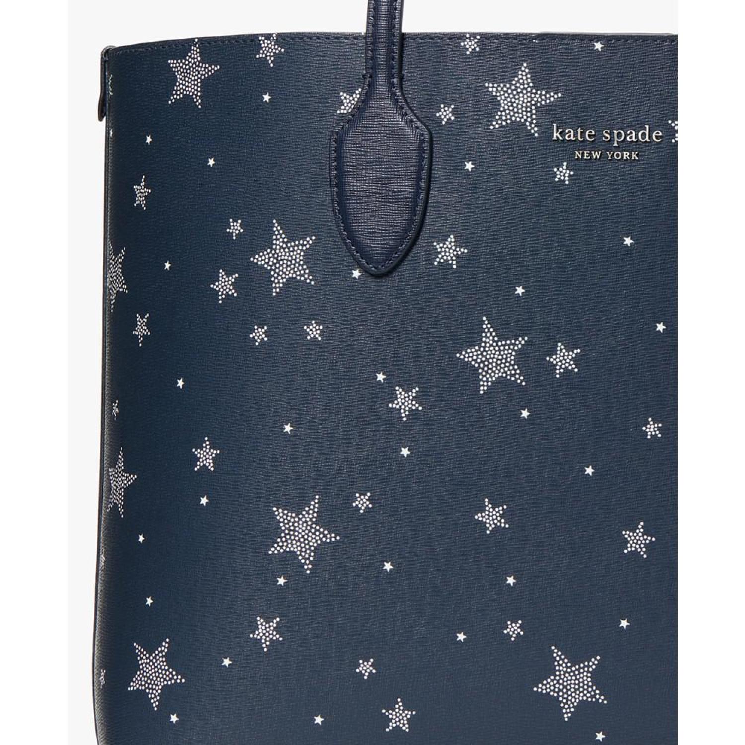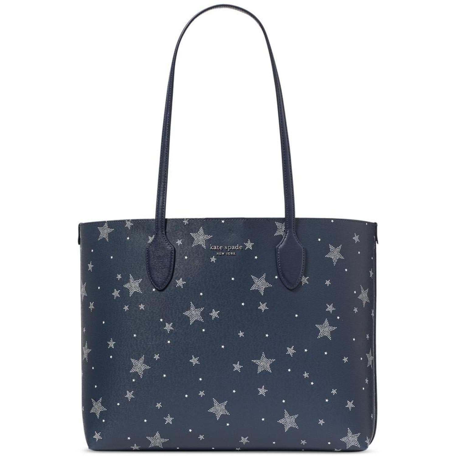 Bring a celestial vibe to your 9-to-5 style with kate spade new york's Bleecker Starlight printed tote. Medium sized bag; 13-7/10"W x 11-4/5"H x 5-1/3"D (width is measured across the bottom of handbag) Silhouette is based off 5'9" model 11" handles Magnetic snap closure Silver-tone hardware & removable zip pouch Tablet compatible (std. size 8"-10") PVC, leather; pouch: polyurethane Spot clean Imported