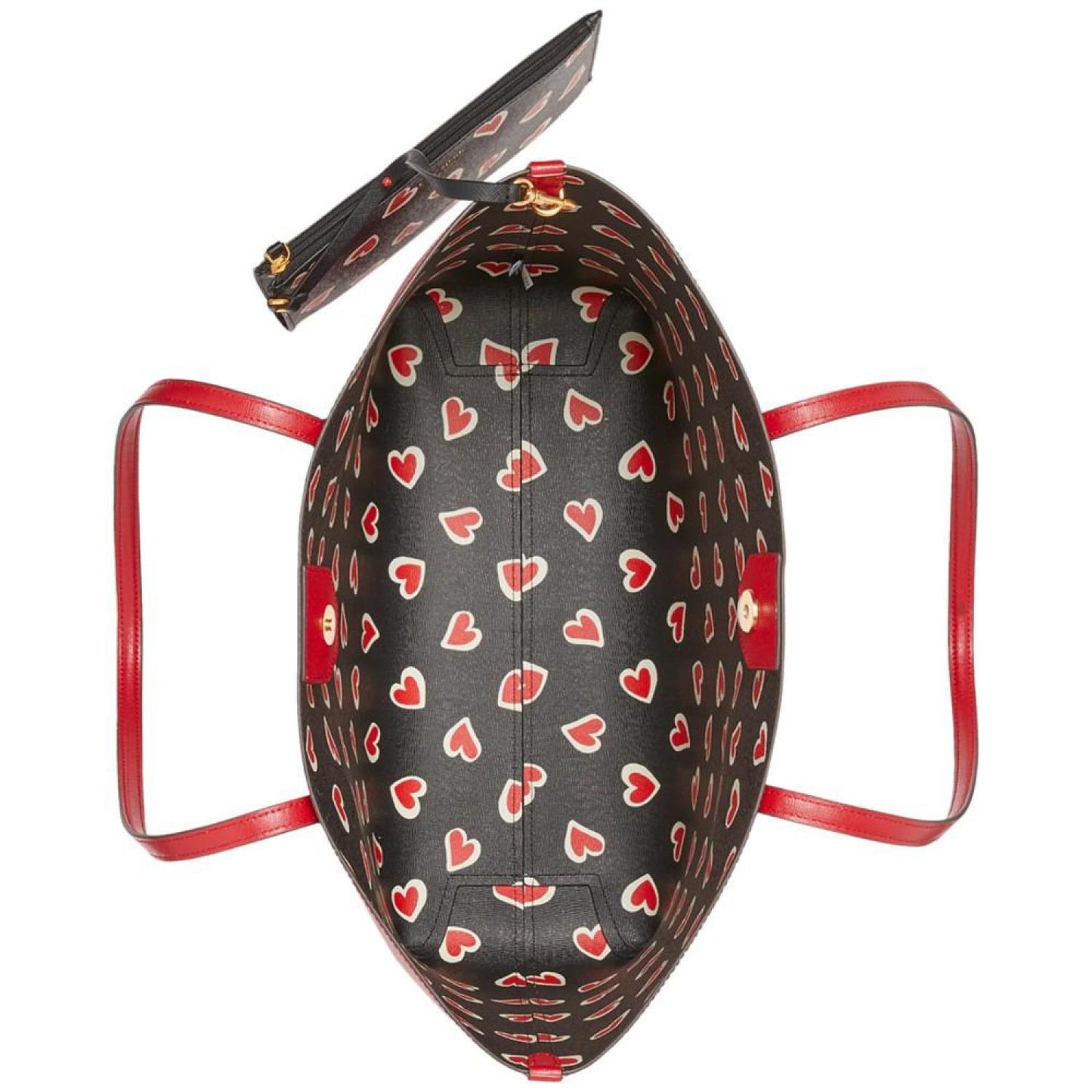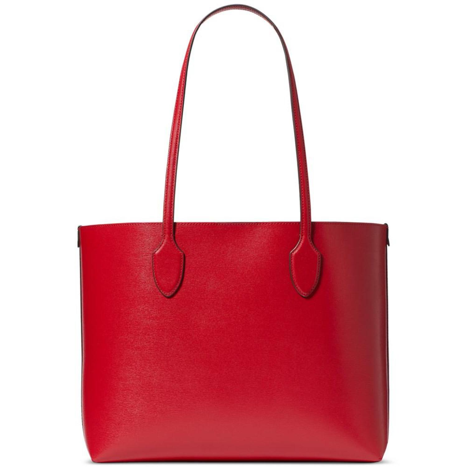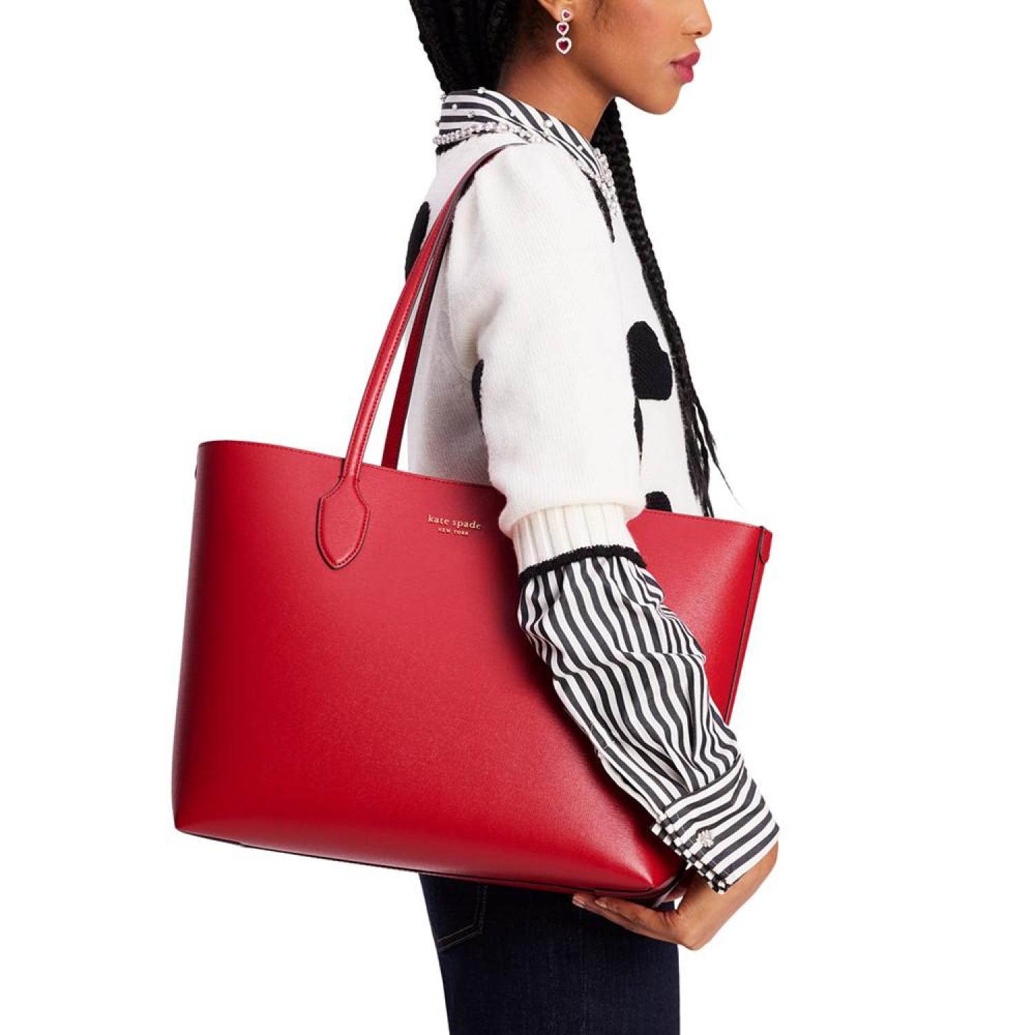 Bring a charming vibe to your 9-to-5 style with kate spade new york's Bleecker tote. Medium sized bag; 13-7/10"W x 11-4/5"H x 5-1/3"D (width is measured across the bottom of handbag) Silhouette is based off 5'9" model 11" handles Magnetic snap closure Gold-tone hardware & removable zip pouch Interior stencil hearts print Tablet compatible (std. size 8"-10") Leather Spot clean Imported
