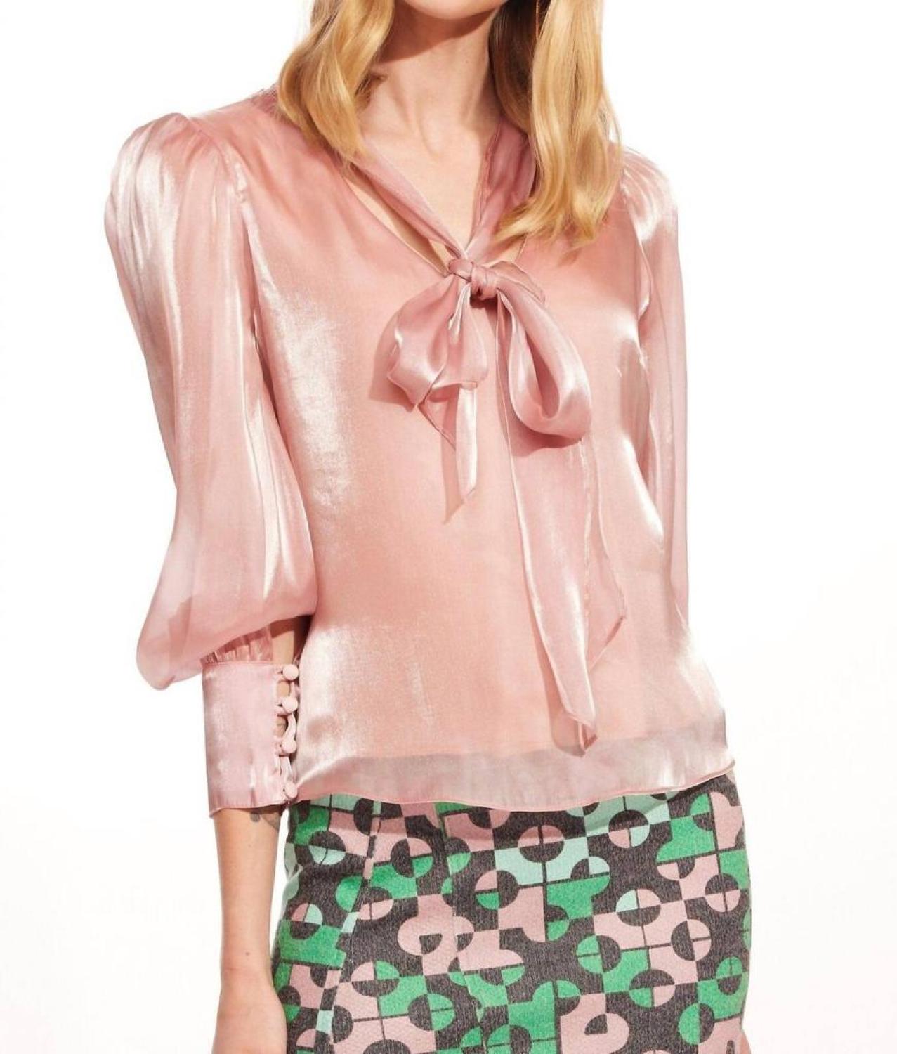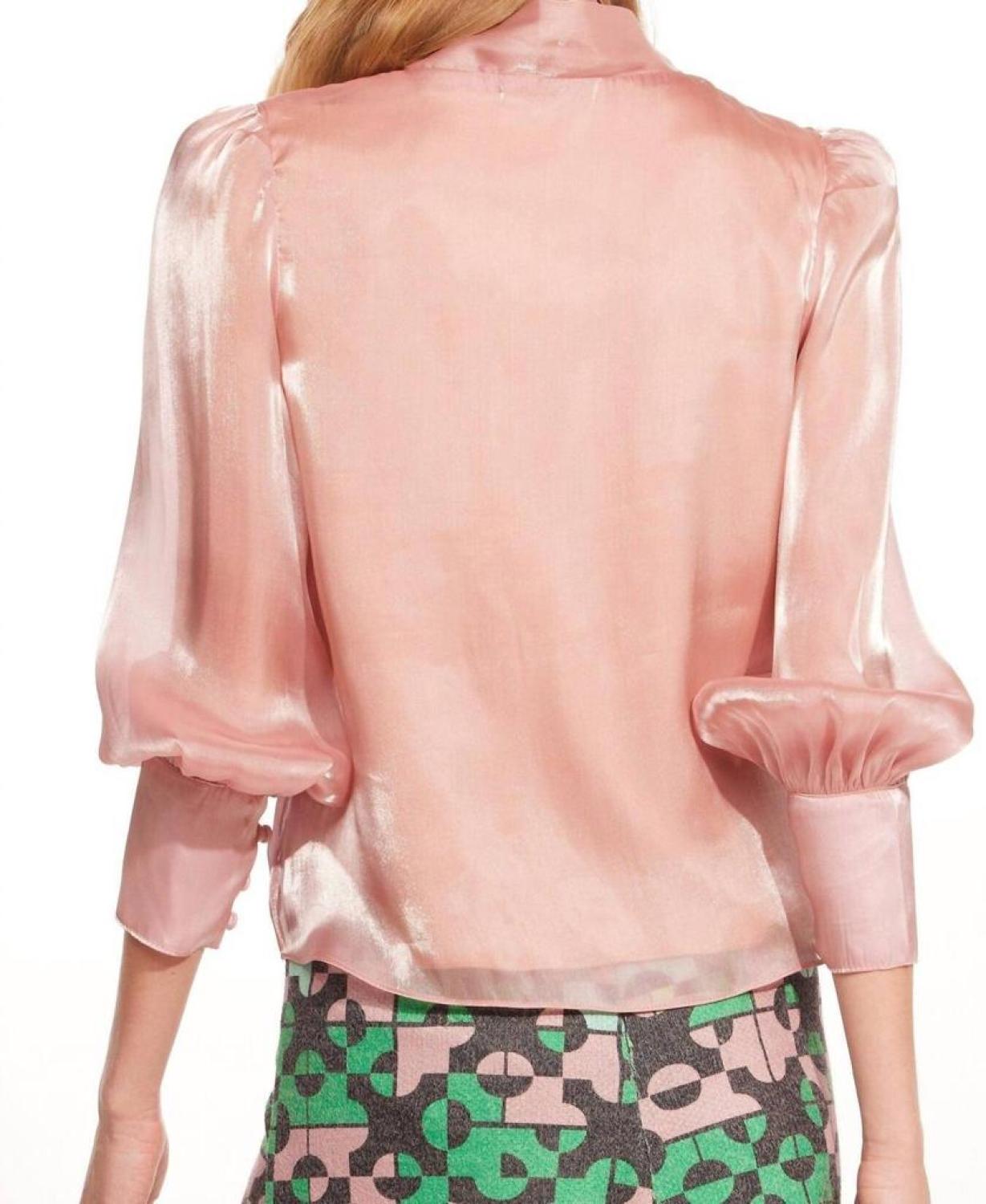 • A versatile blouse that works from desk to dinner!Adjustable front bow in the prettiest colors with a show-stopping sheen. This Blythe Blouse is a classic hit. The V-neck top features an attached scarf at the neck and full sleeves that end in wide cuffs that close with a row of matching covered buttons. The fully lined style has a side zip for a curve-hugging flattering fit. Long cuffed sleeves. Fully lined. 100% polyester