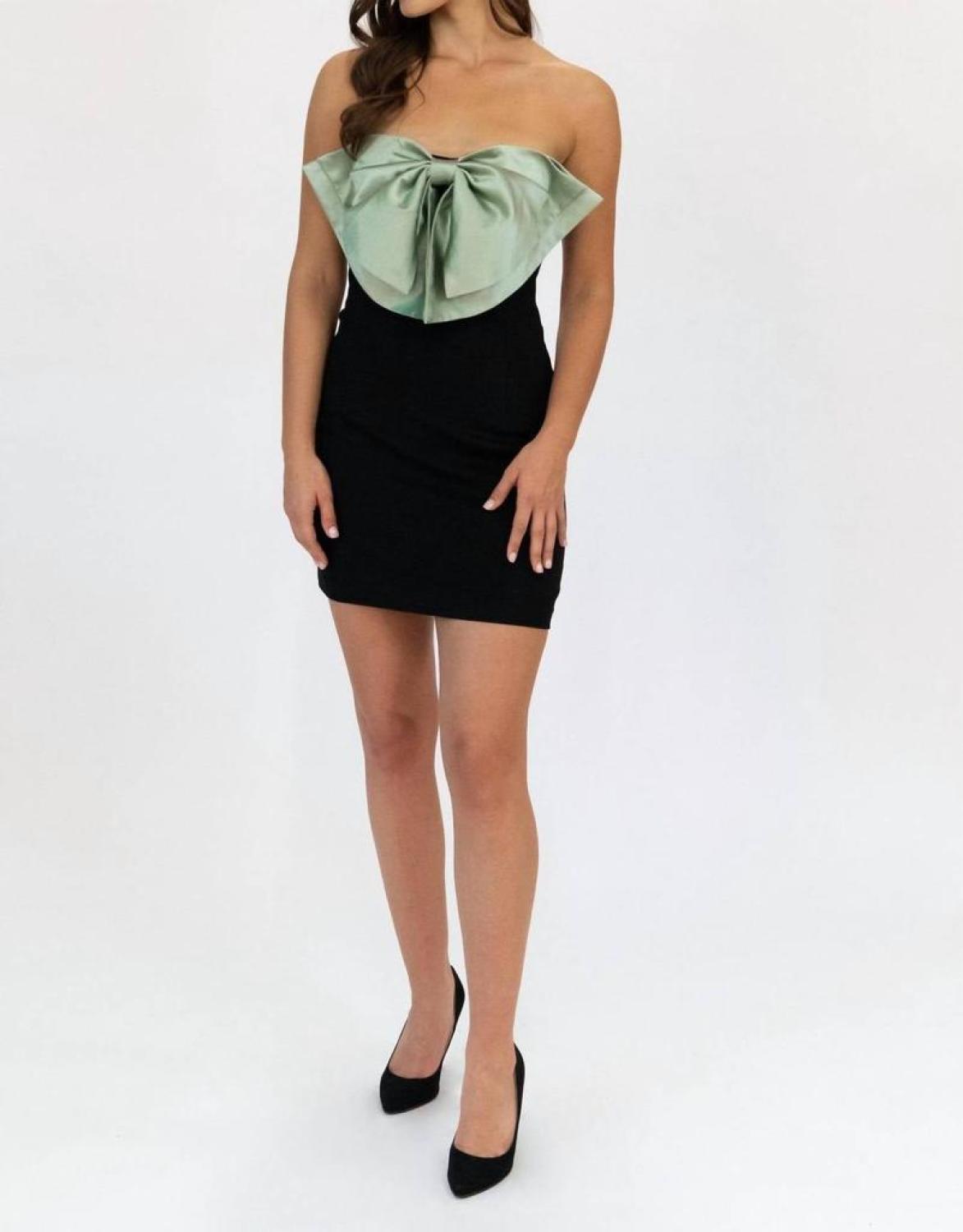 A short and breezy dress for those warmer days.Rayon, polyester, spandex; polyester lining. A mini black dress with an extravagant oversized bow detail that is sure to turn heads this season. Side zip. Hand wash. Imported. Dimensions - Standard falls 33″ from shoulder. Petite falls 31.25″ from shoulder. Plus falls 33.5″ from shoulder