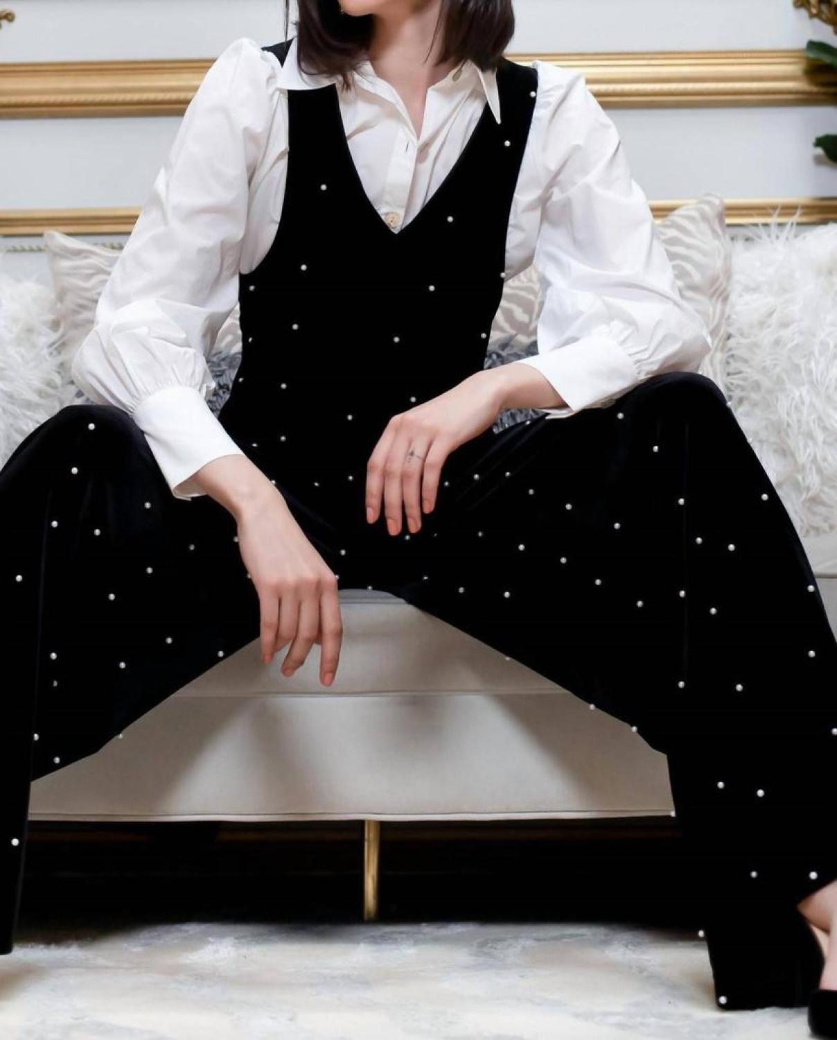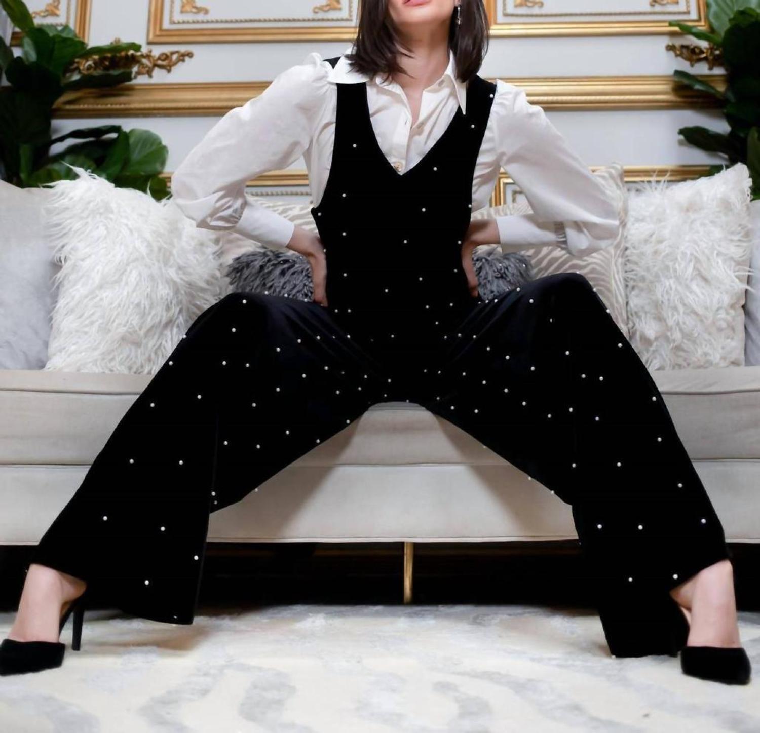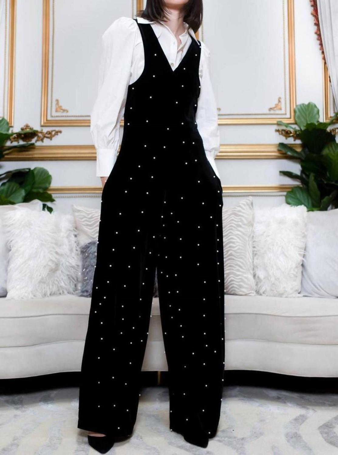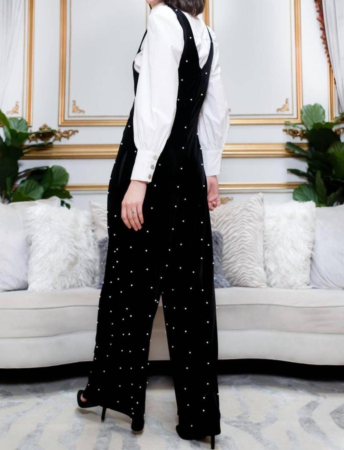 Brewster Jumpsuit In Black Velvet Pearl