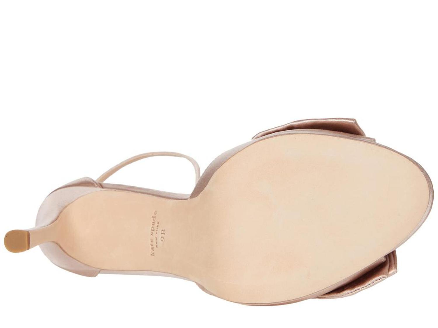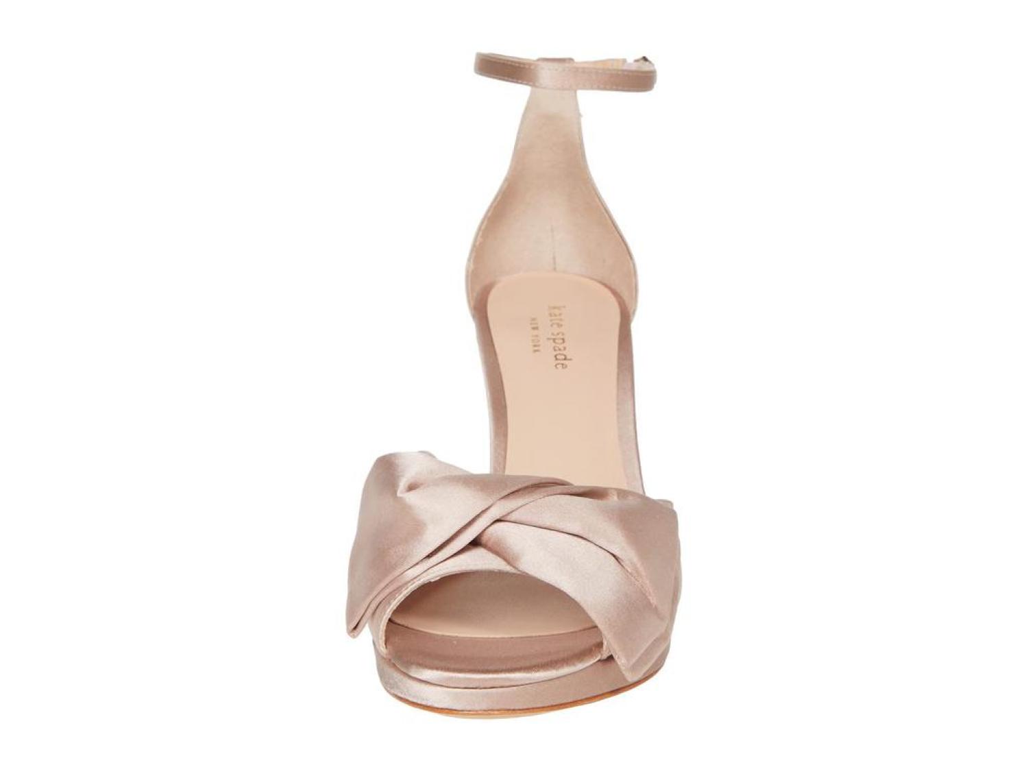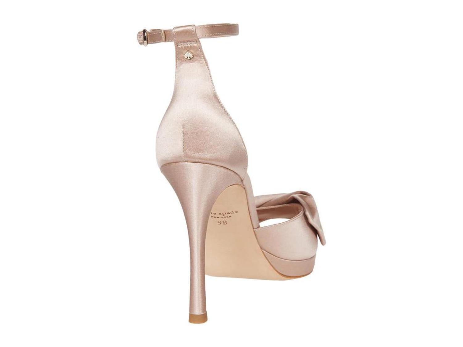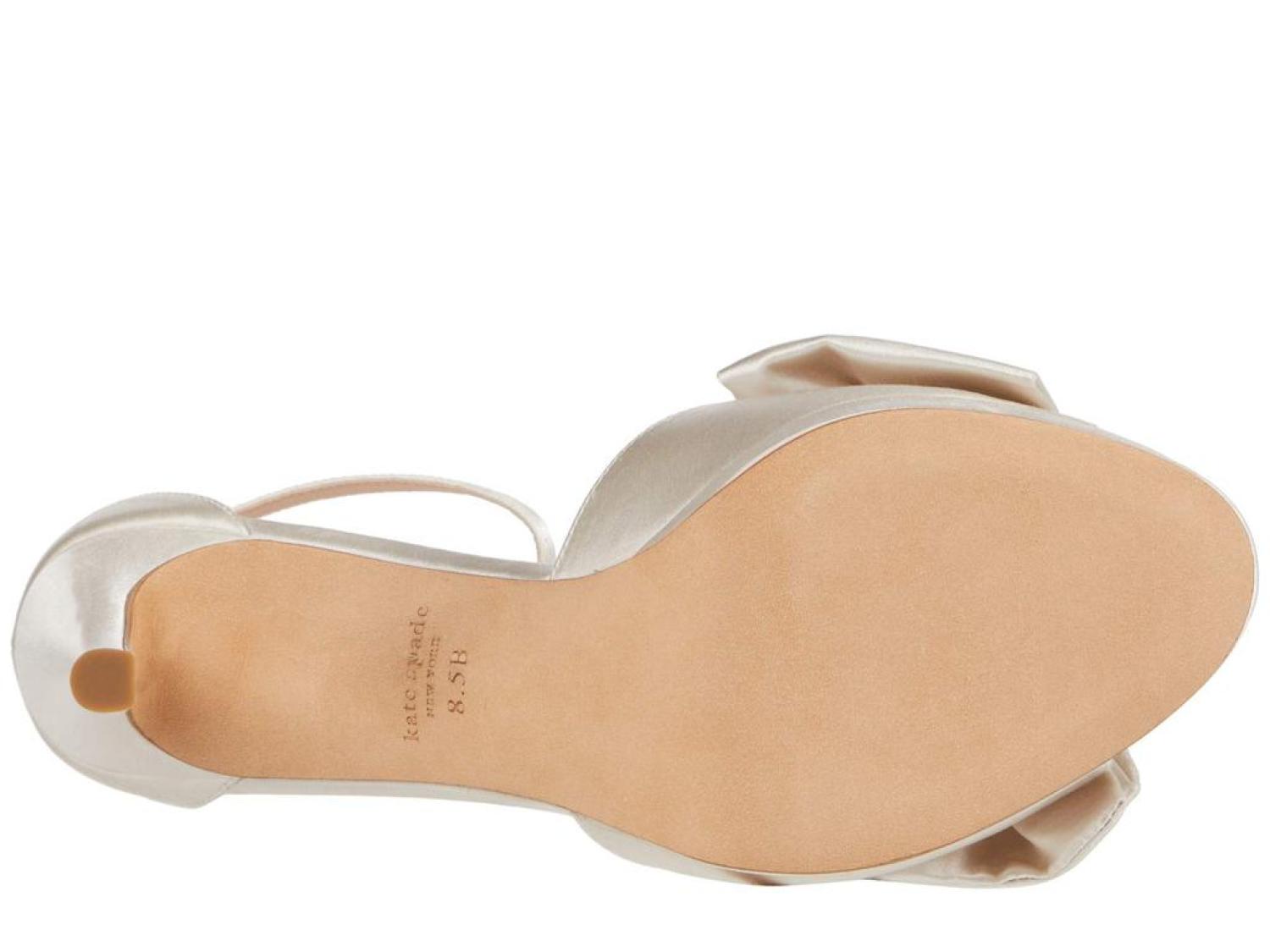 The Kate Spade New York® Bridal Bow are the perfect pick for your next special occasion. These ankle-strap sandals are crafted with a satin upper, and feature a bow detail and a stiletto heel. Open toe. Adjustable strap with buckle closure. Spade hardware. Leather lining. Lightly padded footbed. Wrapped heel. Leather sole. Imported. Product measurements were taken using size 8.5, width M. Please note that measurements may vary by size. Measurements: Heel Height: 3 in Weight: 8 oz Platform Height: 1/2 in-