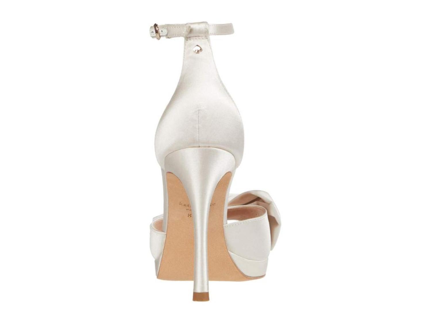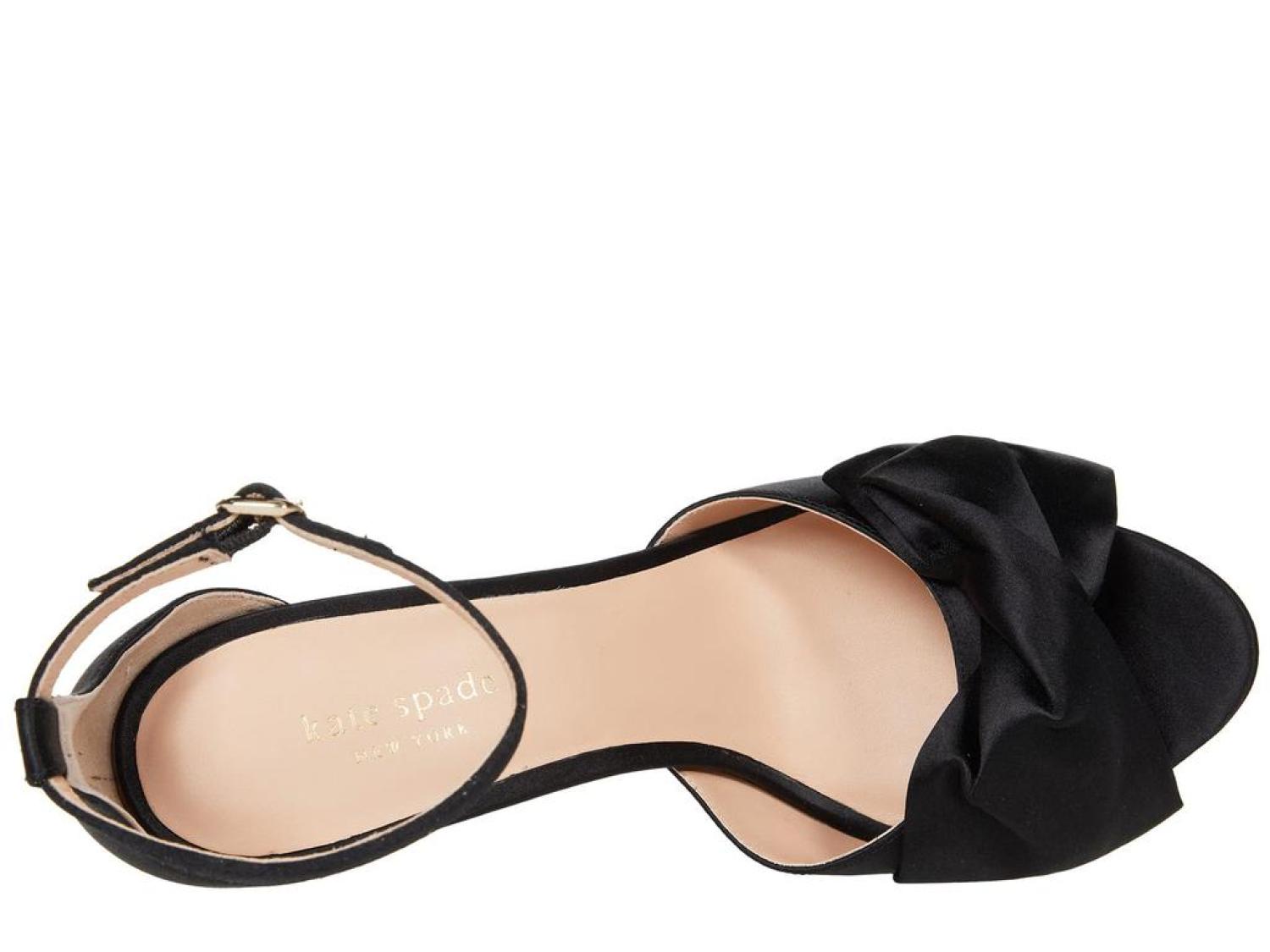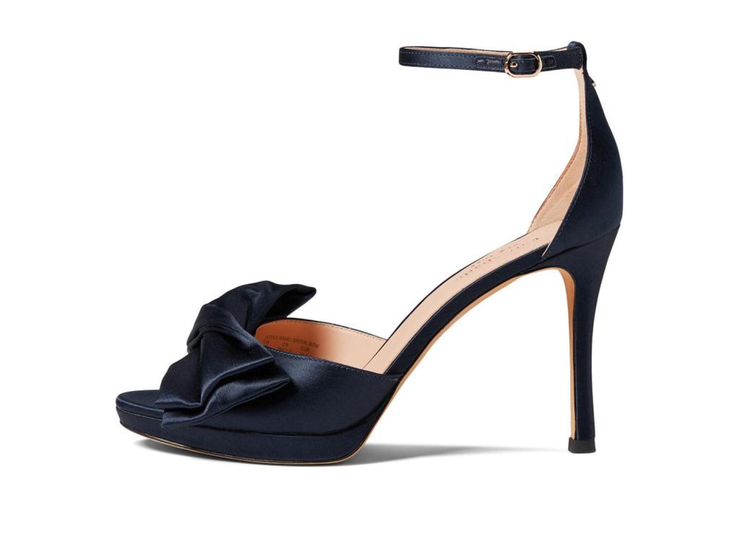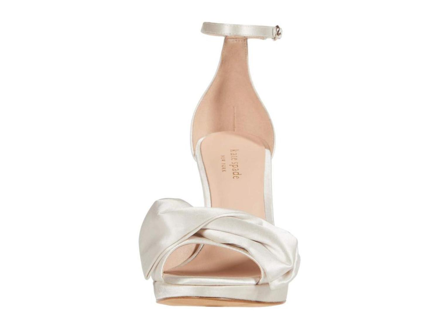 The Kate Spade New York® Bridal Bow are the perfect pick for your next special occasion. These ankle-strap sandals are crafted with a satin upper, and feature a bow detail and a stiletto heel. Open toe. Adjustable strap with buckle closure. Spade hardware. Leather lining. Lightly padded footbed. Wrapped heel. Leather sole. Imported. Product measurements were taken using size 8.5, width M. Please note that measurements may vary by size. Measurements: Heel Height: 3 in Weight: 8 oz Platform Height: 1/2 in-