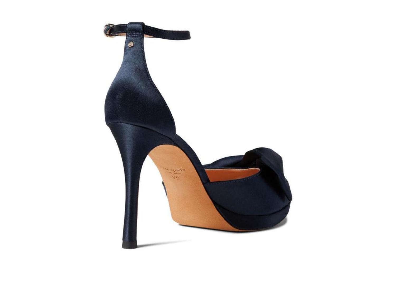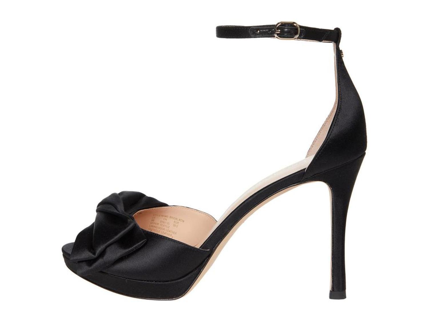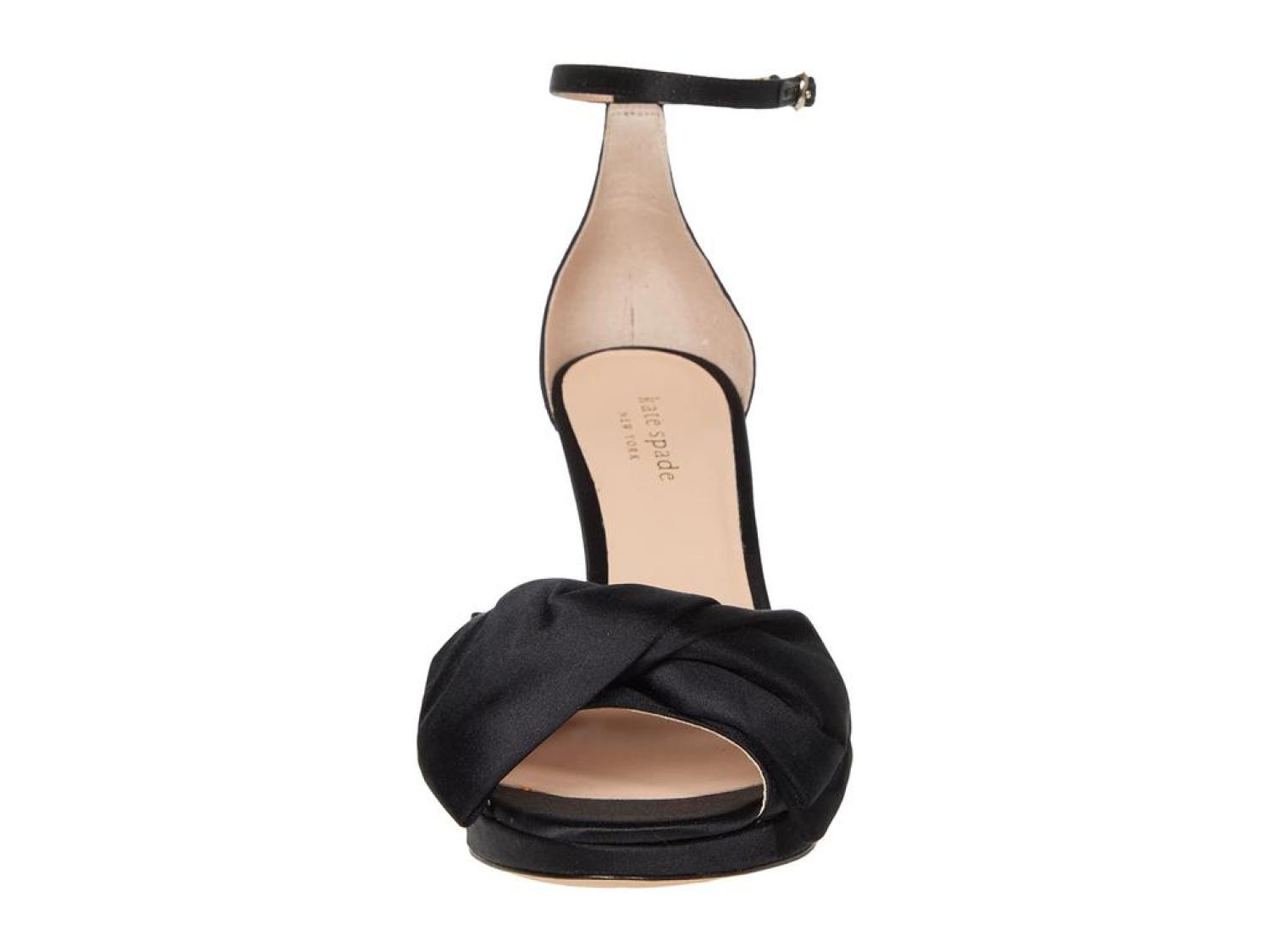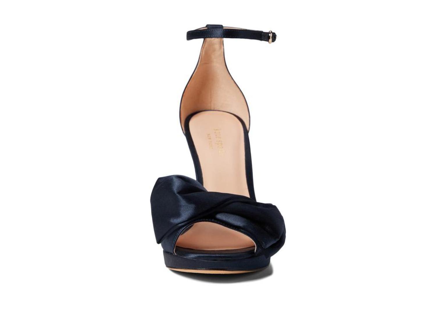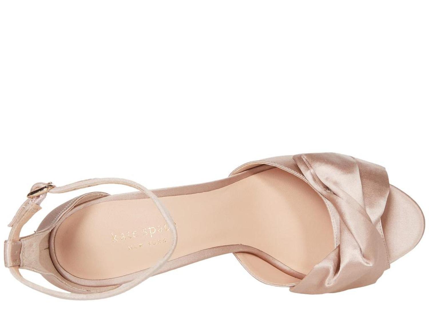 The Kate Spade New York® Bridal Bow are the perfect pick for your next special occasion. These ankle-strap sandals are crafted with a satin upper, and feature a bow detail and a stiletto heel. Open toe. Adjustable strap with buckle closure. Spade hardware. Leather lining. Lightly padded footbed. Wrapped heel. Leather sole. Imported. Product measurements were taken using size 8.5, width M. Please note that measurements may vary by size. Measurements: Heel Height: 3 in Weight: 8 oz Platform Height: 1/2 in-