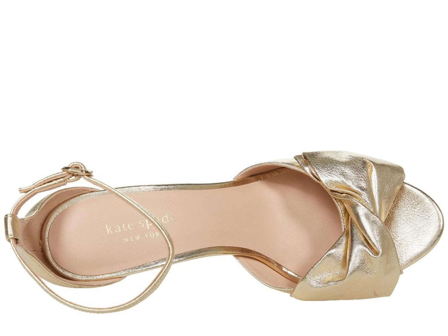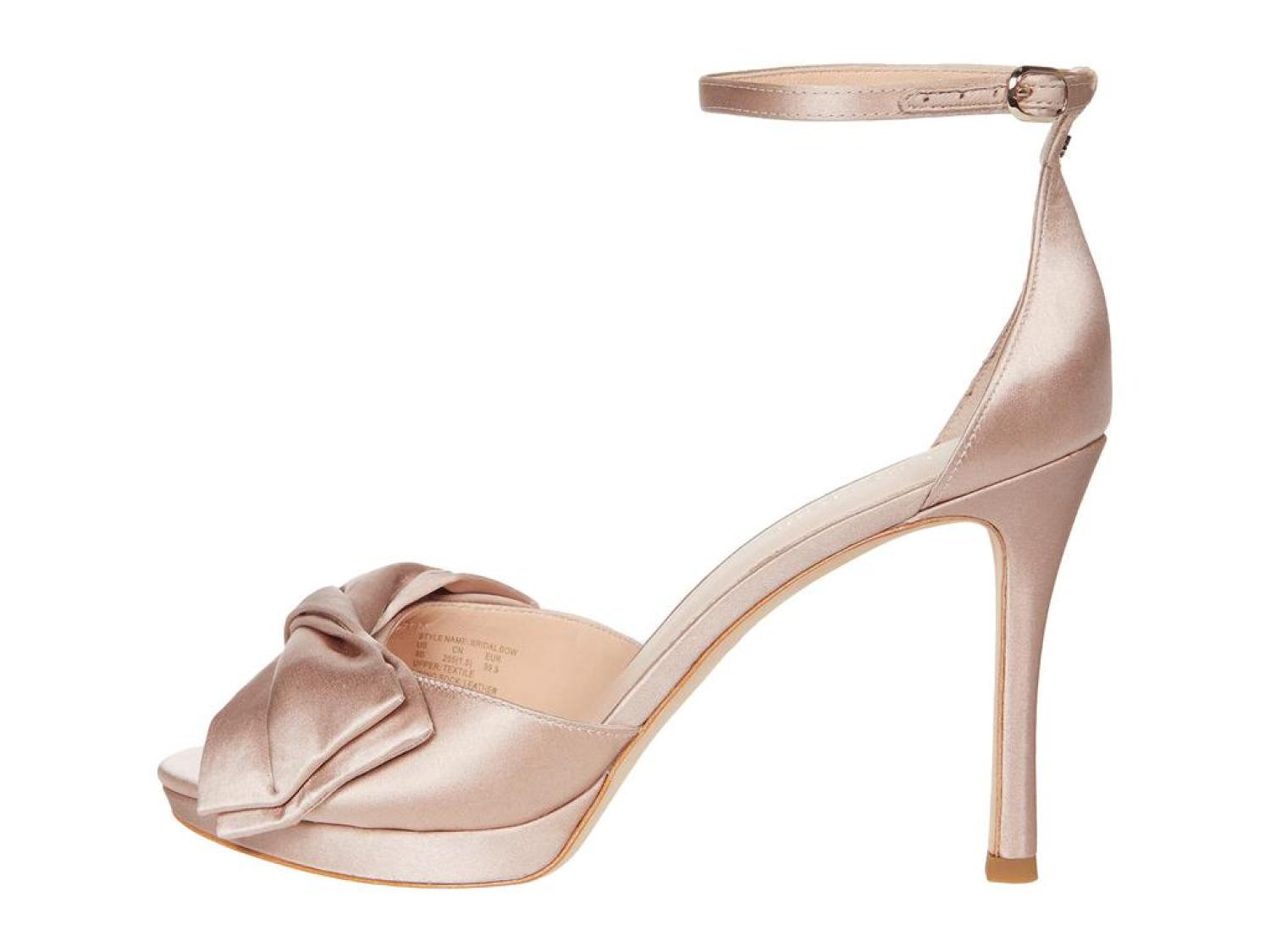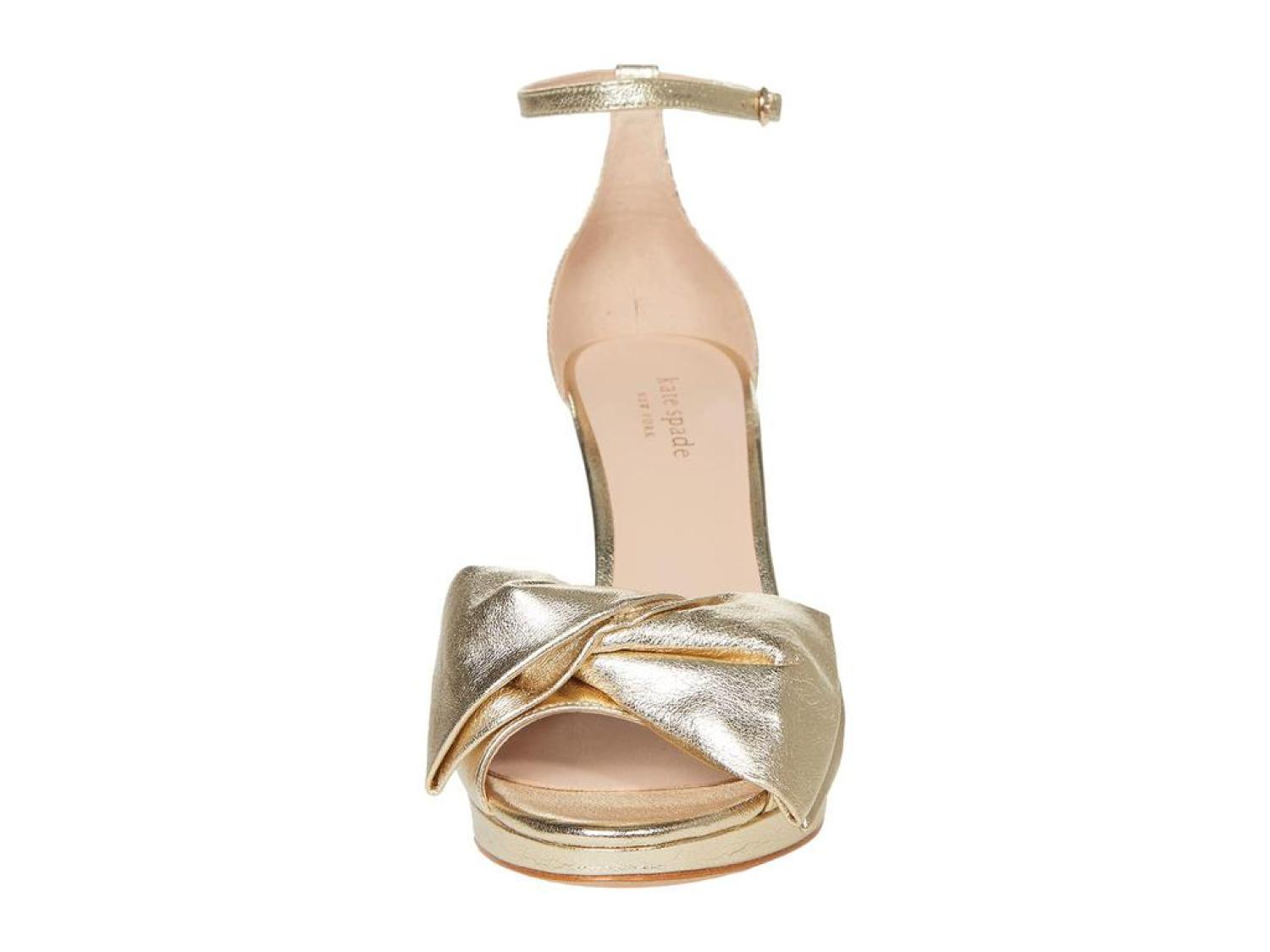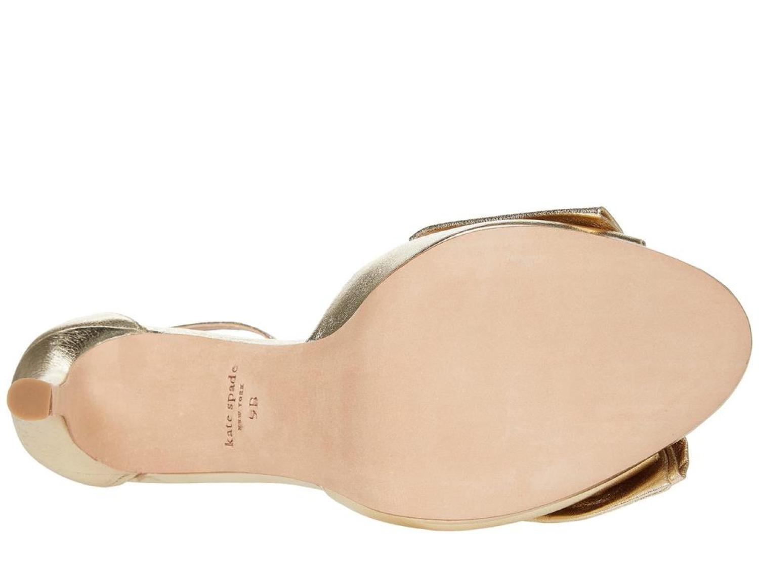 The Kate Spade New York® Bridal Bow are the perfect pick for your next special occasion. These ankle-strap sandals are crafted with a satin upper, and feature a bow detail and a stiletto heel. Open toe. Adjustable strap with buckle closure. Spade hardware. Leather lining. Lightly padded footbed. Wrapped heel. Leather sole. Imported. Product measurements were taken using size 8.5, width M. Please note that measurements may vary by size. Measurements: Heel Height: 3 in Weight: 8 oz Platform Height: 1/2 in-